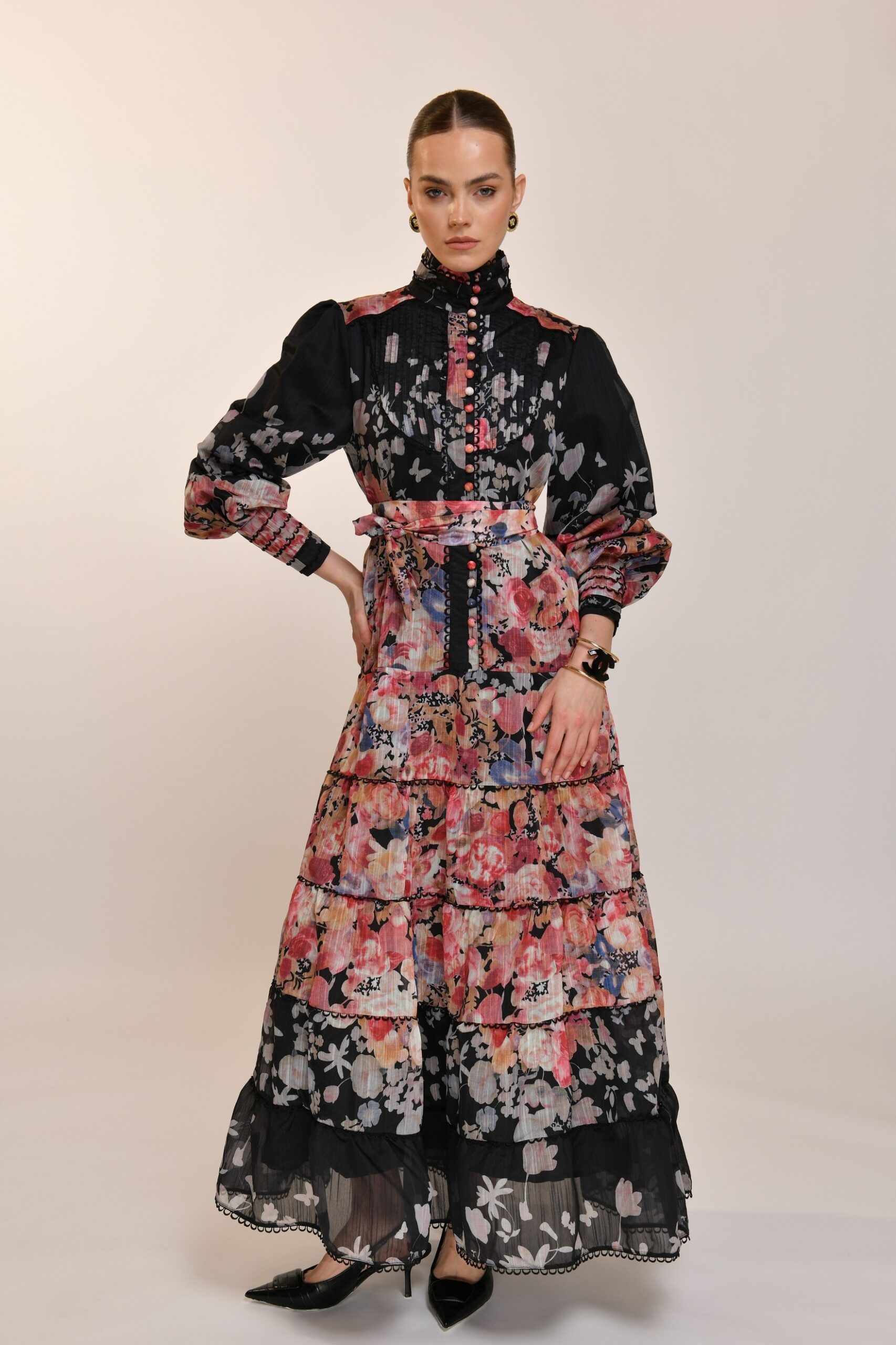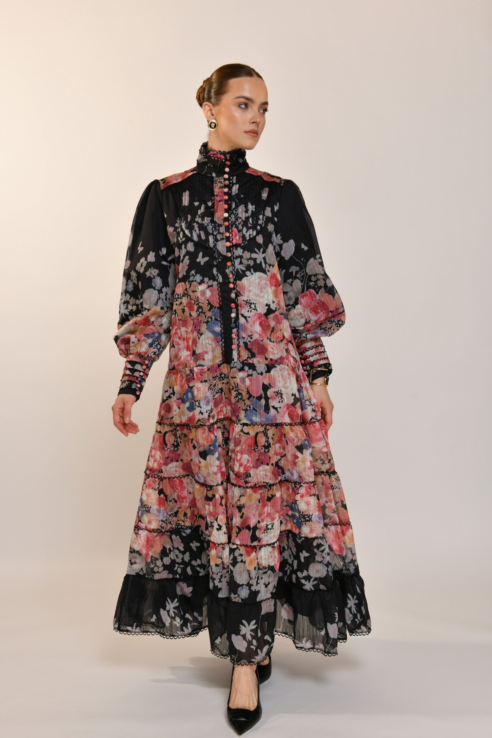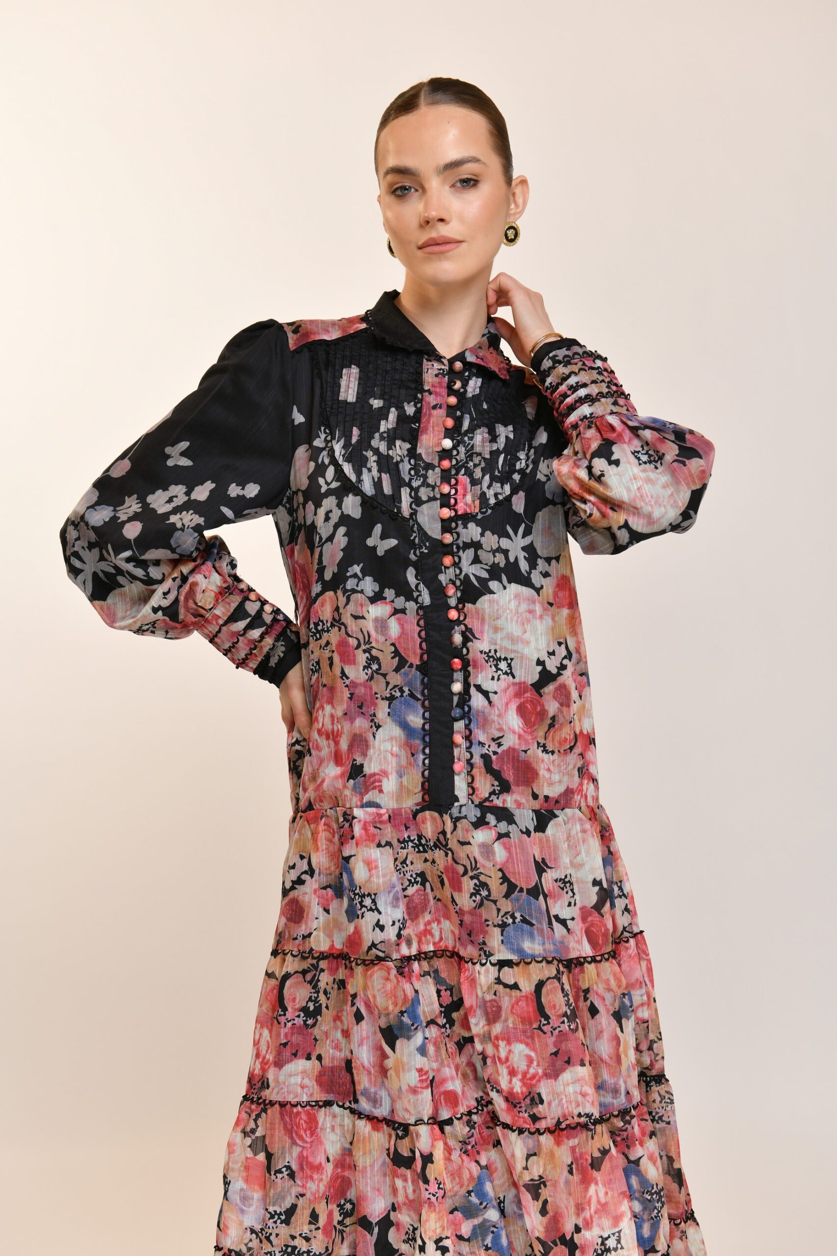 שמלה מבד שיפון בהדפס ובצבעוניות מרשימה! בגזרת לוזית מחמיאה מאוד!