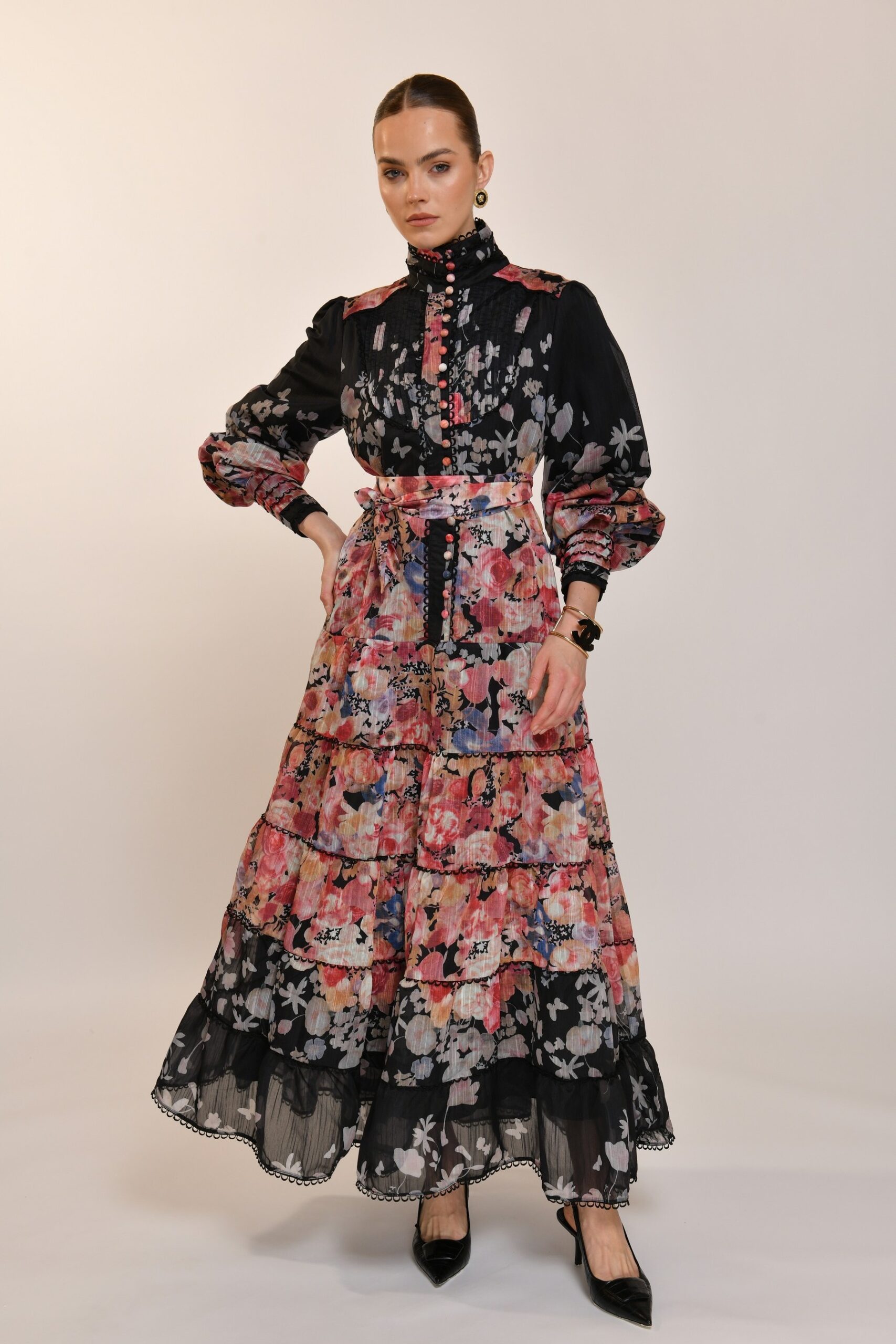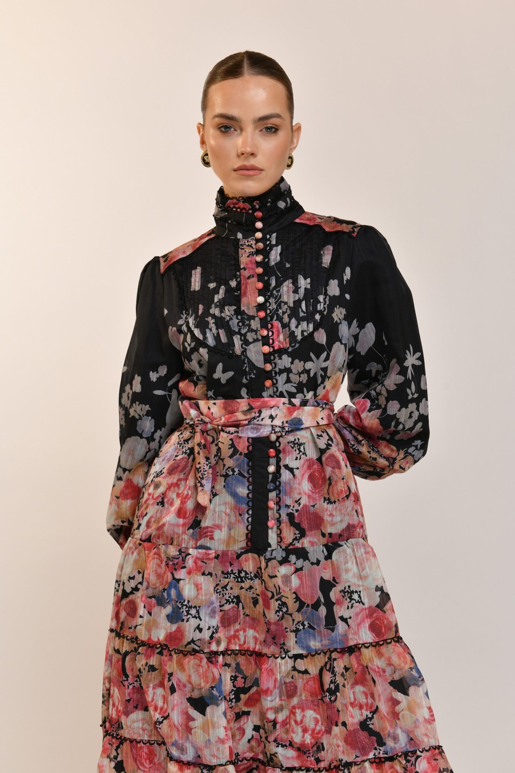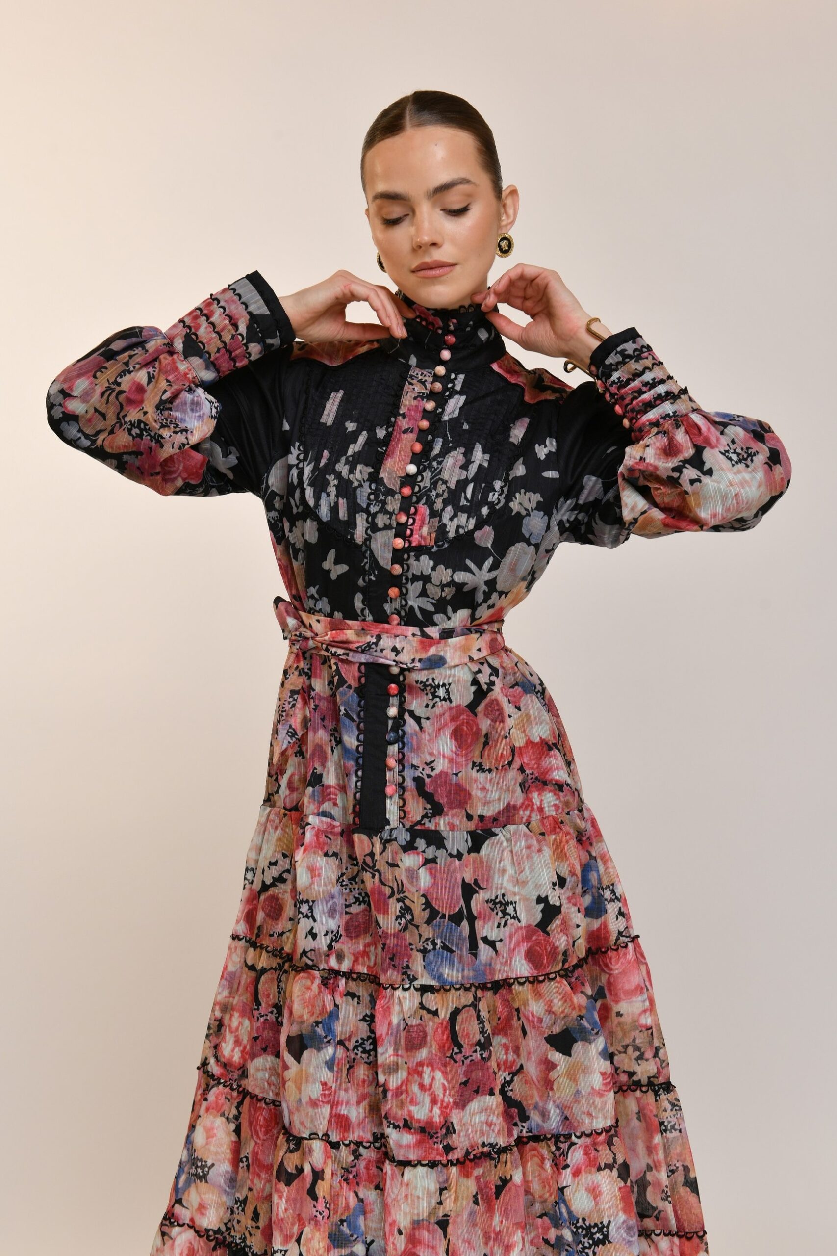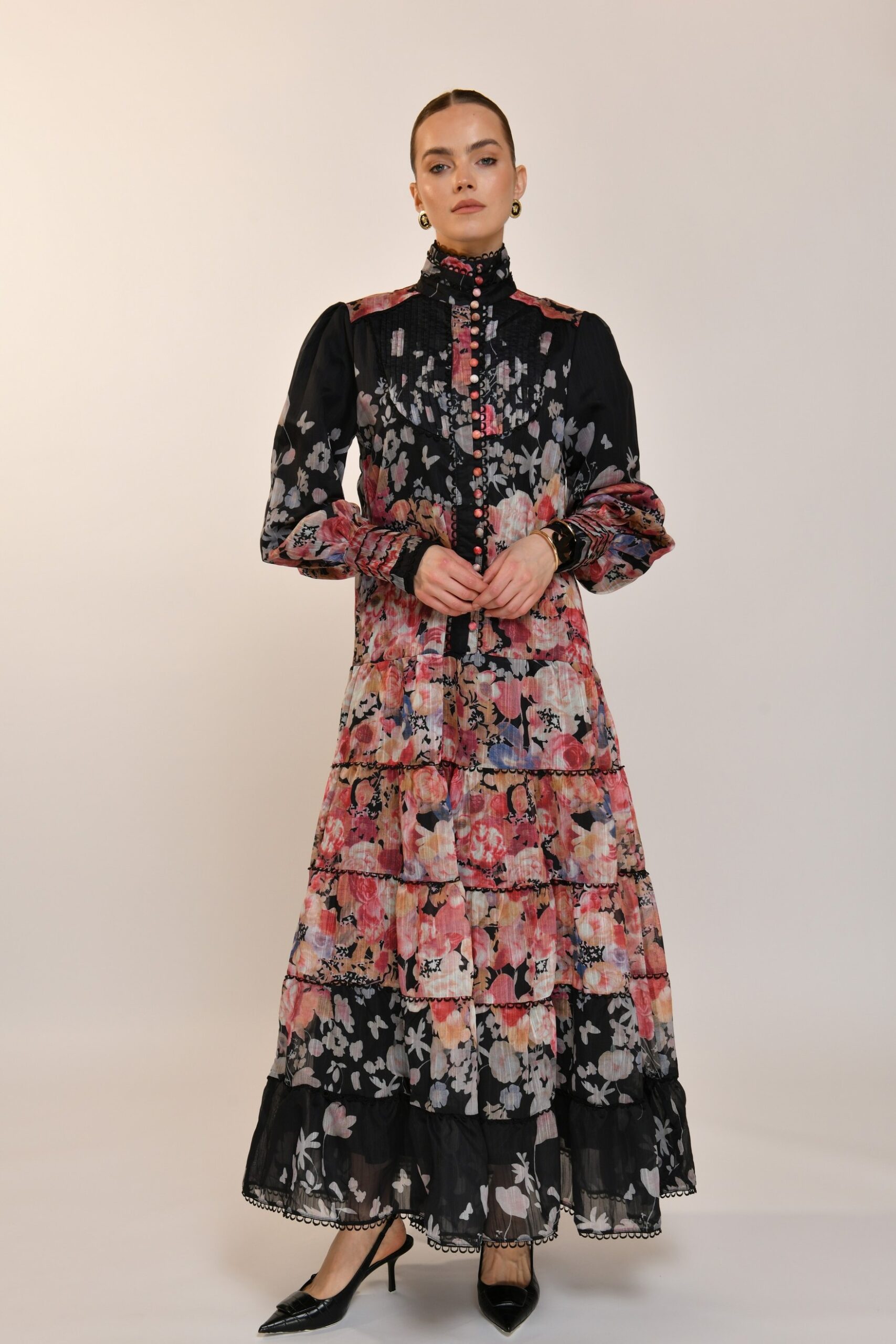 שמלה מבד שיפון בהדפס ובצבעוניות מרשימה! בגזרת לוזית מחמיאה מאוד!