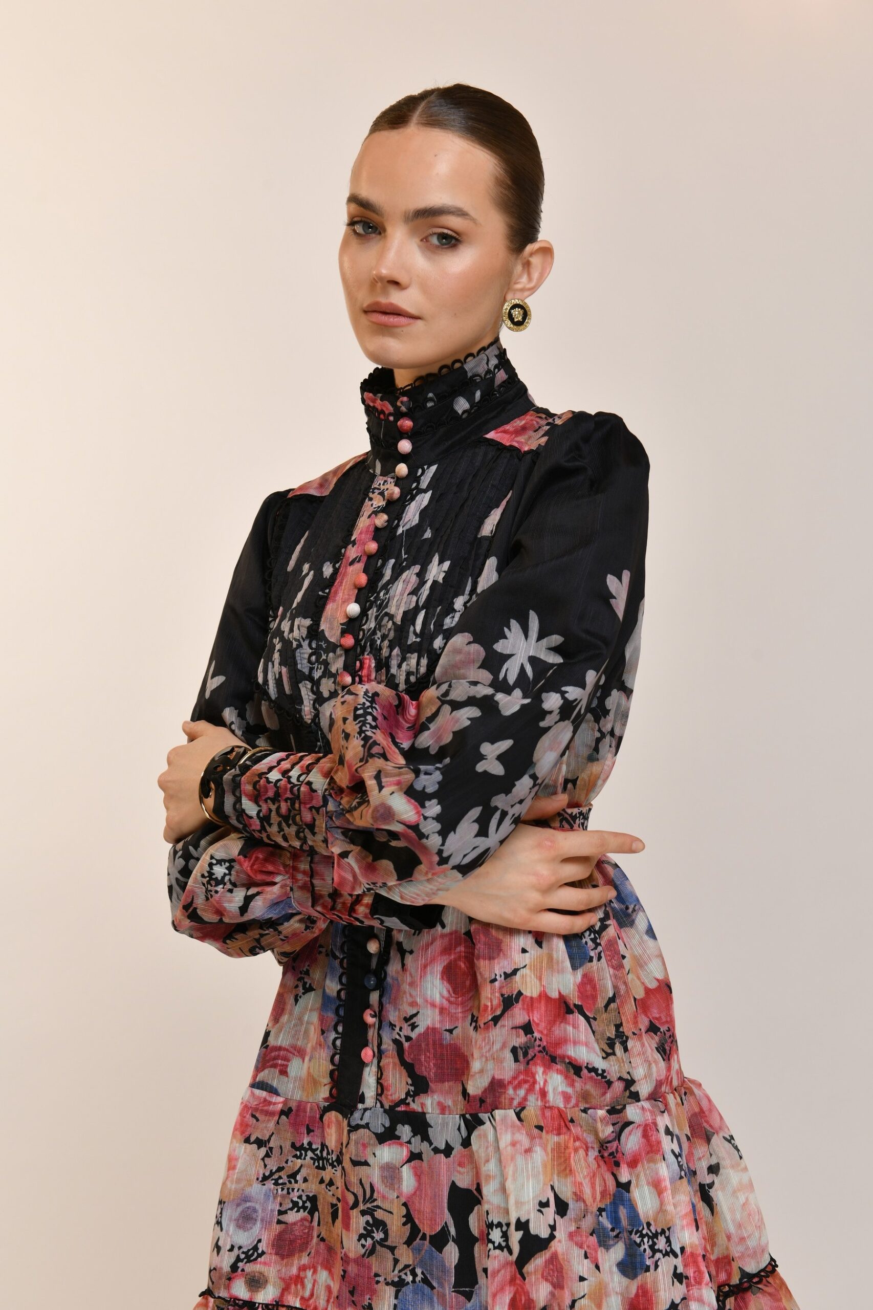 שרוולי השמלה עם נפח שיקי ואלמנטים מיוחדים של תחרה המשולבים בתוך השמלה.