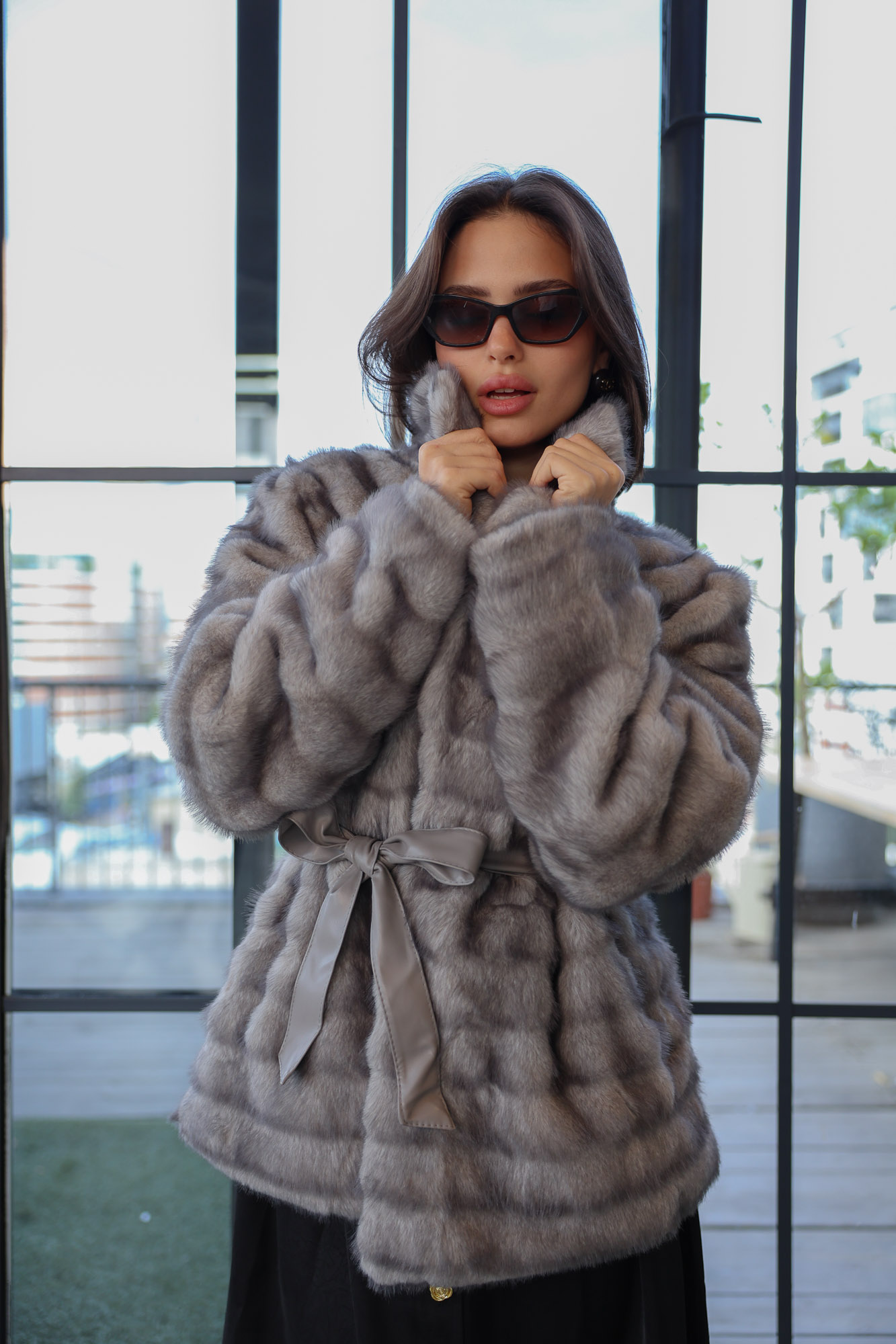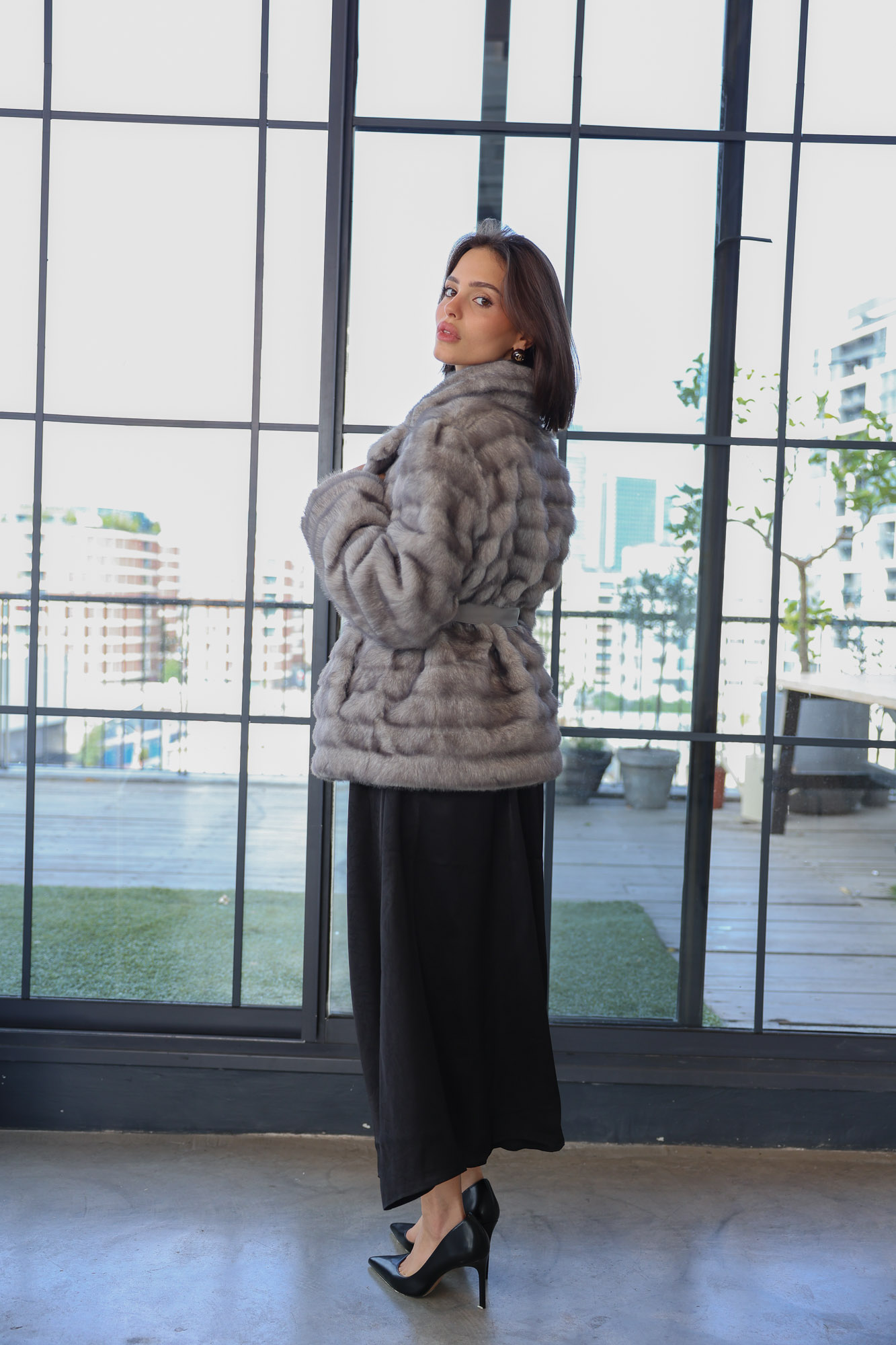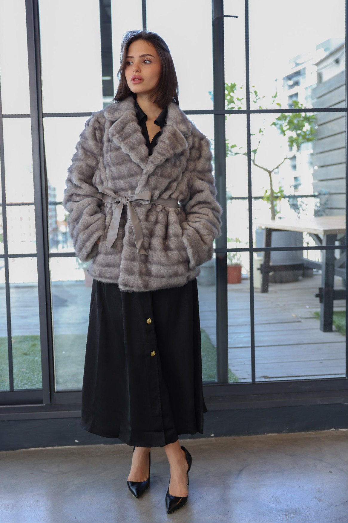 ג’קט / עליונית פרווה בשילוב חגורה דמוי עור.
