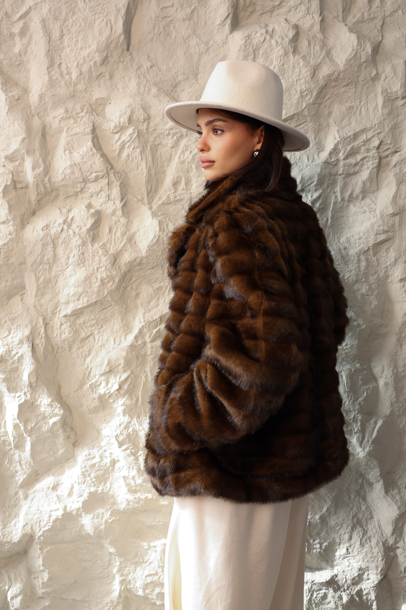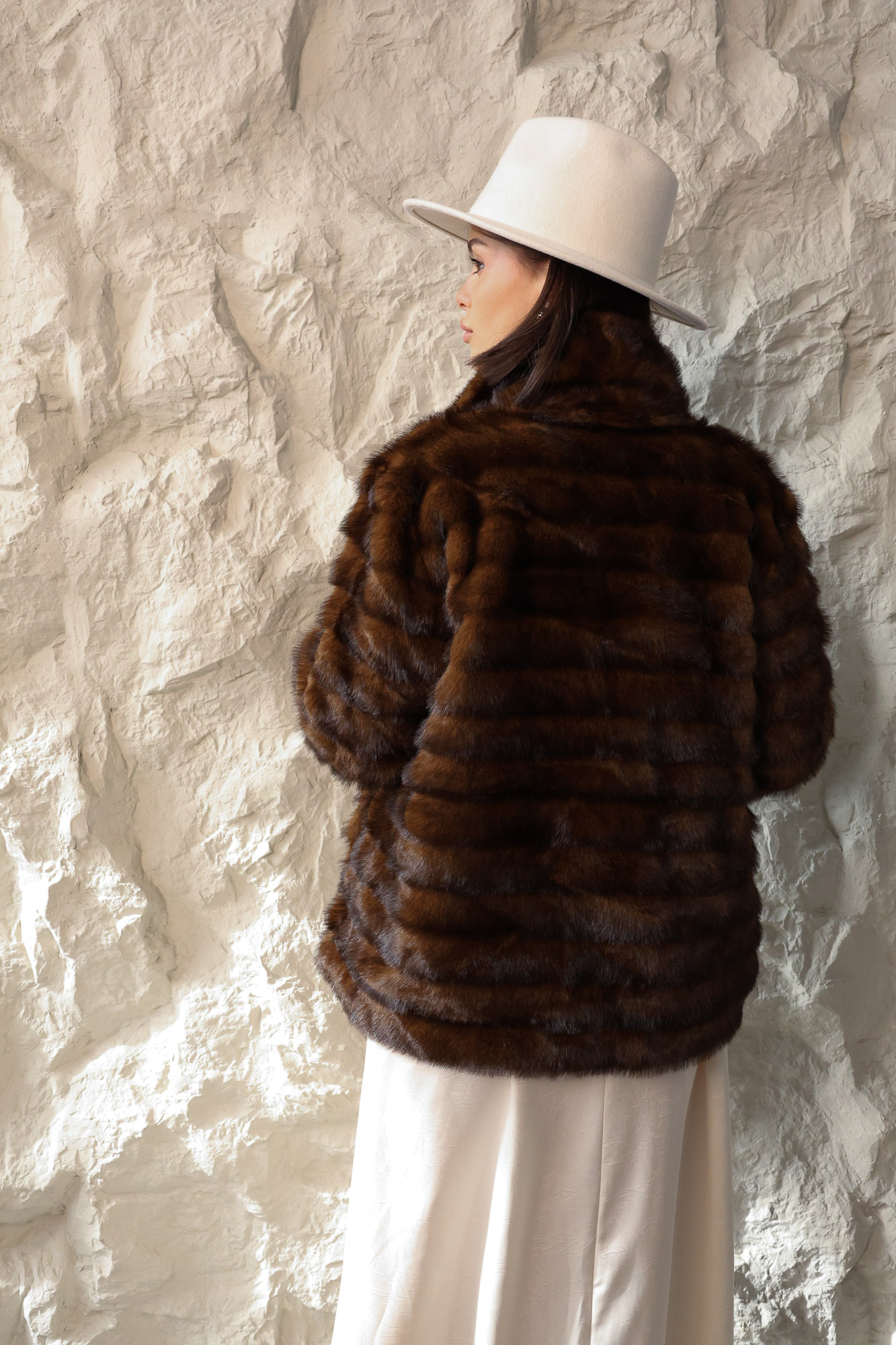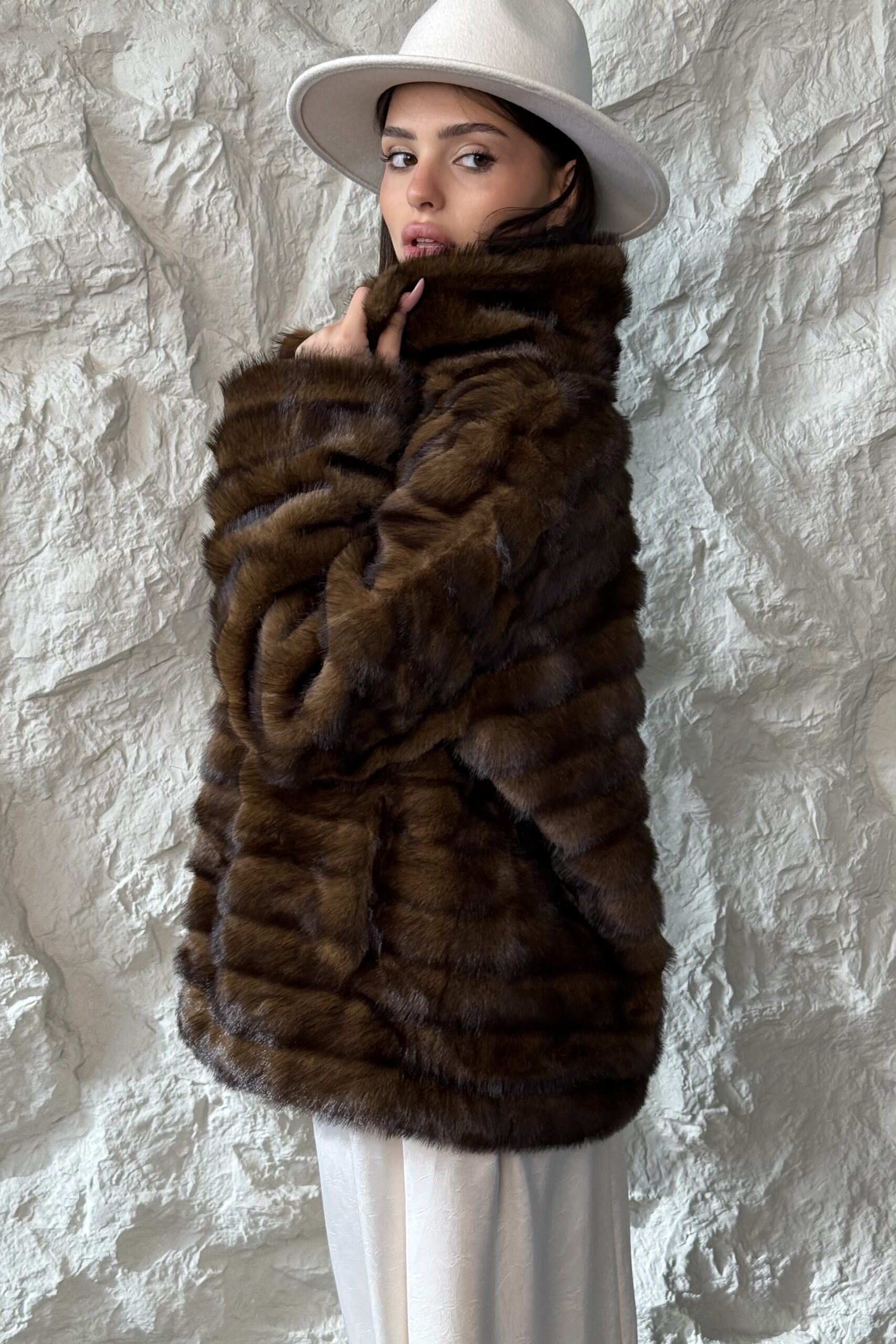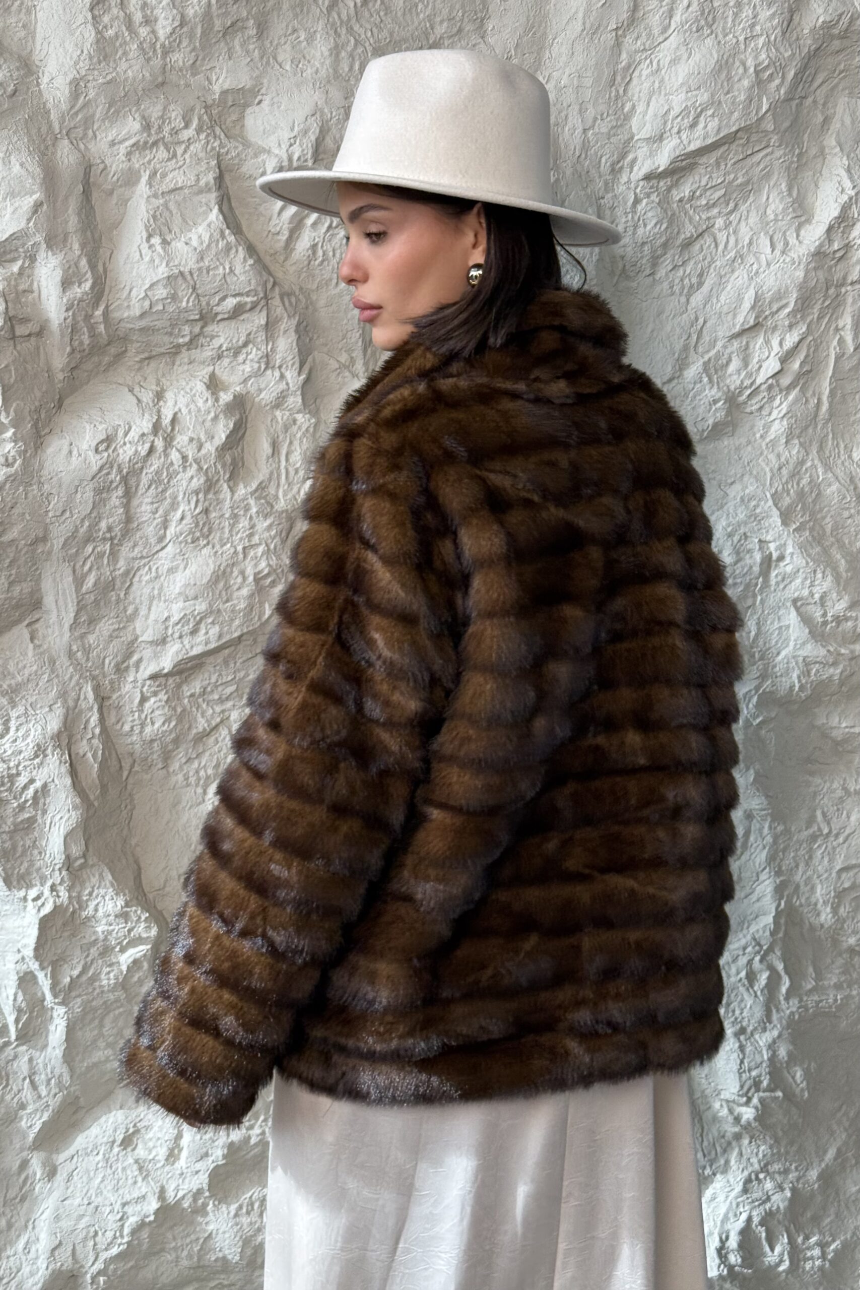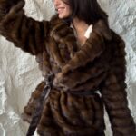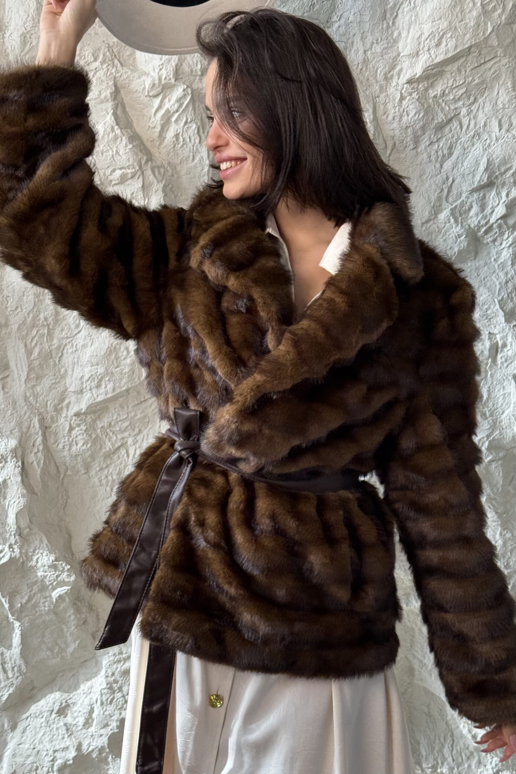 ג’קט/ עליונית פרווה בשילוב חגורה חום