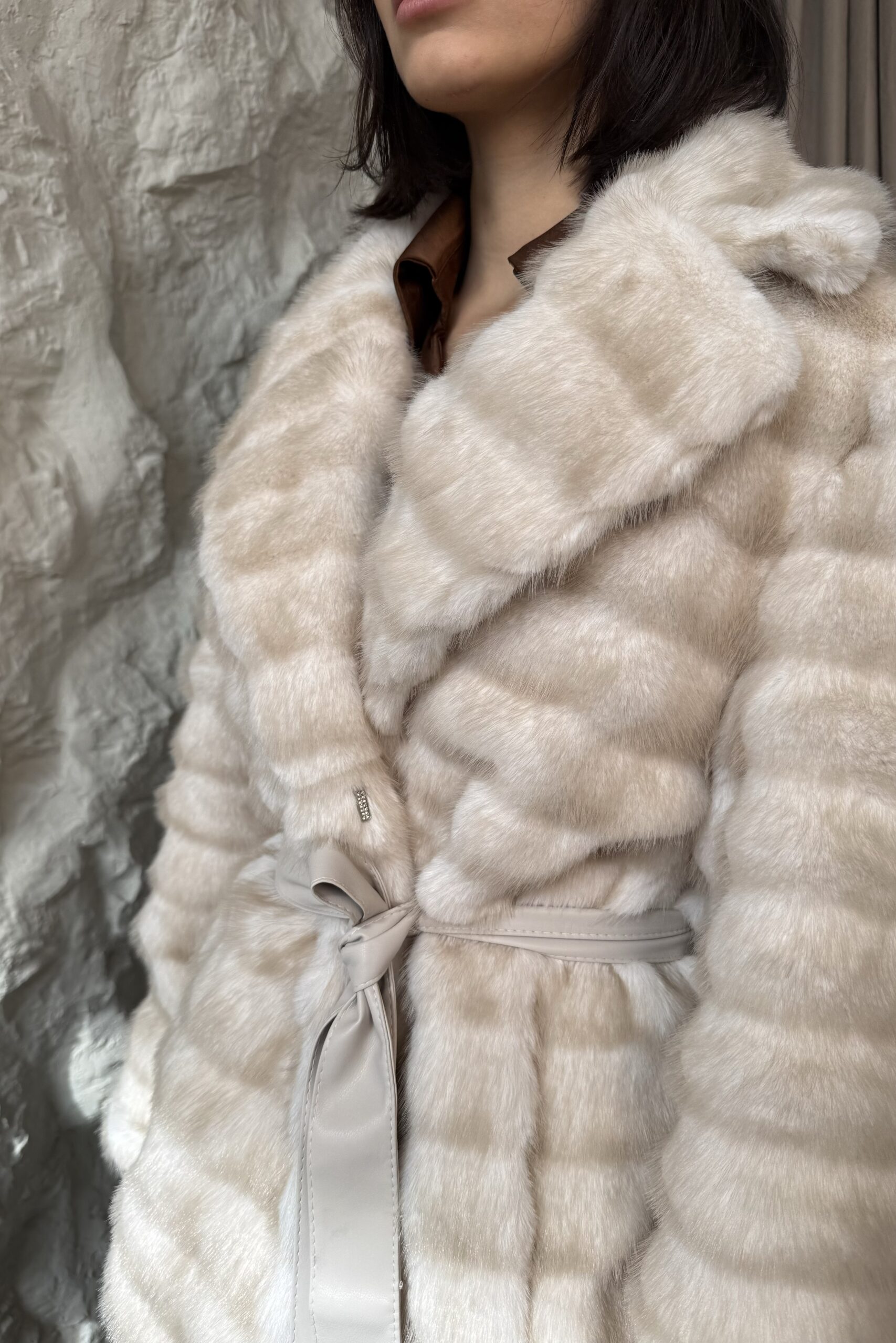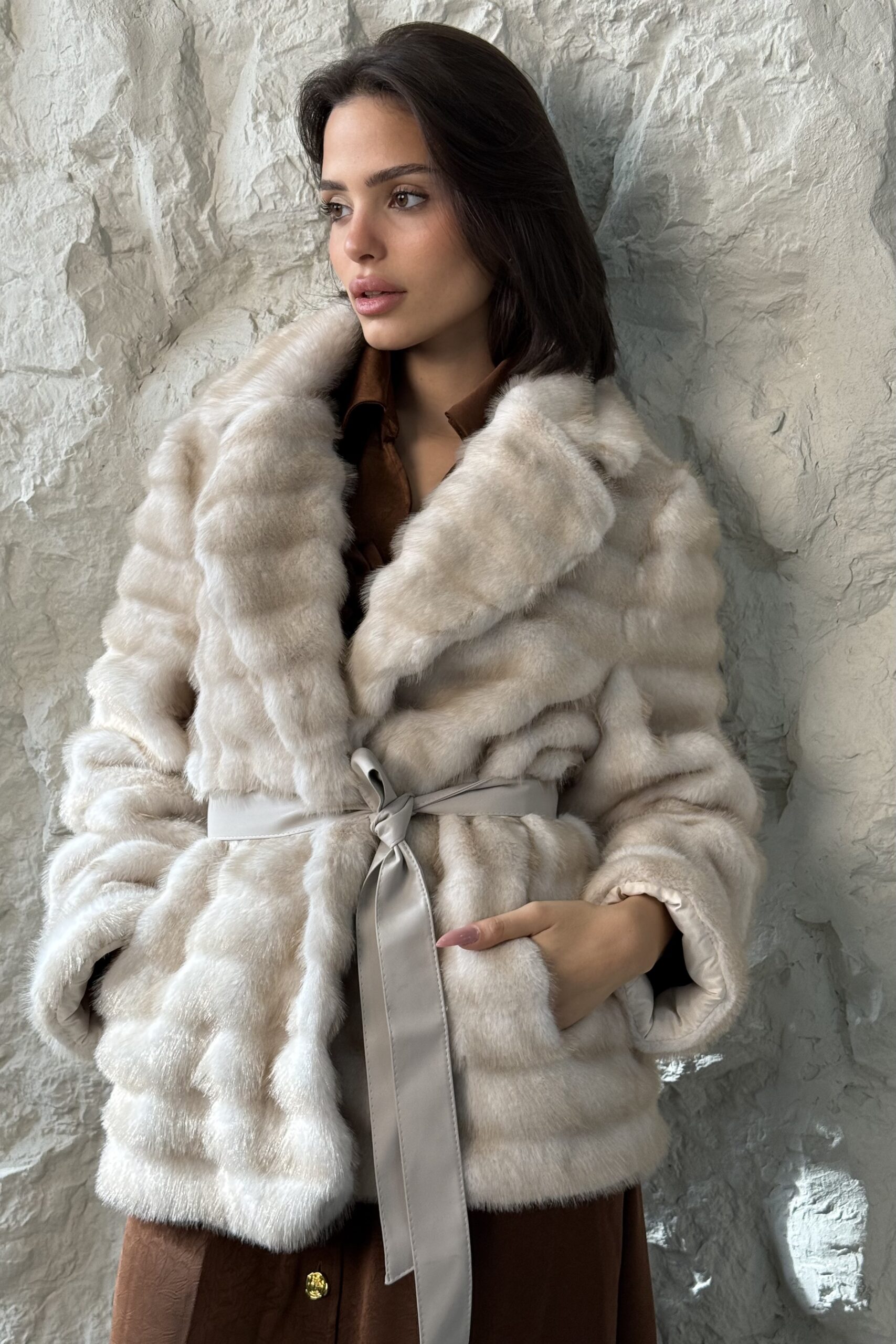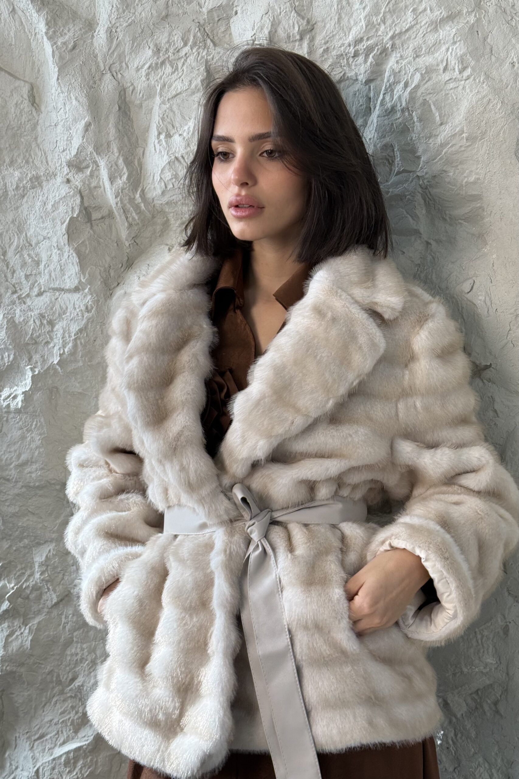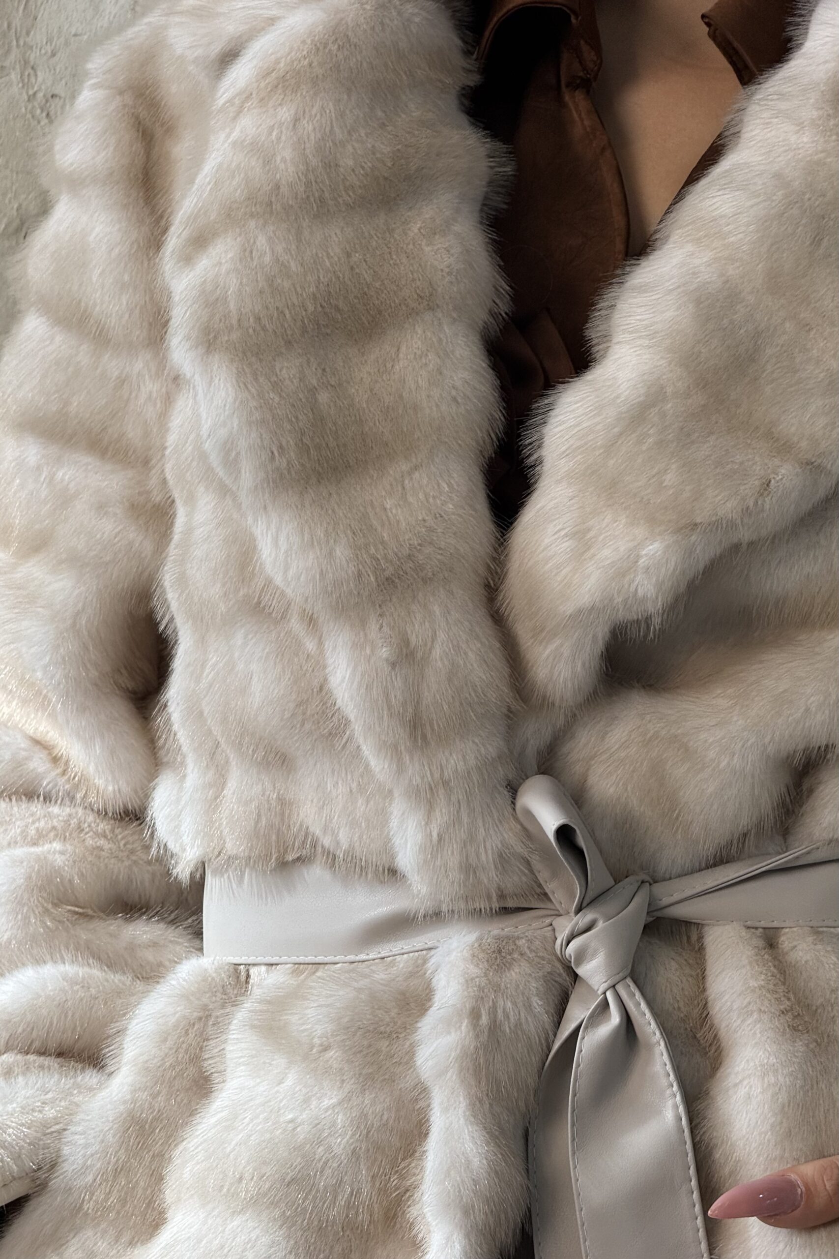 ג’קט / עליונית פרווה בשילוב חגורה דמוי עור.