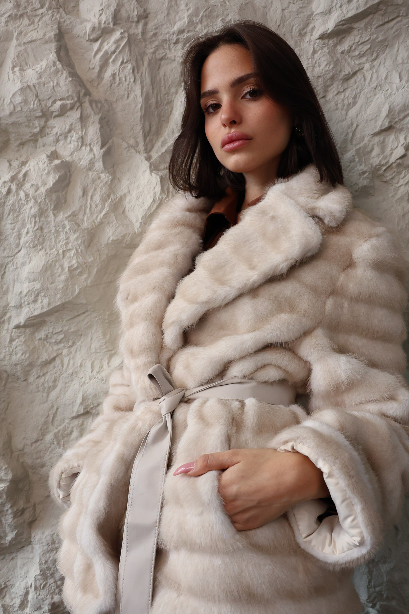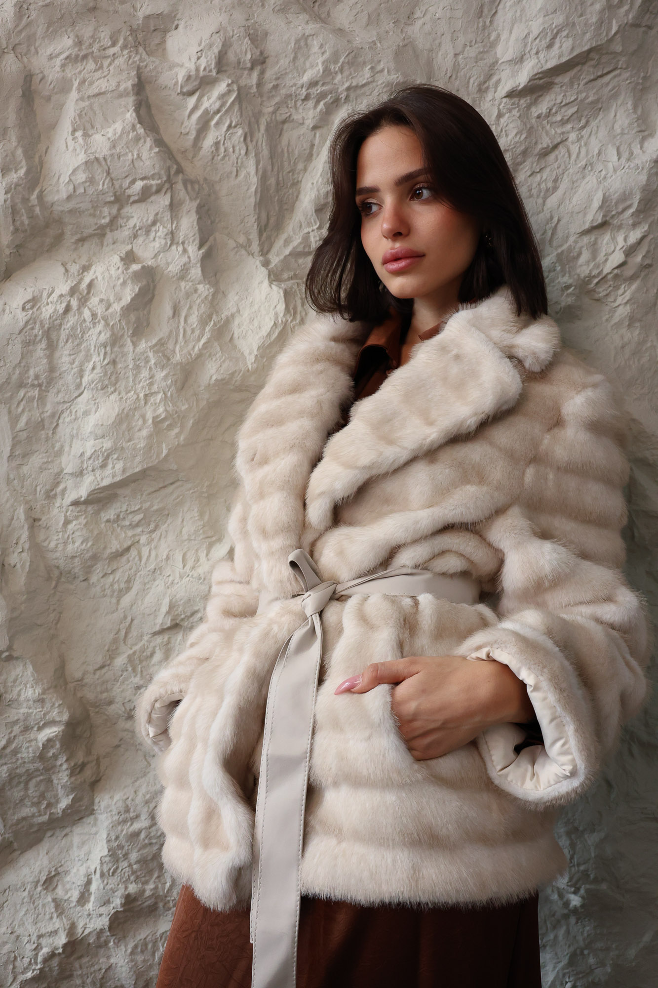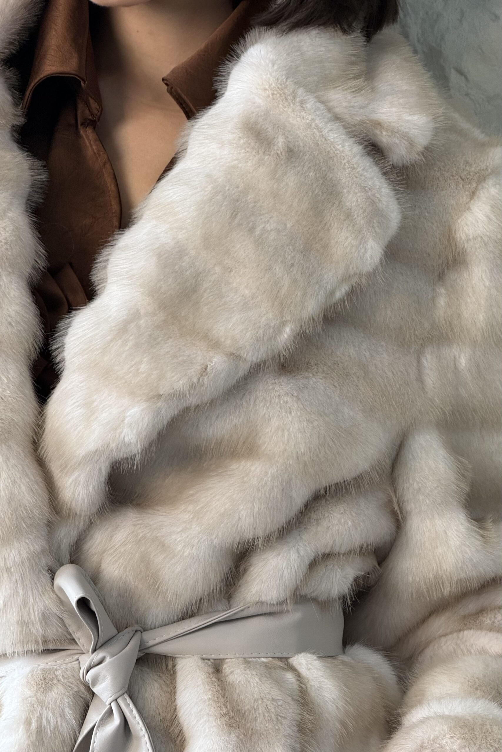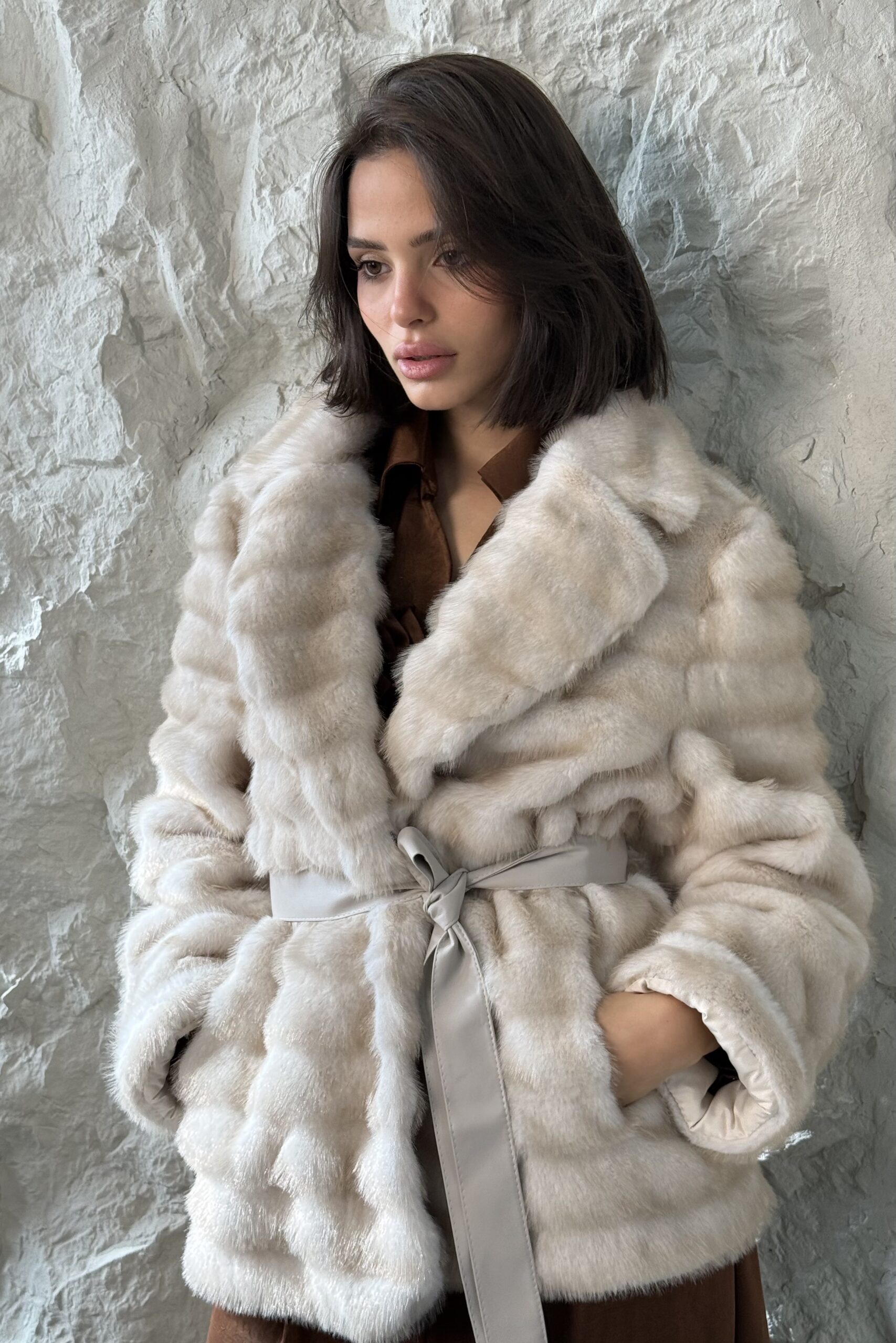 ג’קט / עליונית פרווה בשילוב חגורה דמוי עור.