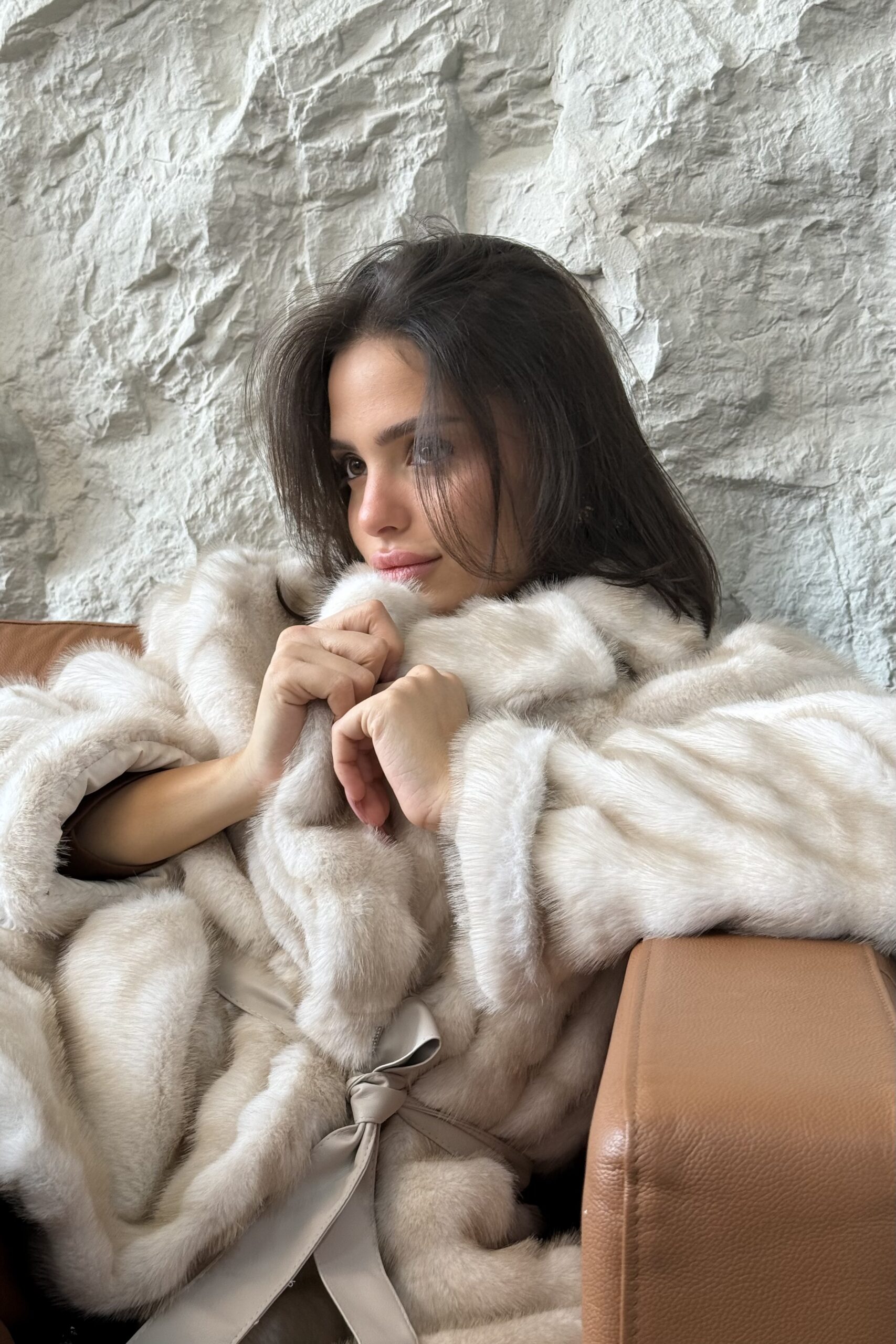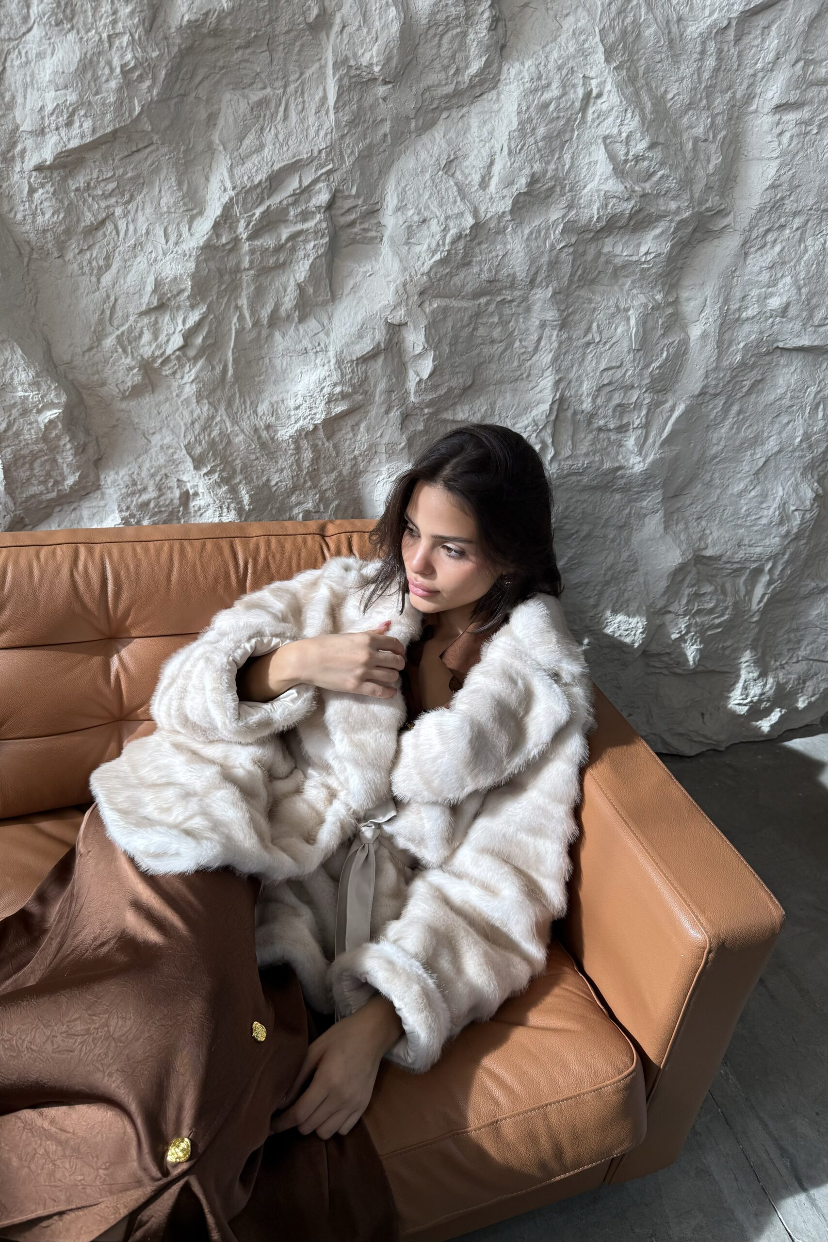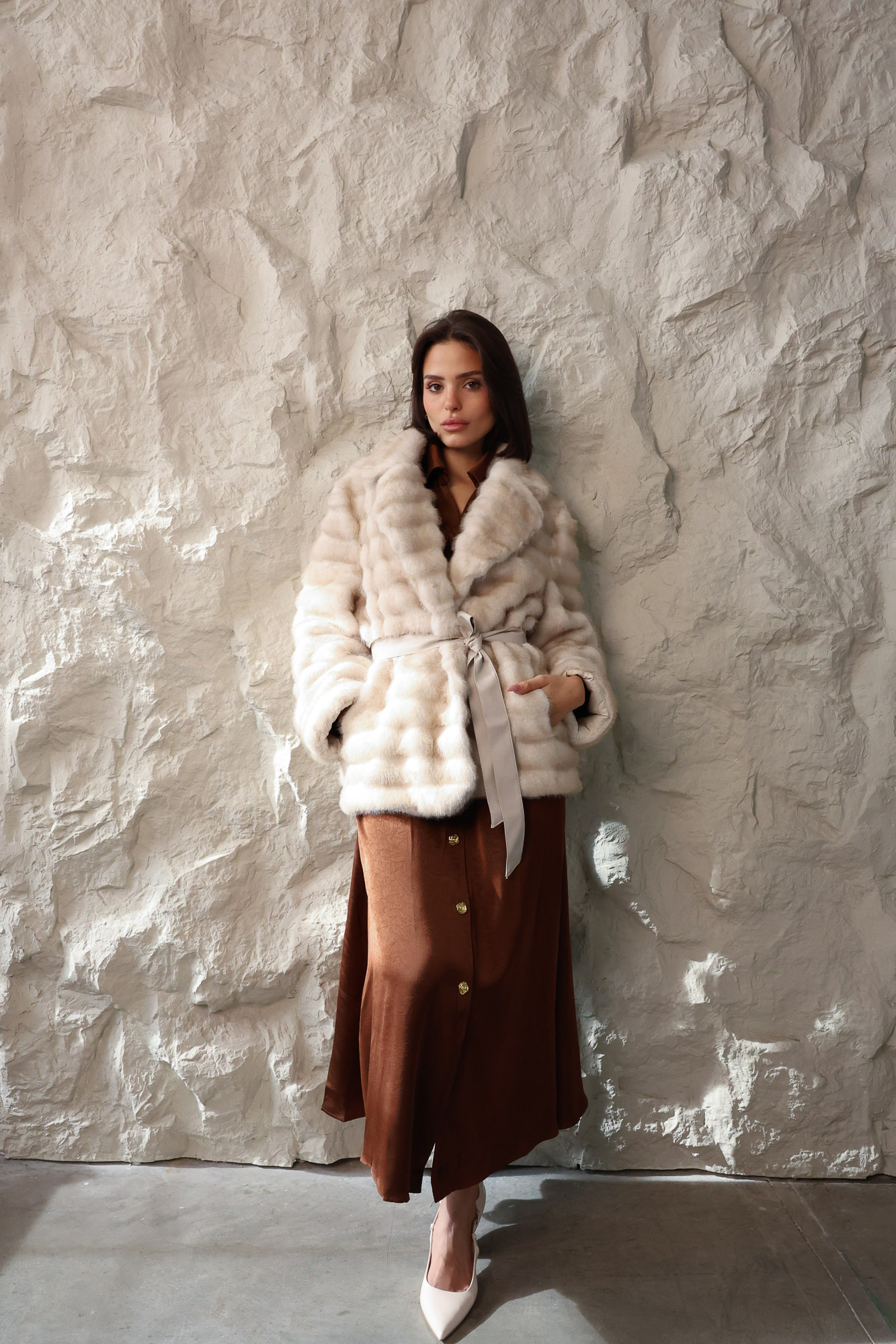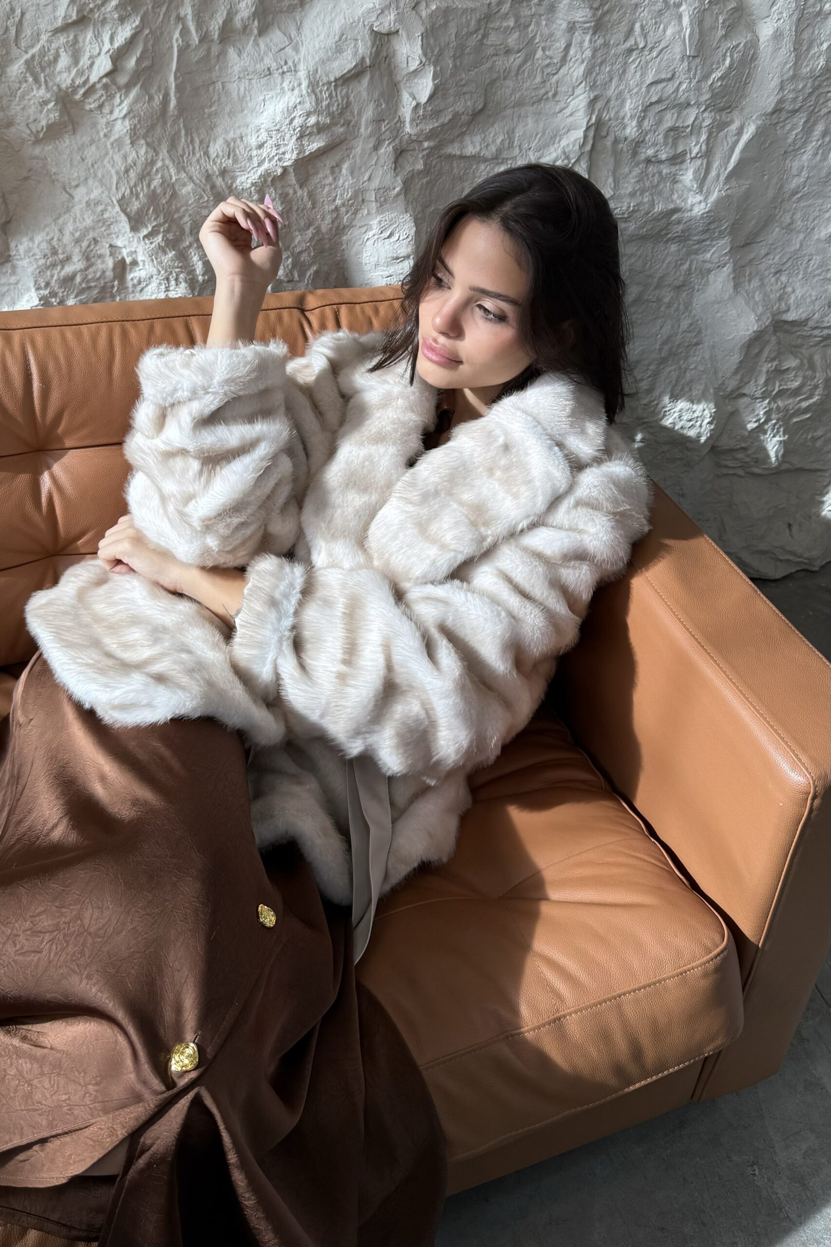 ג’קט / עליונית פרווה בשילוב חגורה דמוי עור.