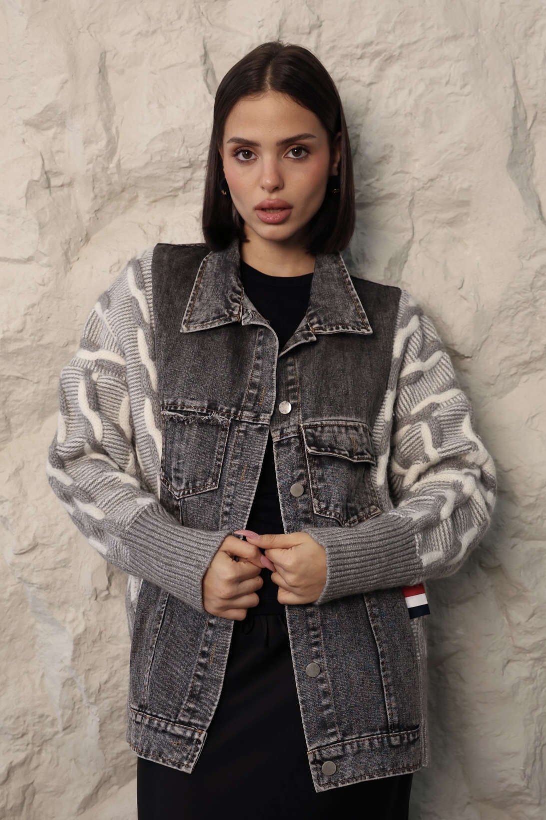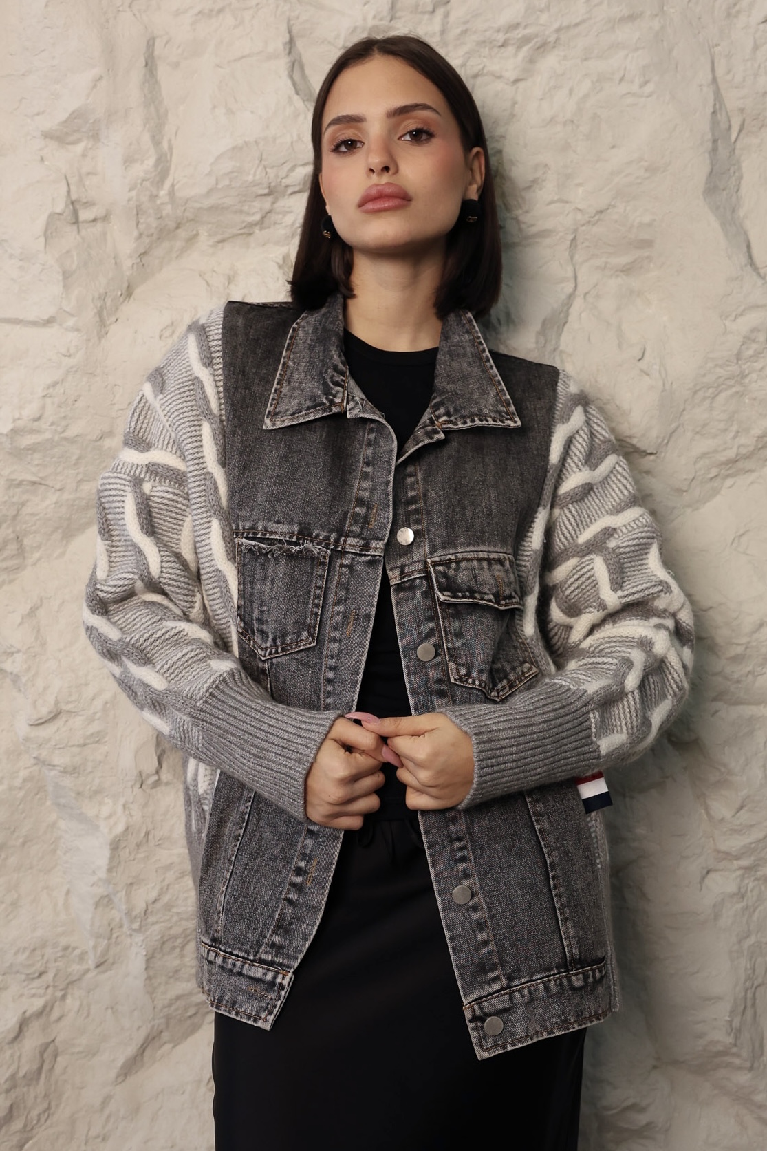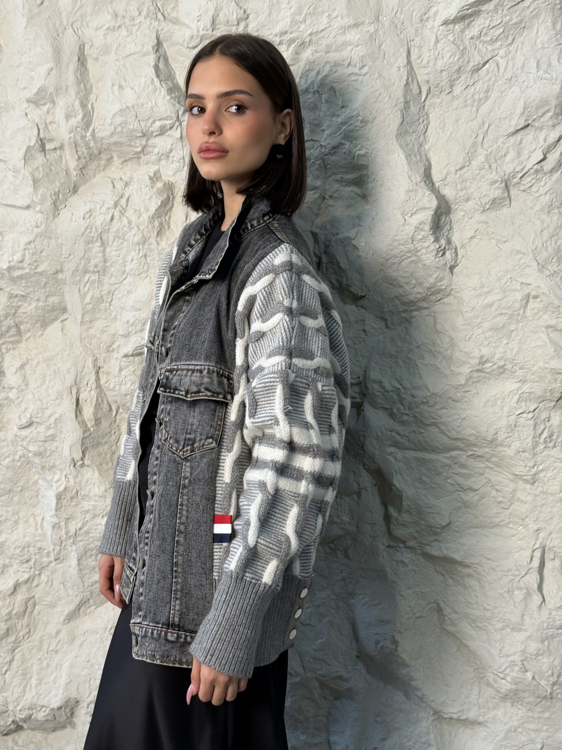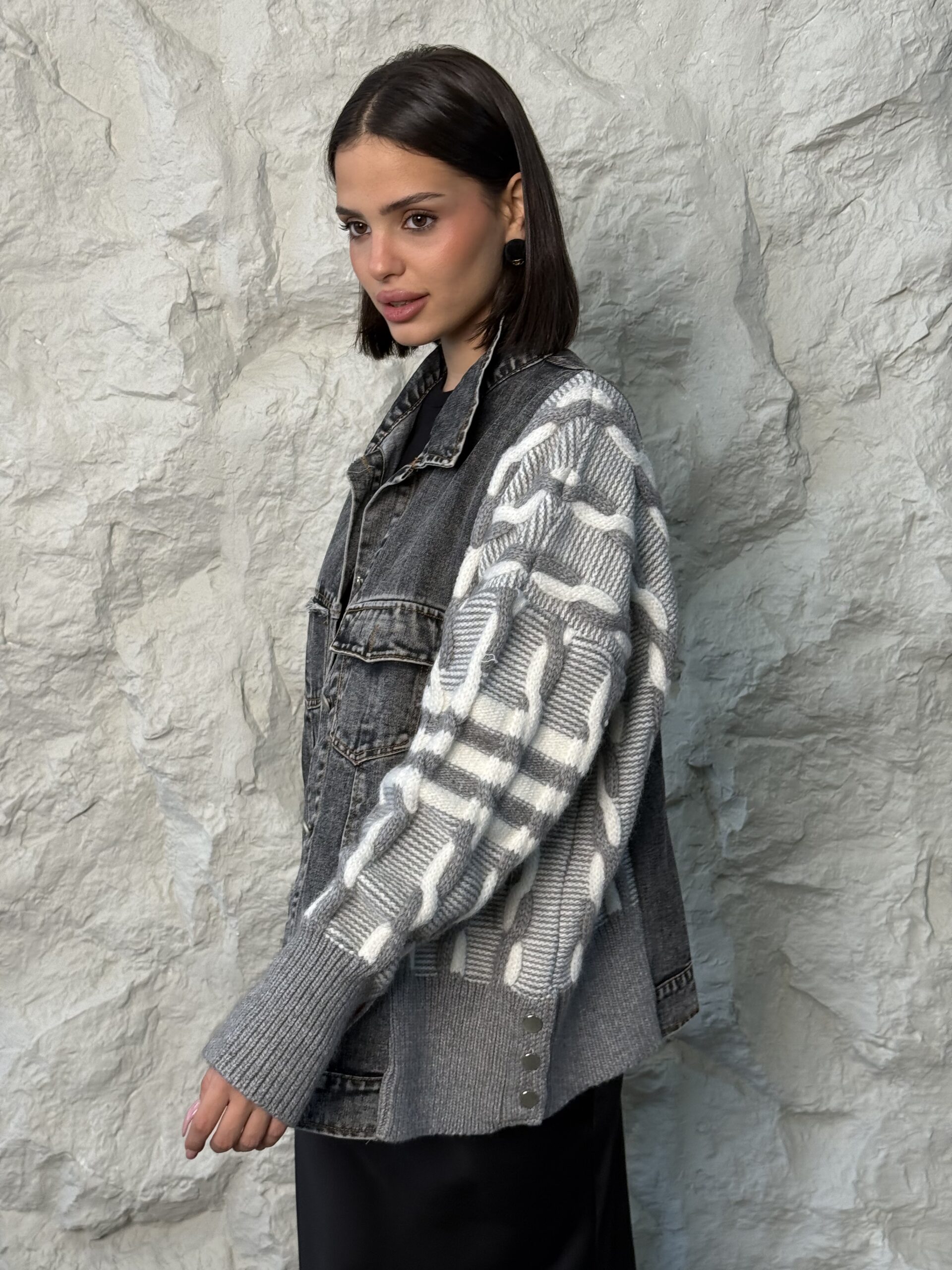 ג’קט ג׳ינס בשילוב בד סריג.מלא בשיק וסטייל!