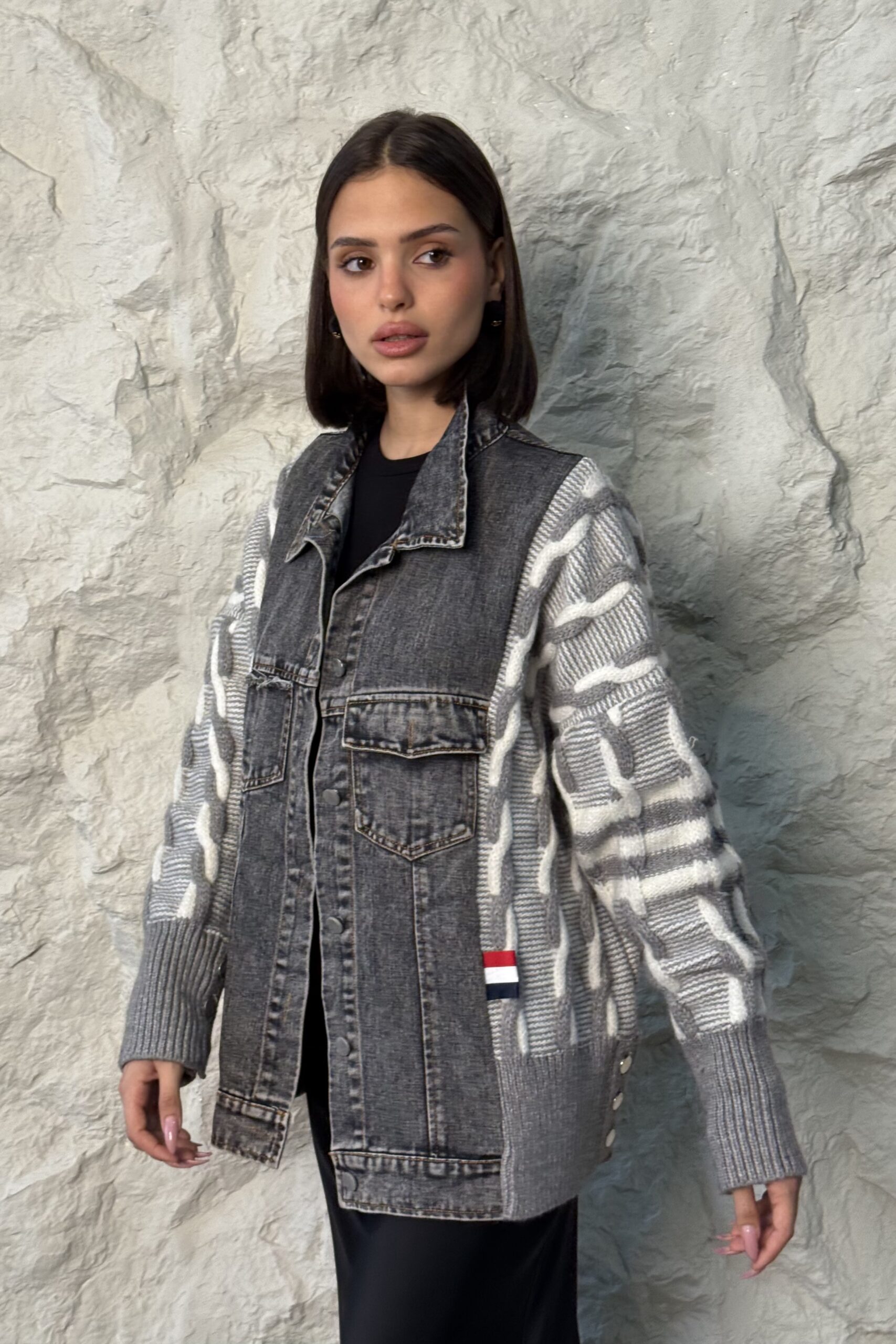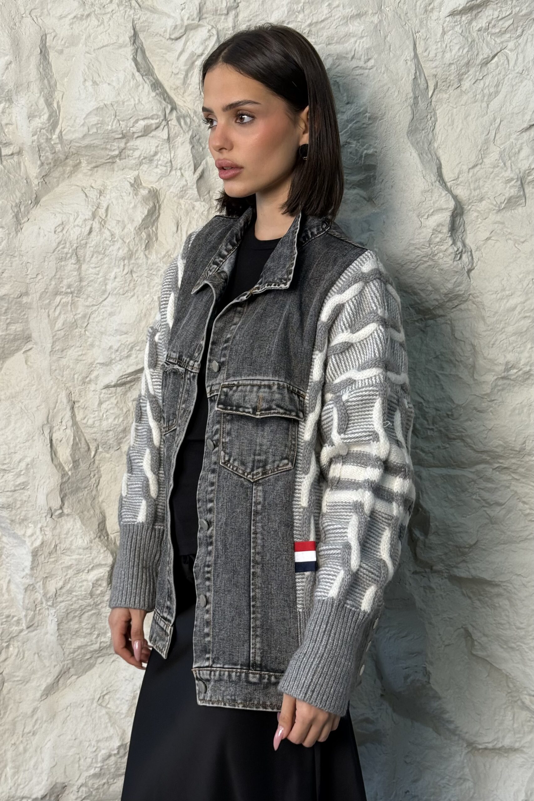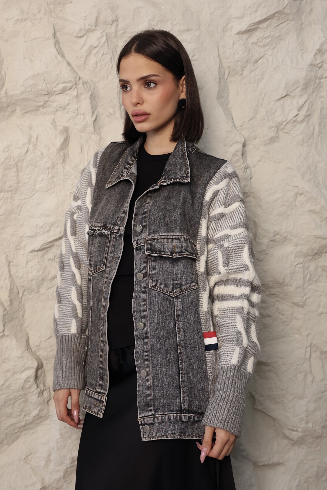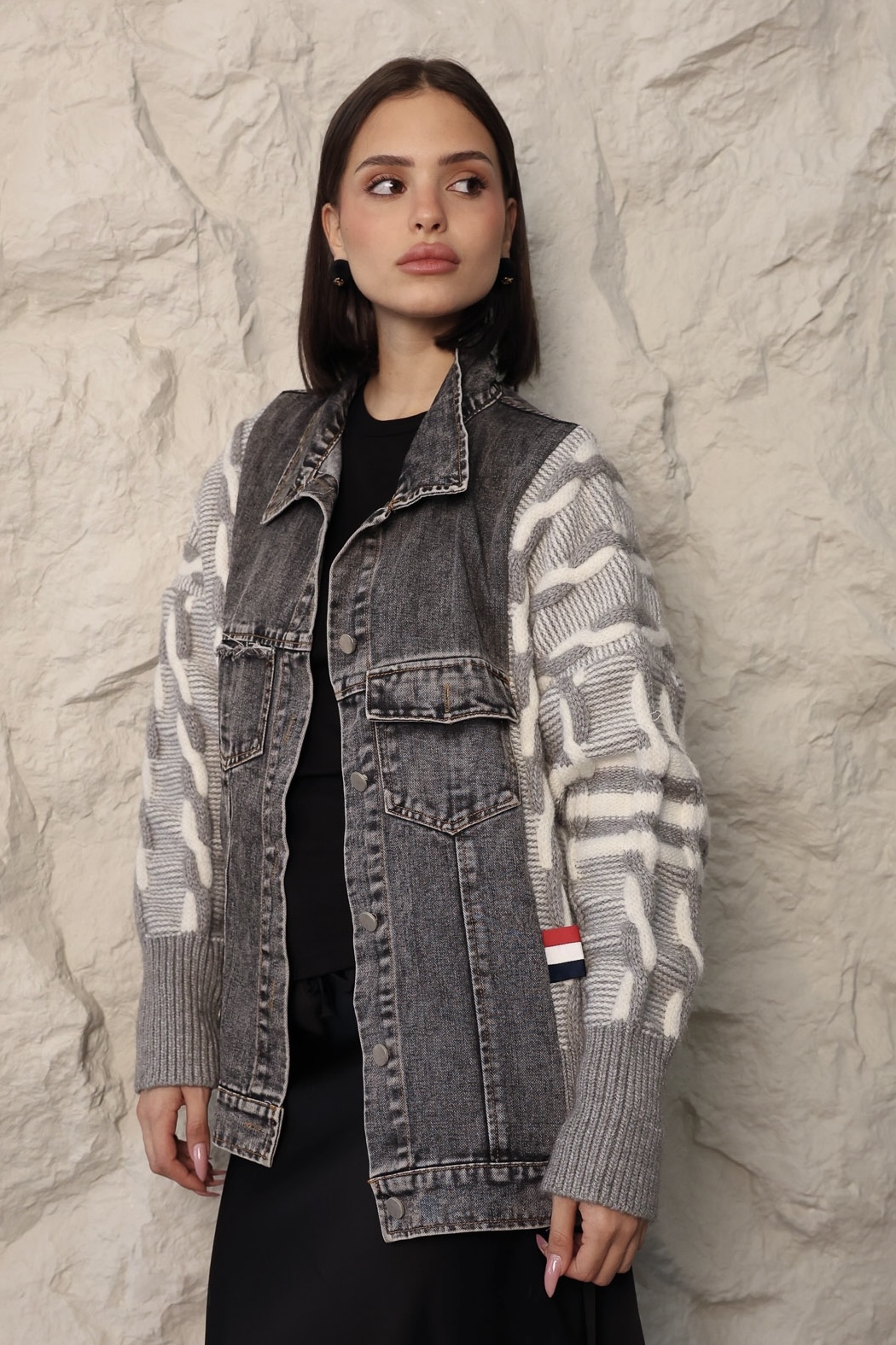 ג’קט ג׳ינס בשילוב בד סריג.מלא בשיק וסטייל!