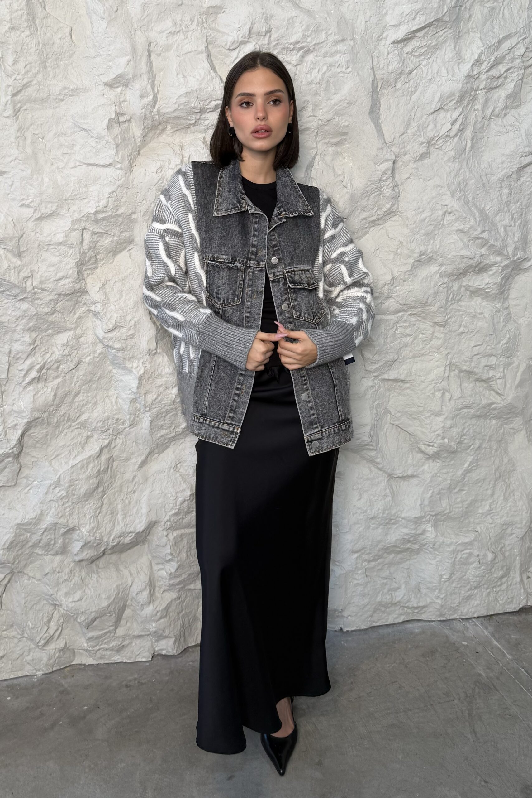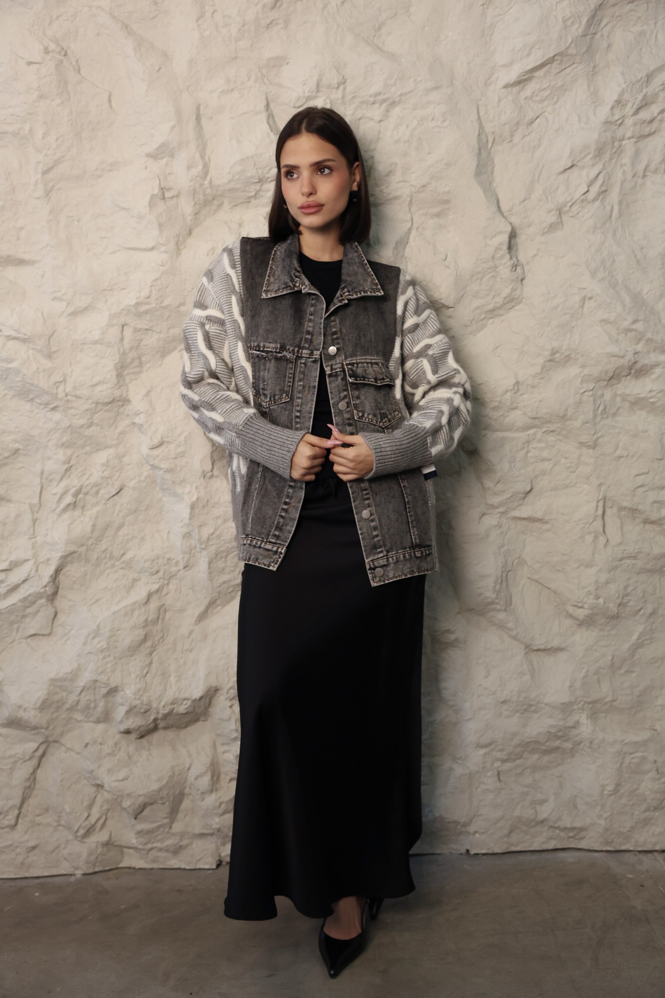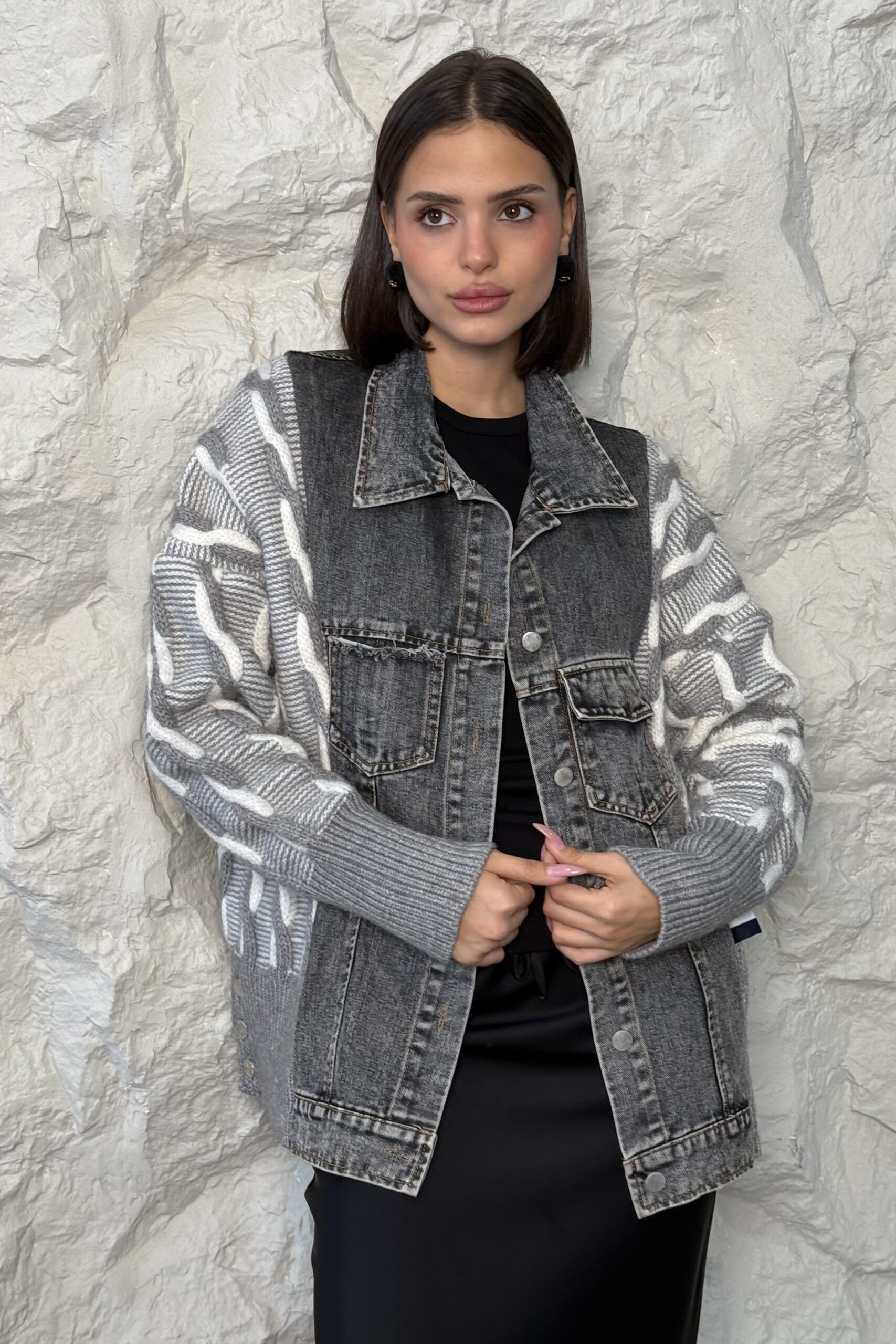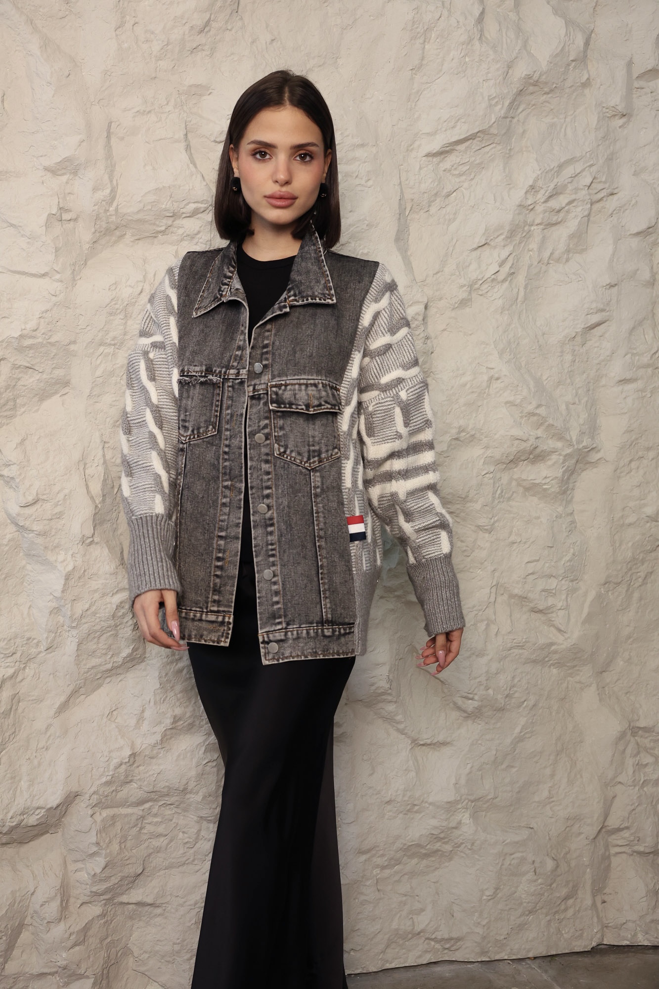 ג’קט ג׳ינס בשילוב בד סריג.מלא בשיק וסטייל!