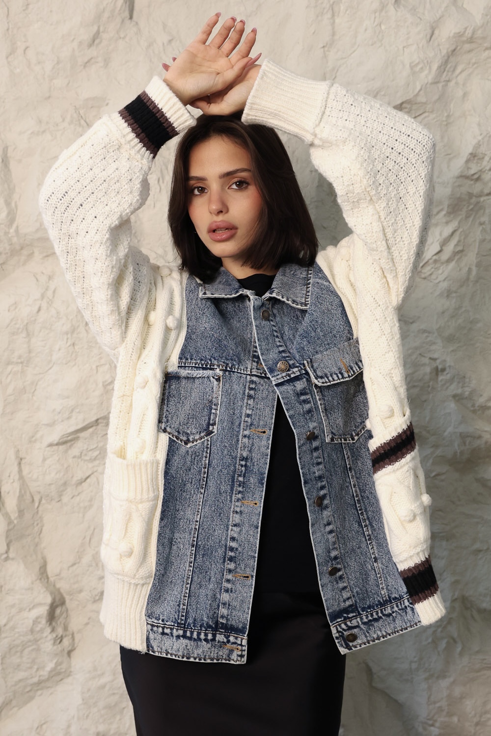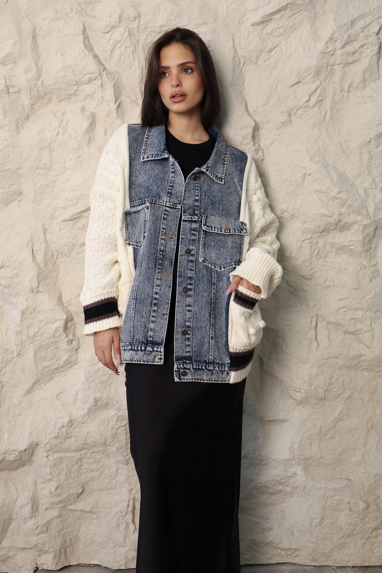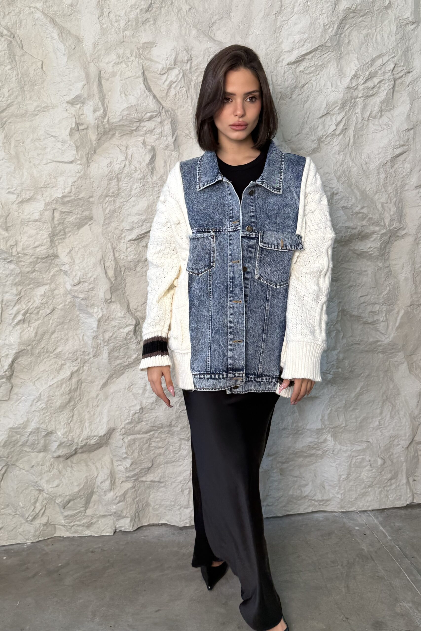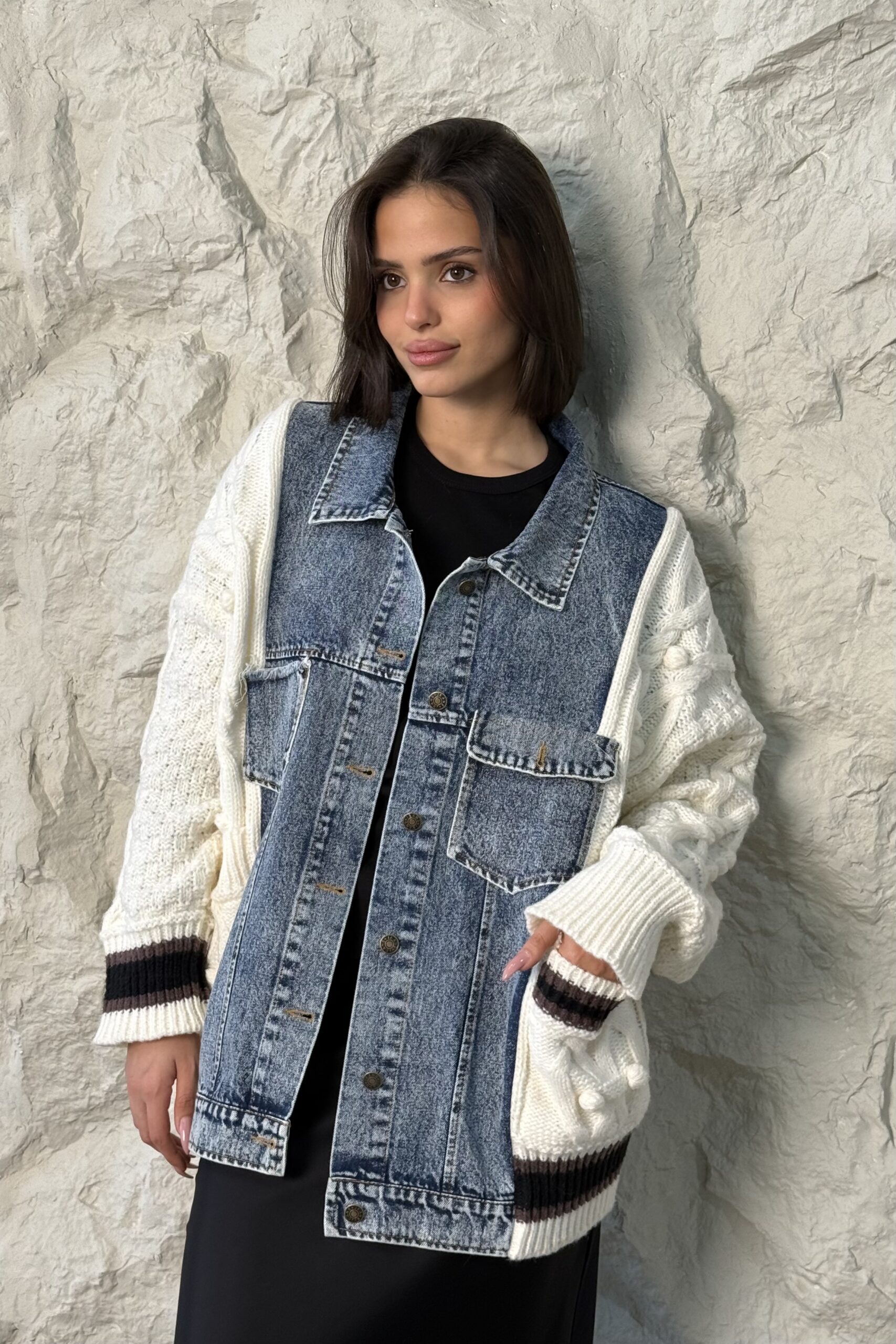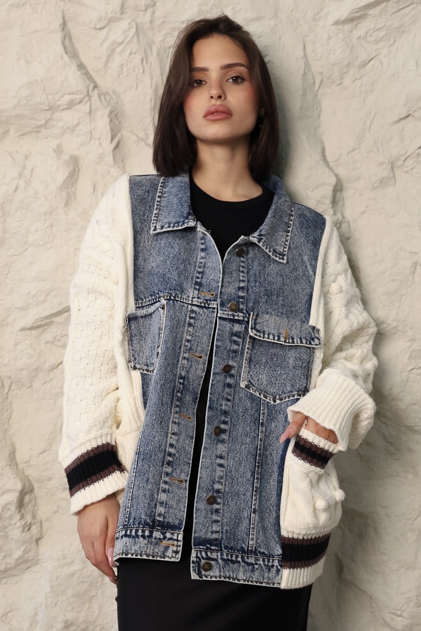 ג׳קט מבד סריג בשילוב בד ג׳ינס, מלא בשיק וסטייל!