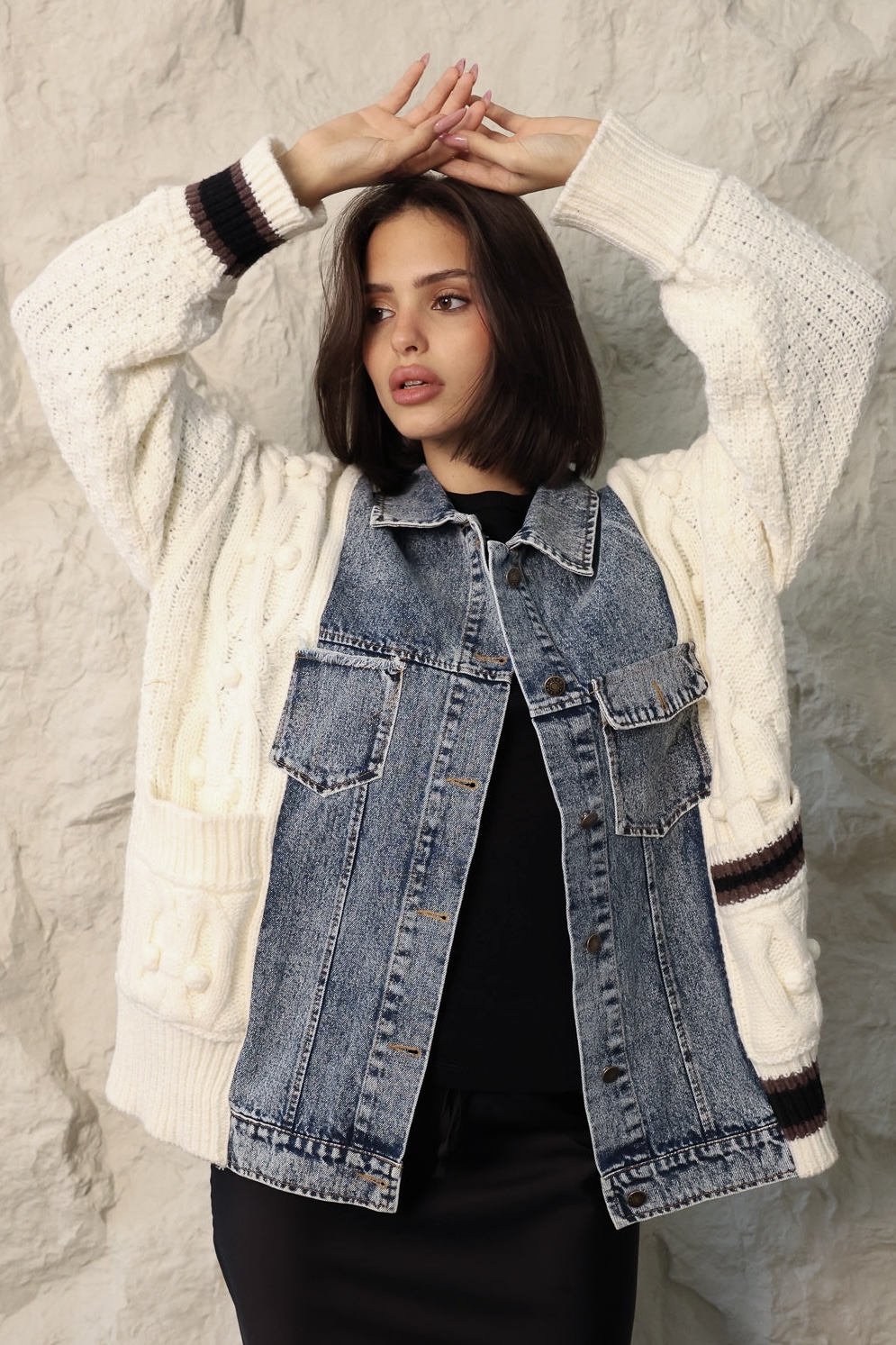 גב הג׳קט ג׳ינס בשילוב סריג