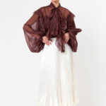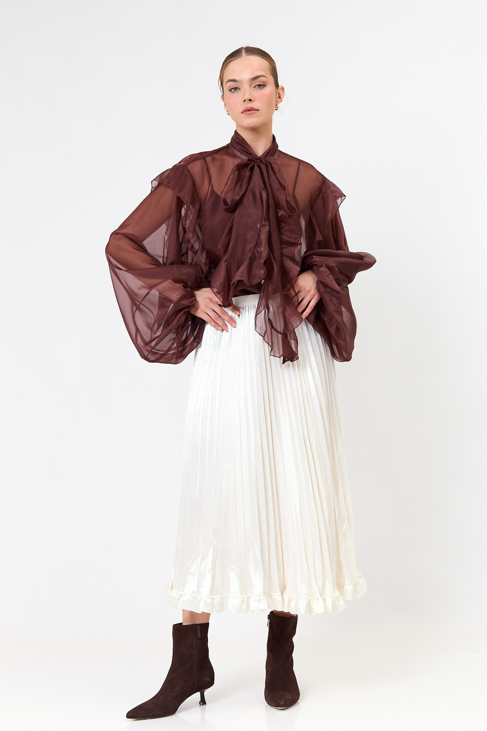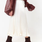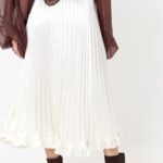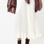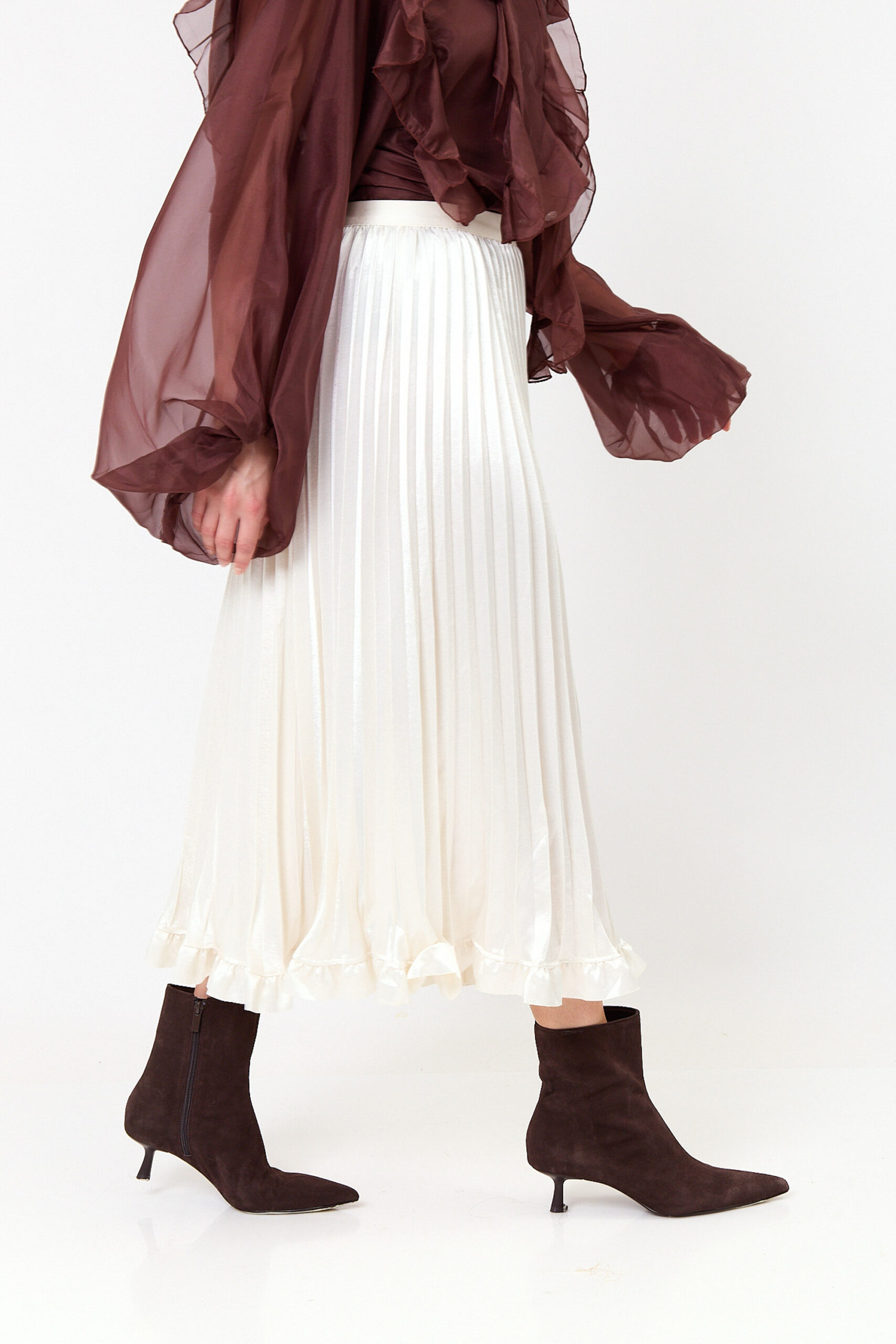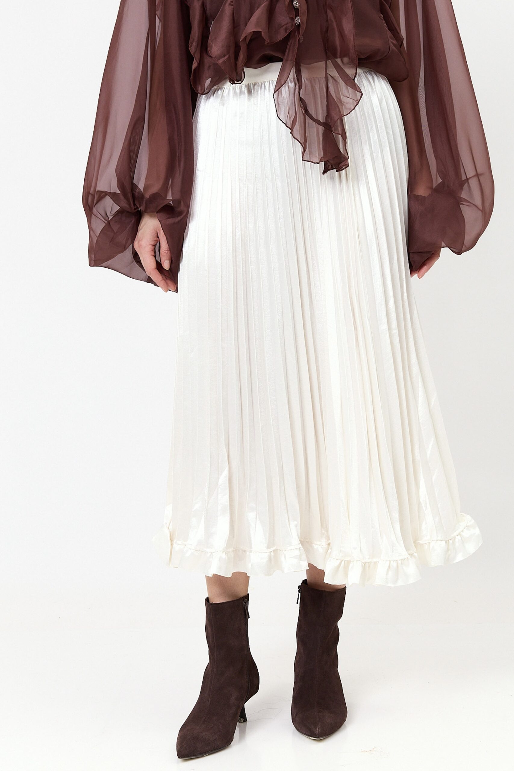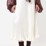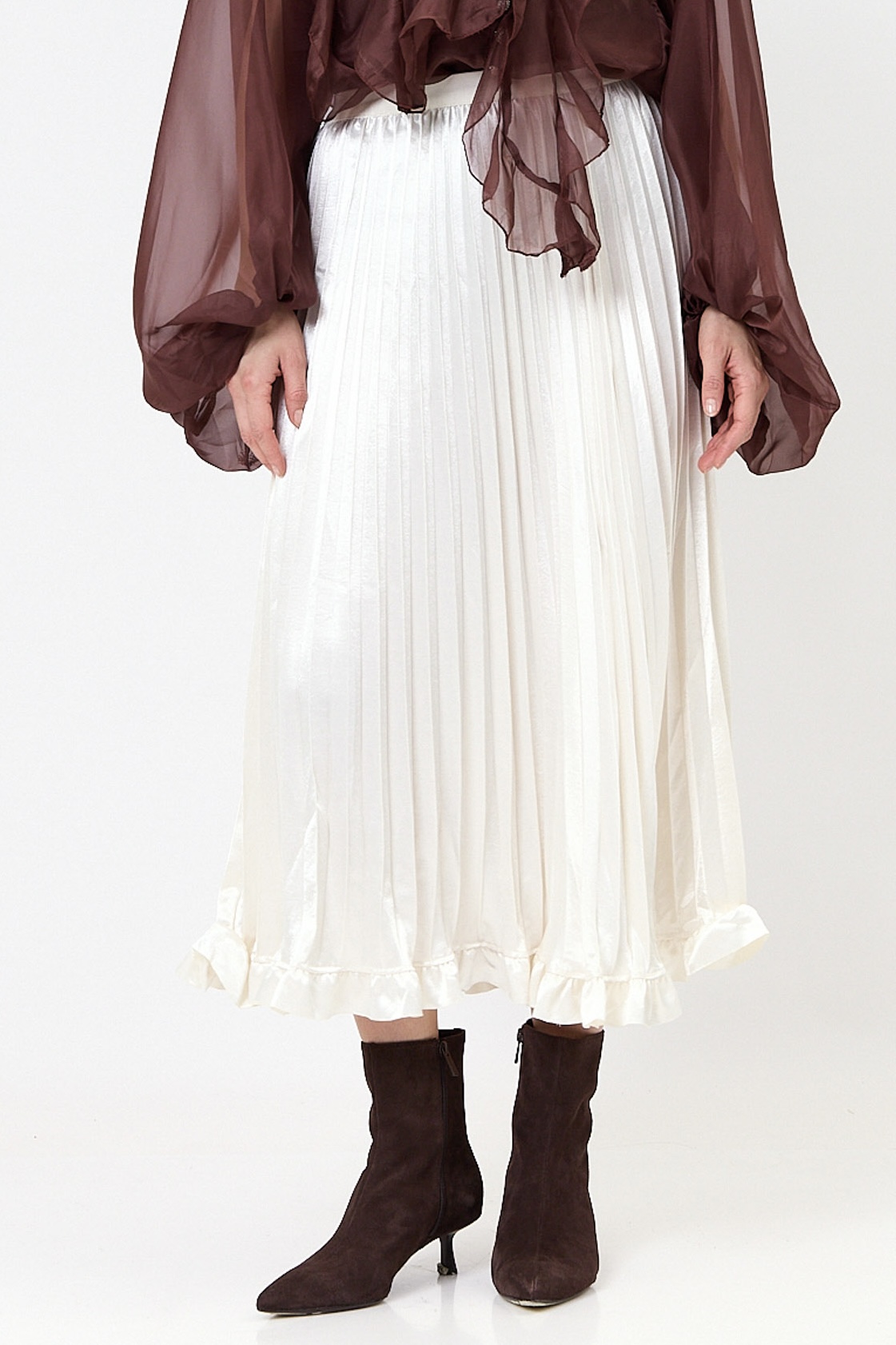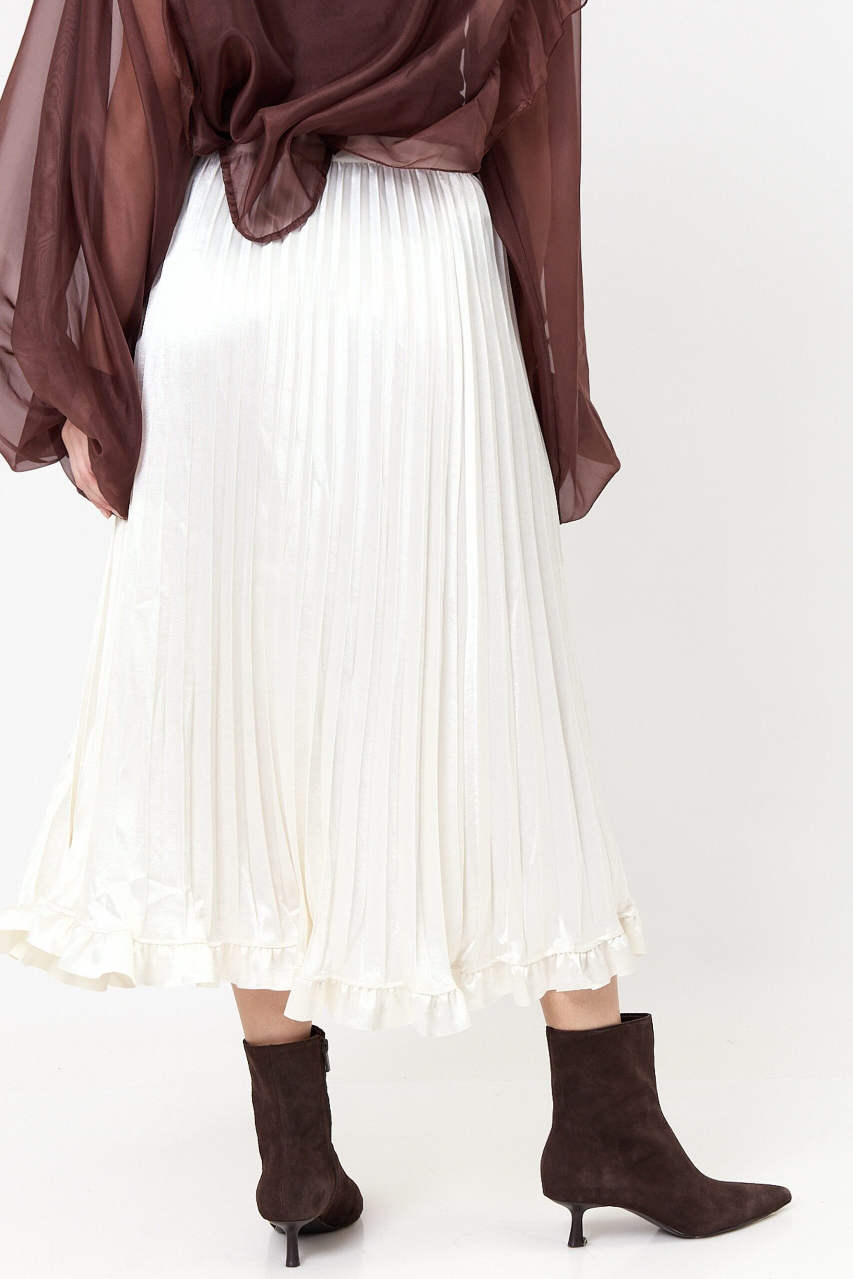 חצאית פליסה בד סאטן ייחודי דמוי לורקס קרם