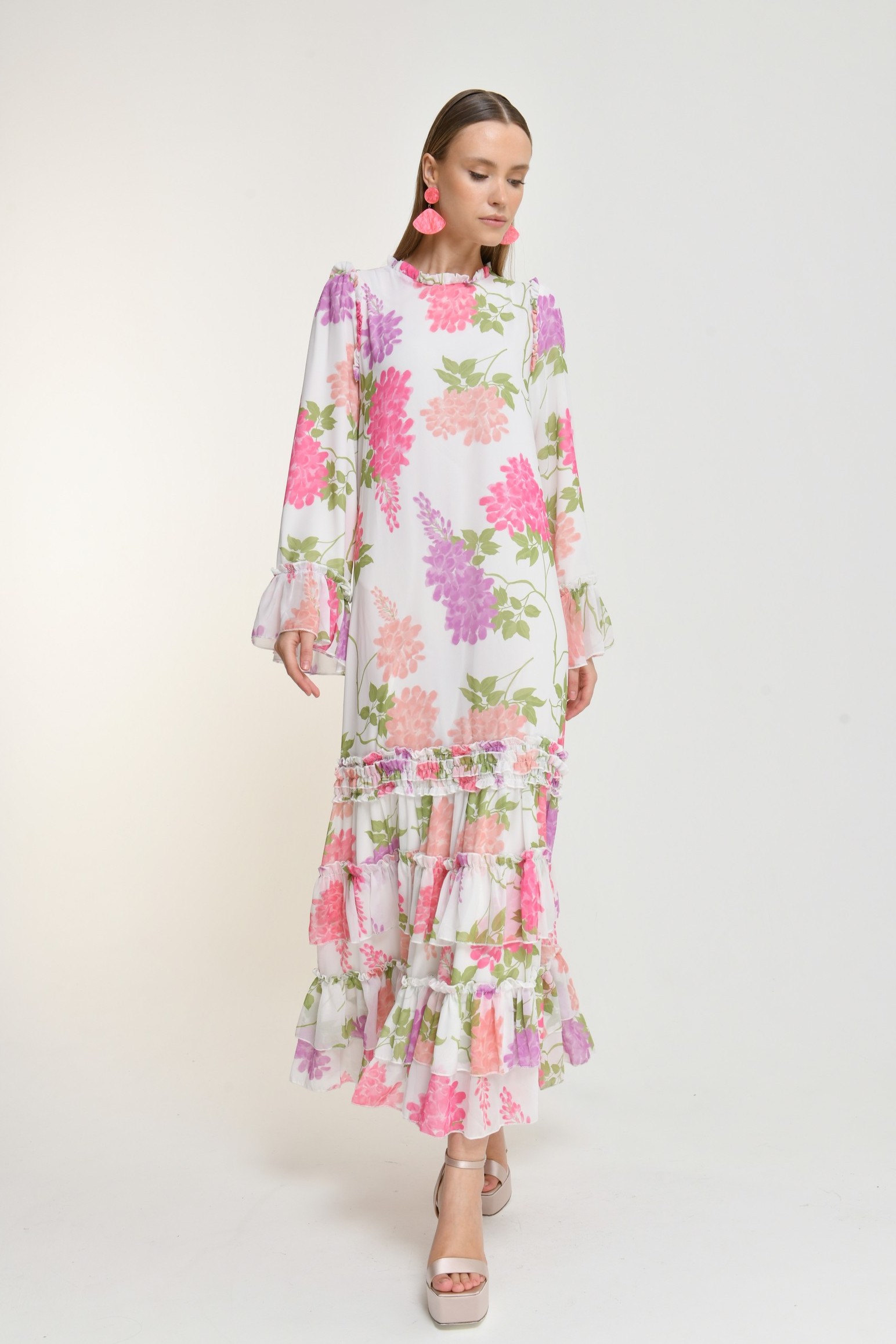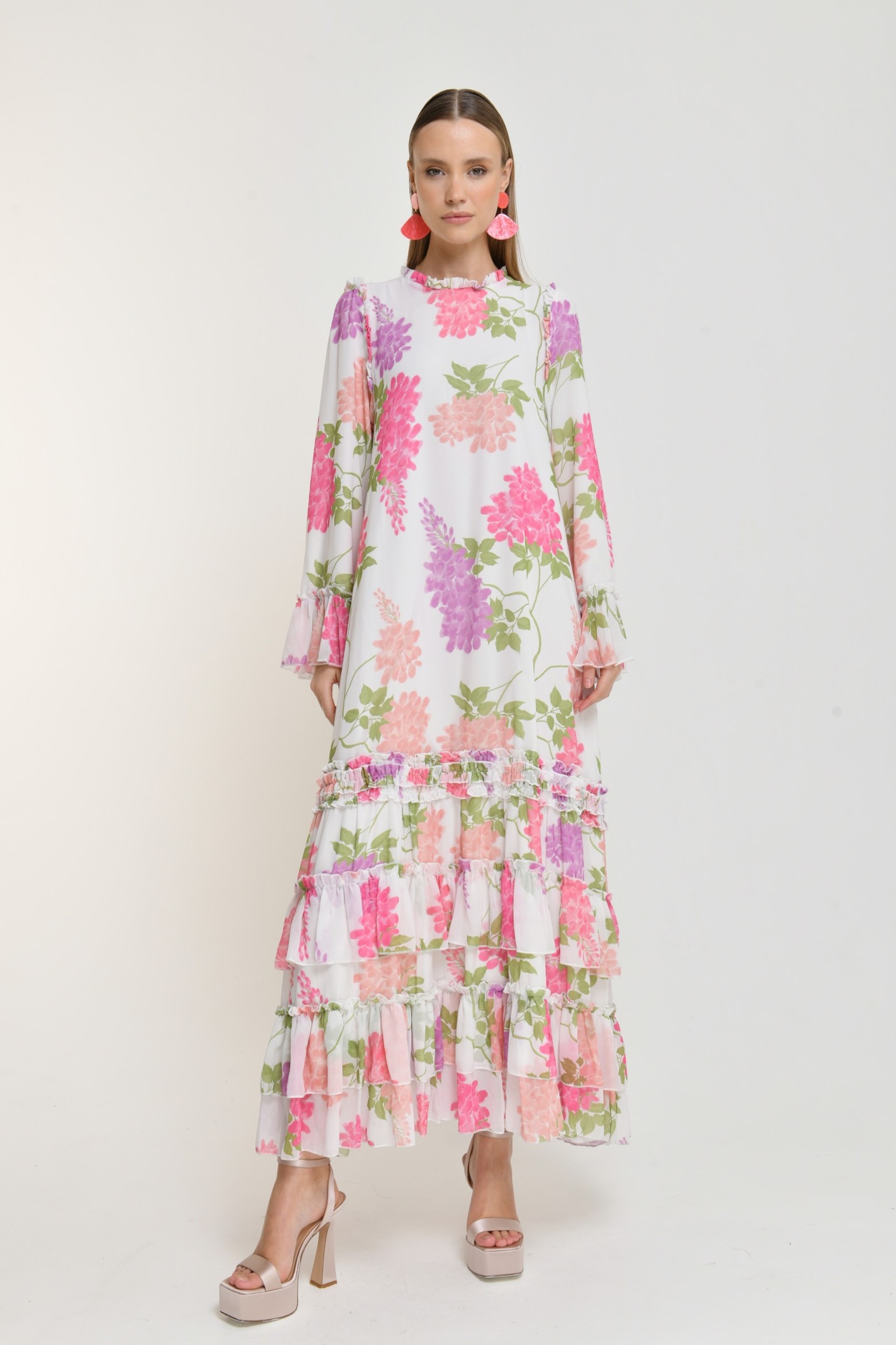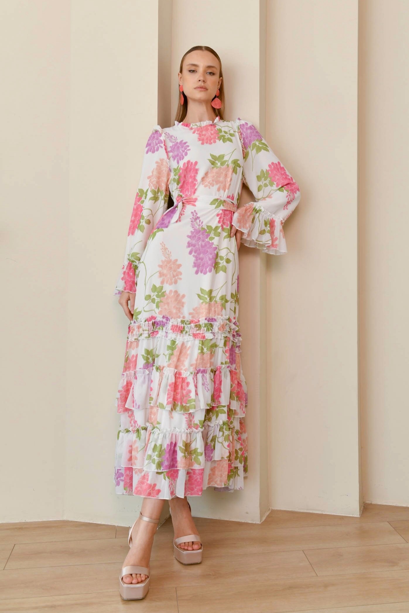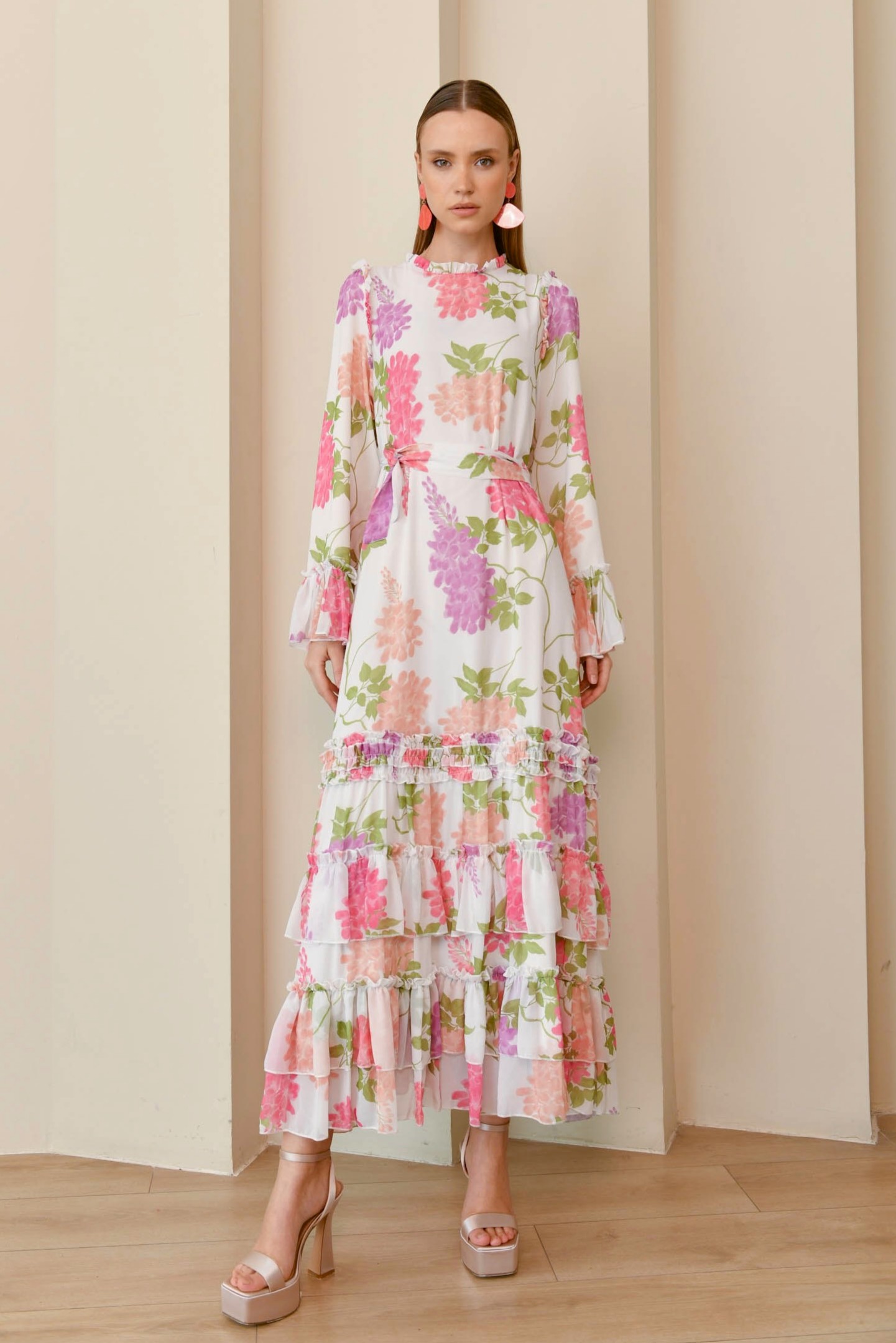 שמלה מקסי בגזרת A עדינה, לוזית, עשויה בד שיפון רך, נעים ונשפך על הגוף.