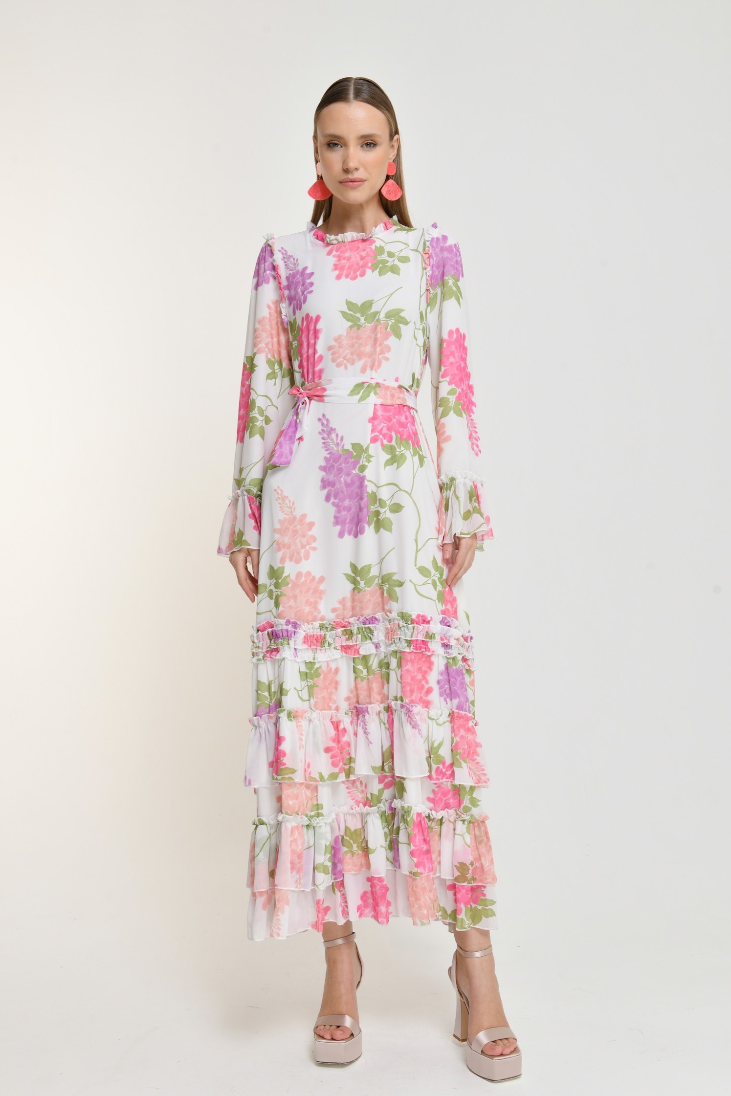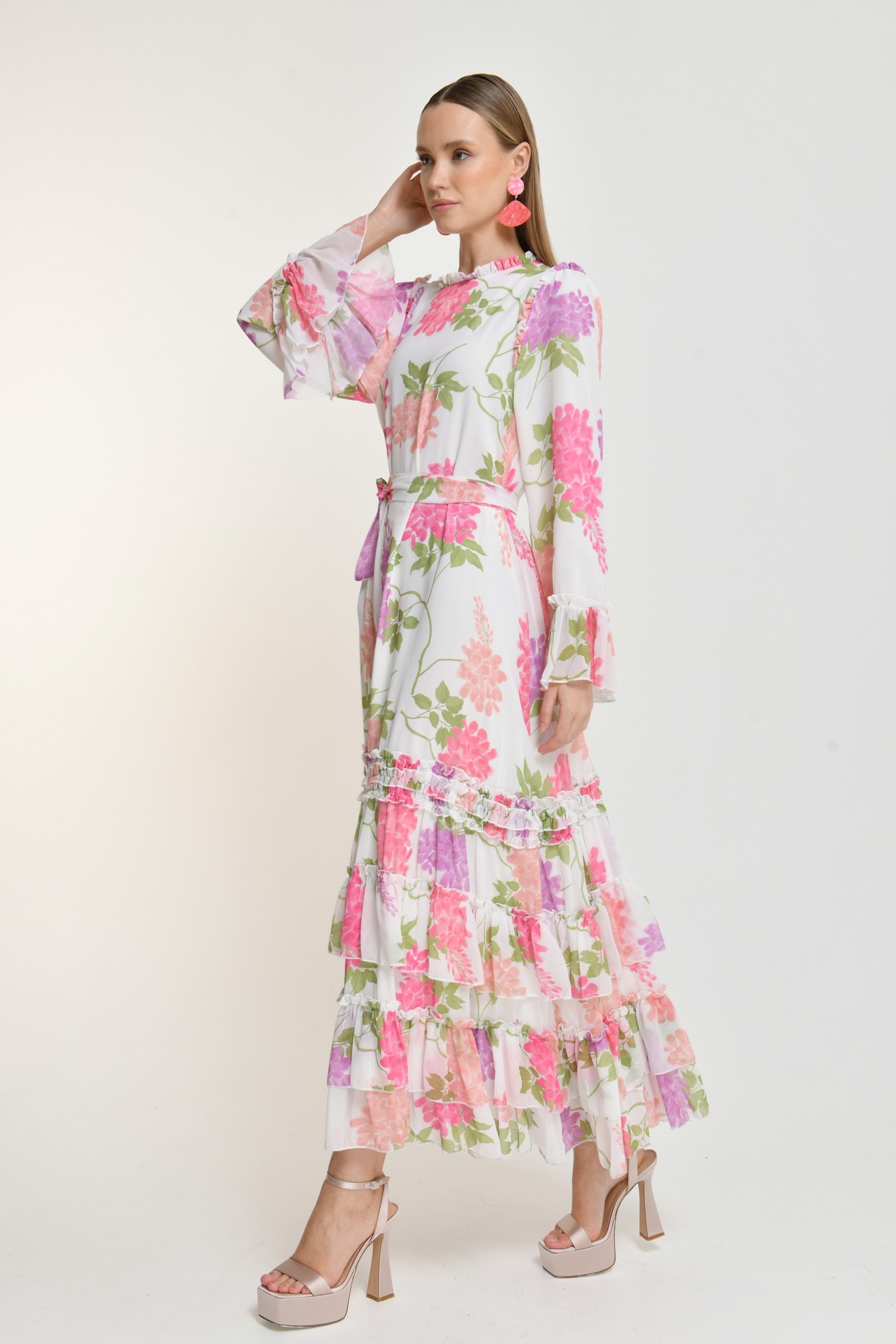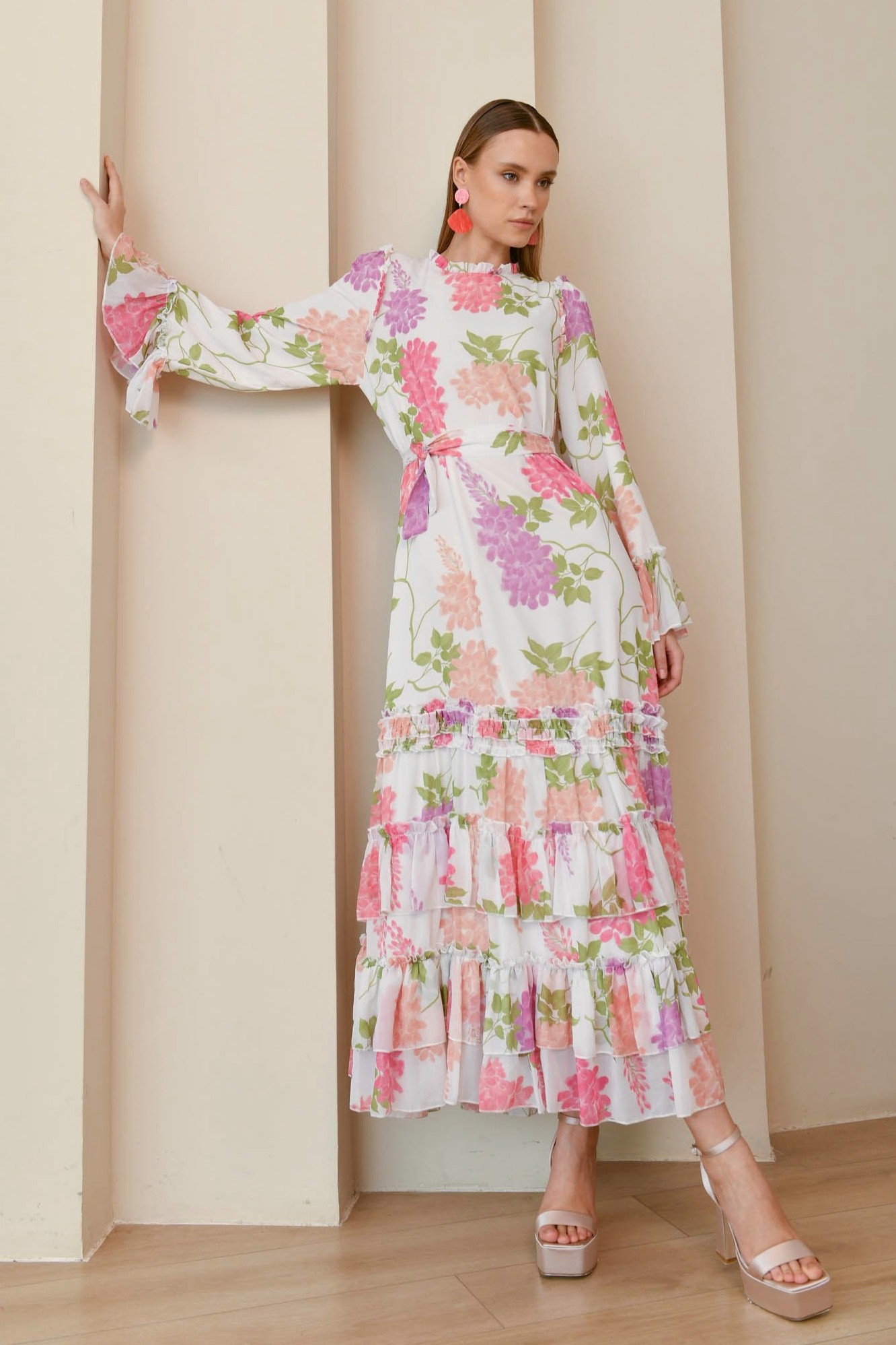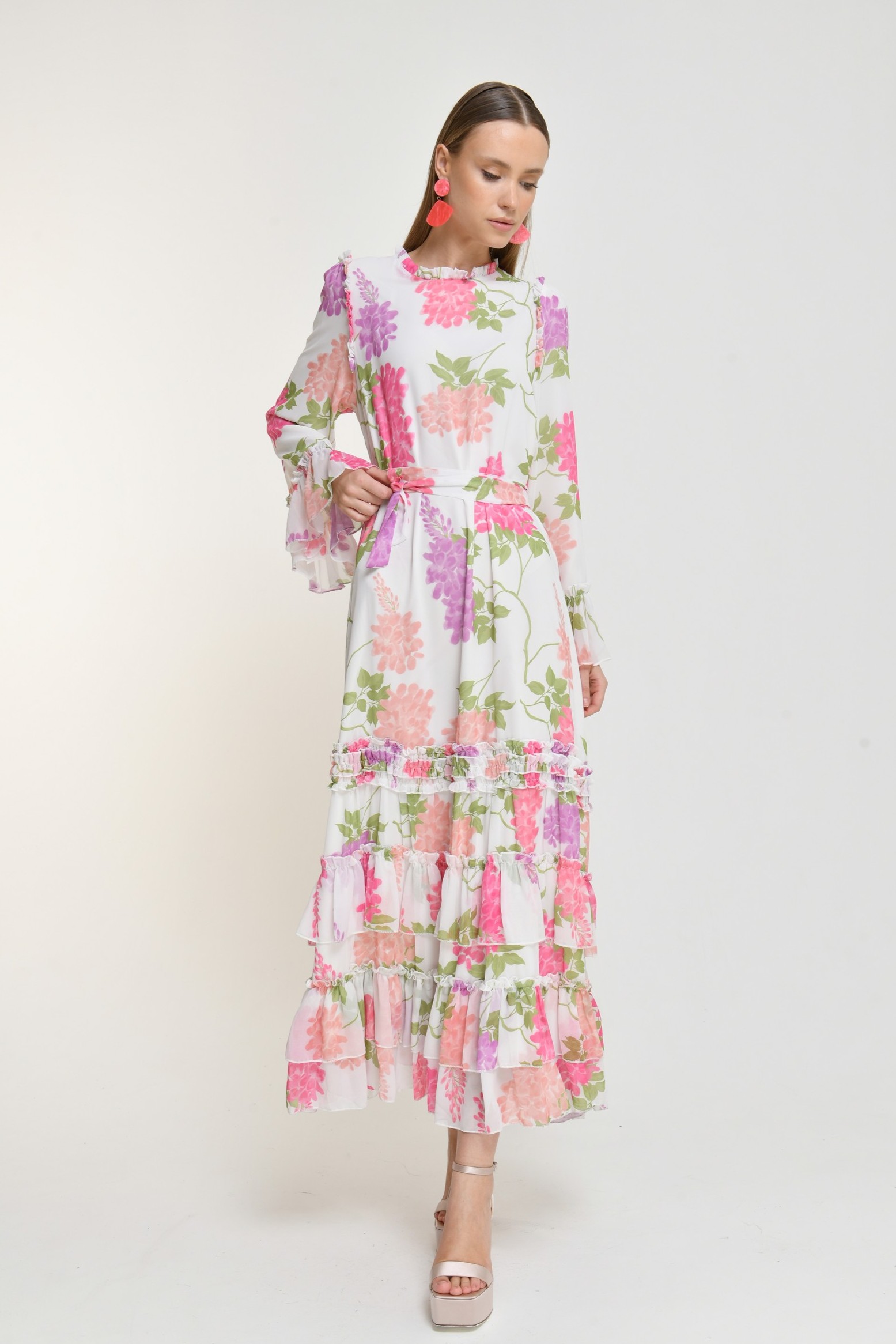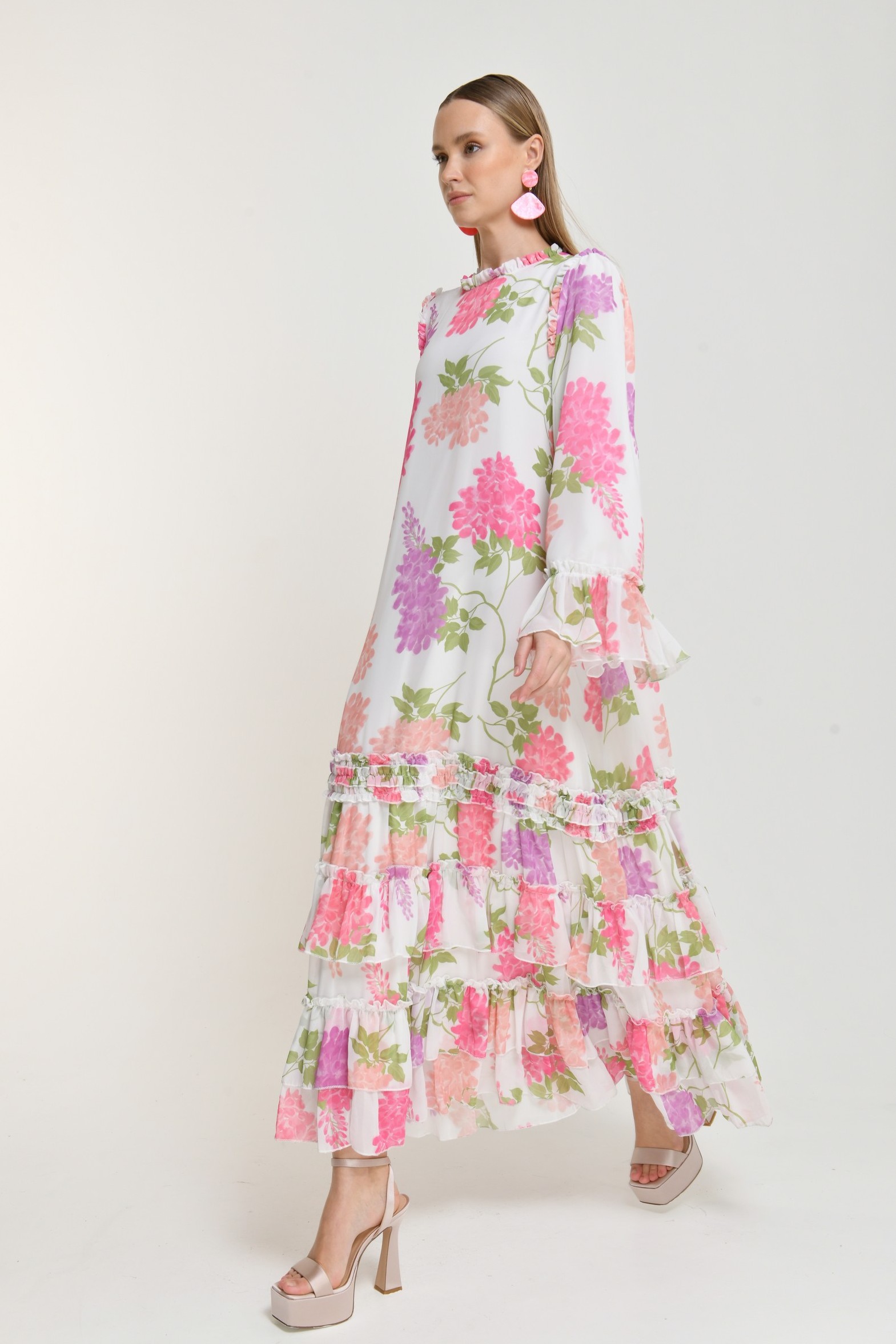 שמלה מקסי בגזרת A עדינה, לוזית, עשויה בד שיפון רך, נעים ונשפך על הגוף.