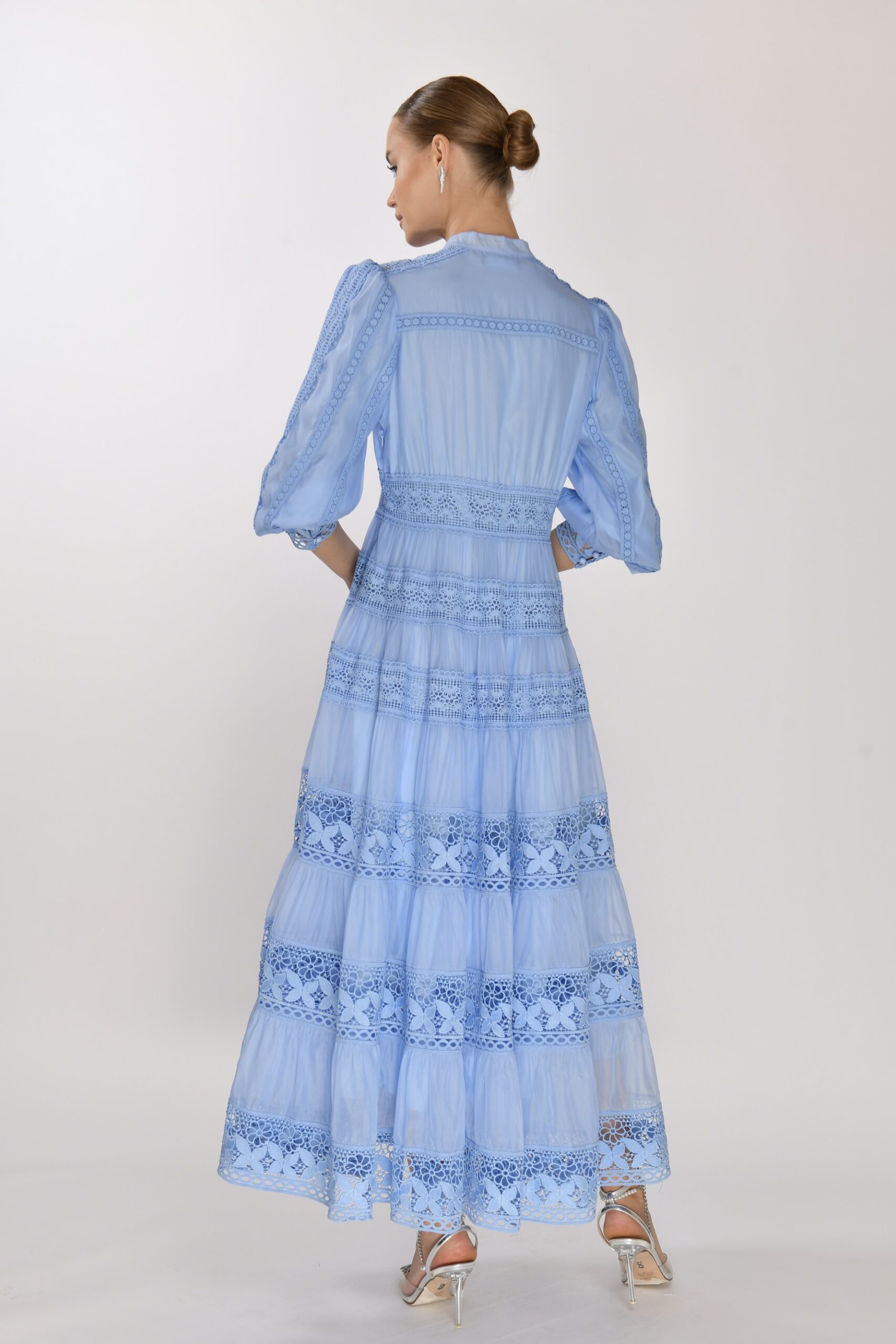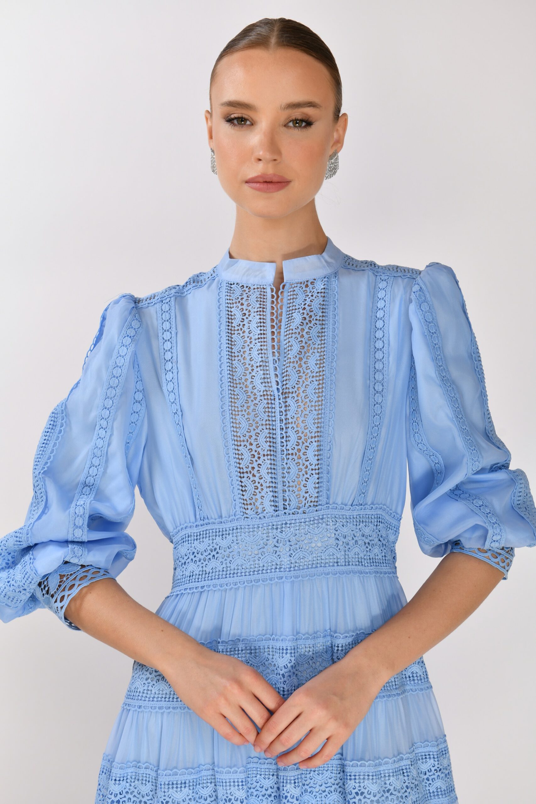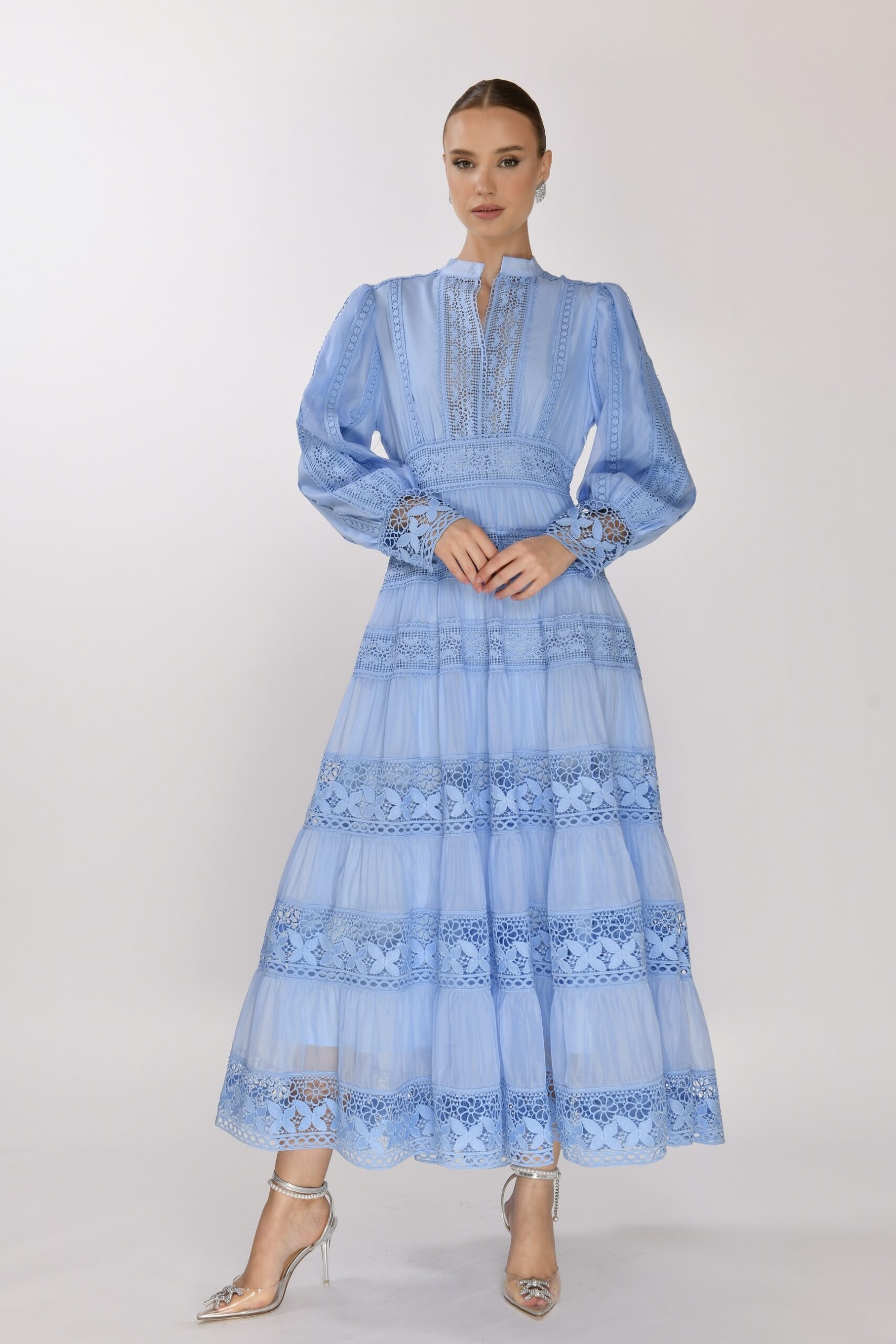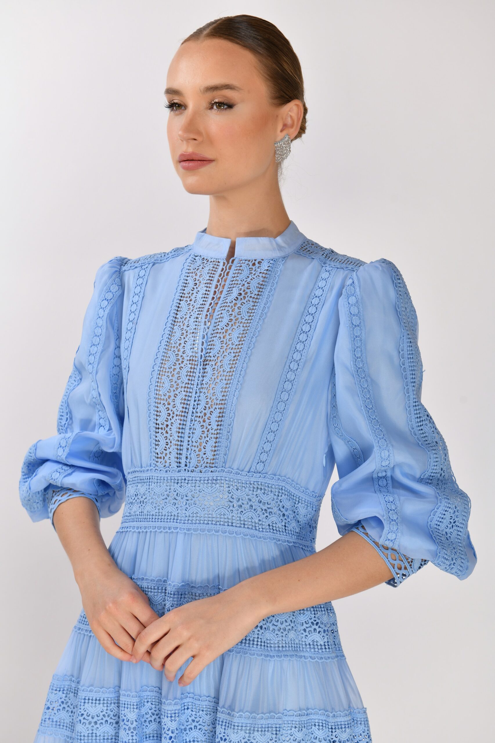 שמלה ערב מקסי שיפון שילובי תחרה תכלת 2026