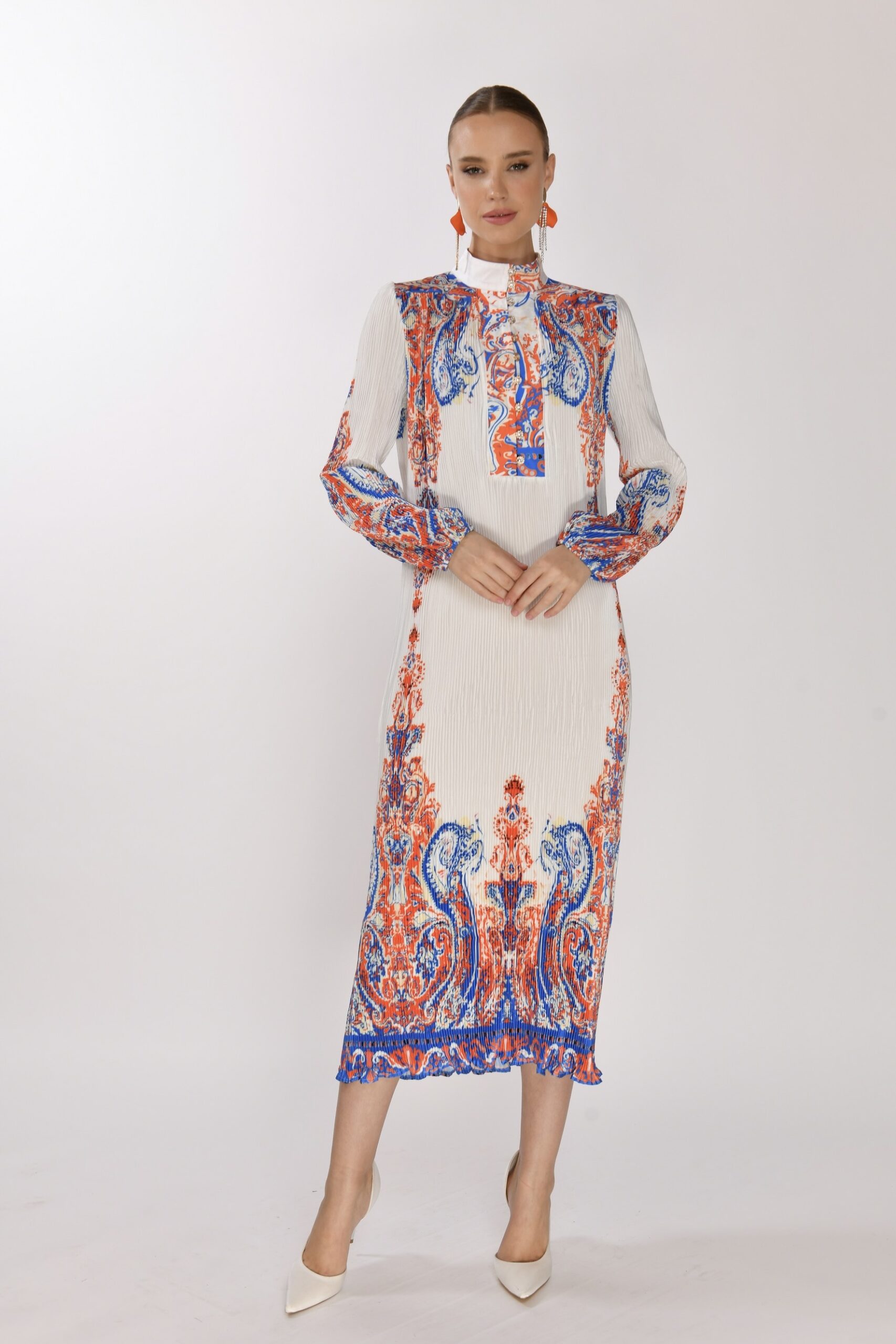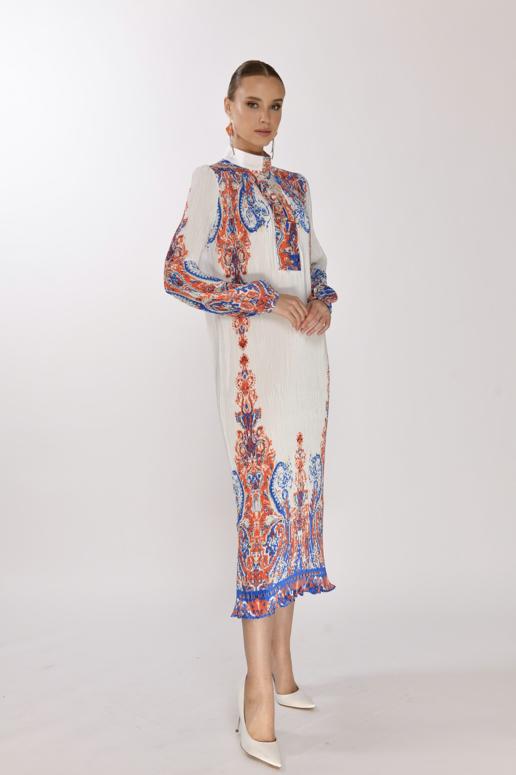 השמלה עשויה מבד פליסה סאטן נעים ואיכותי, בגזרה ישרה ומחמיאה לכל מידה.