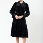 שרוולי השמלה בסיומת גומי כיווץ ומלמלה.