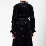 שמלת קטיפה בשילוב שזירת פרחים עדינים ובתוכם פנינים.