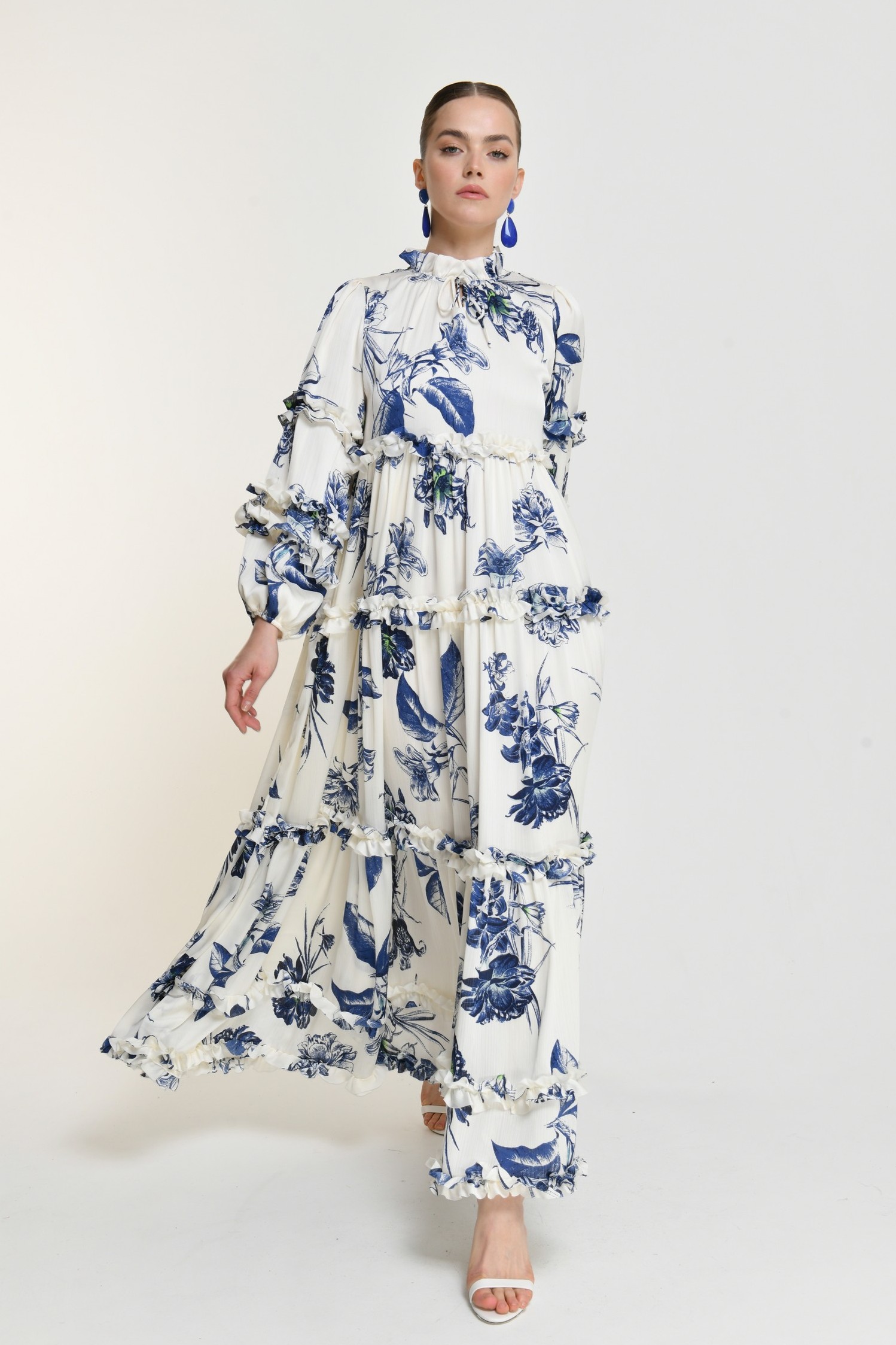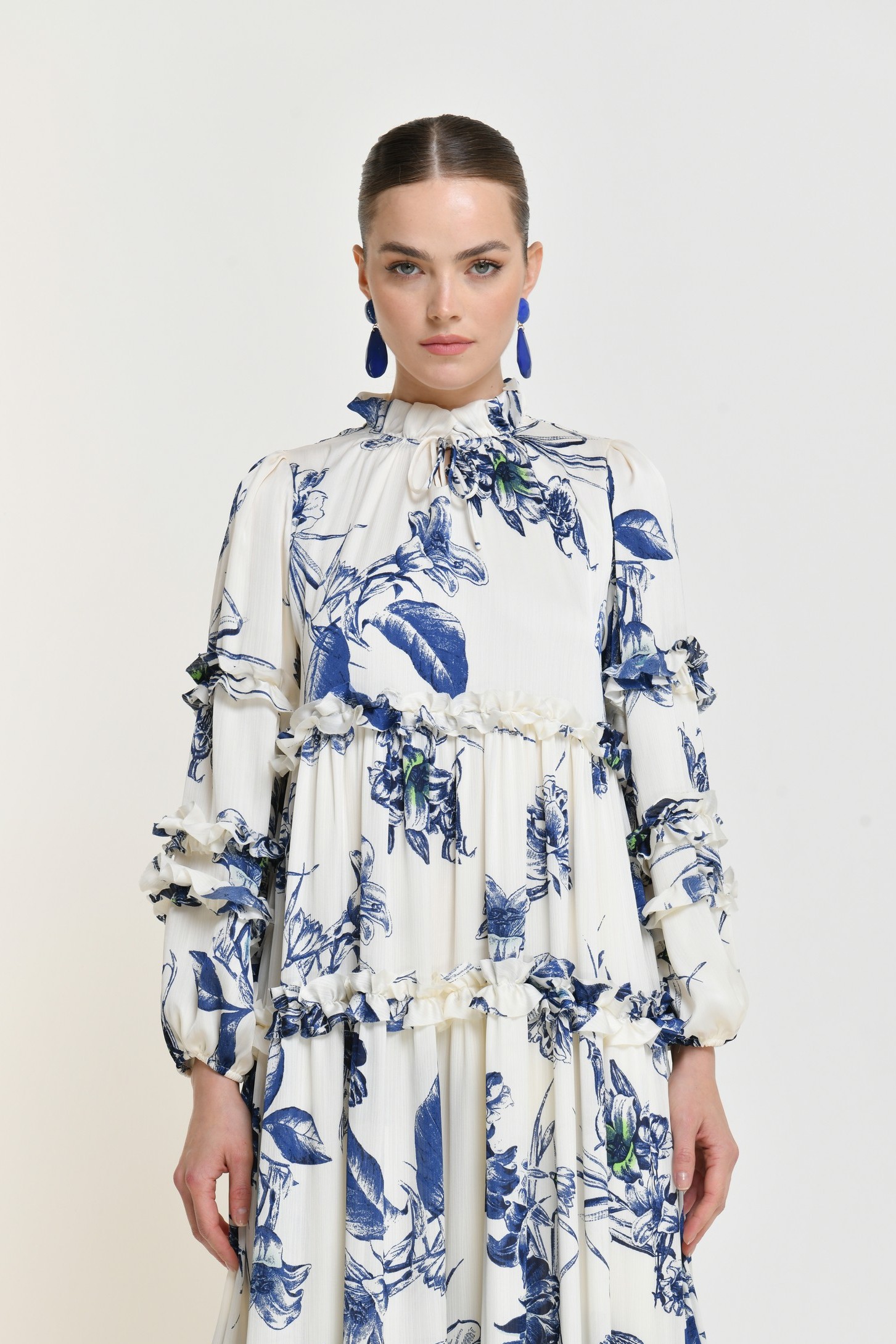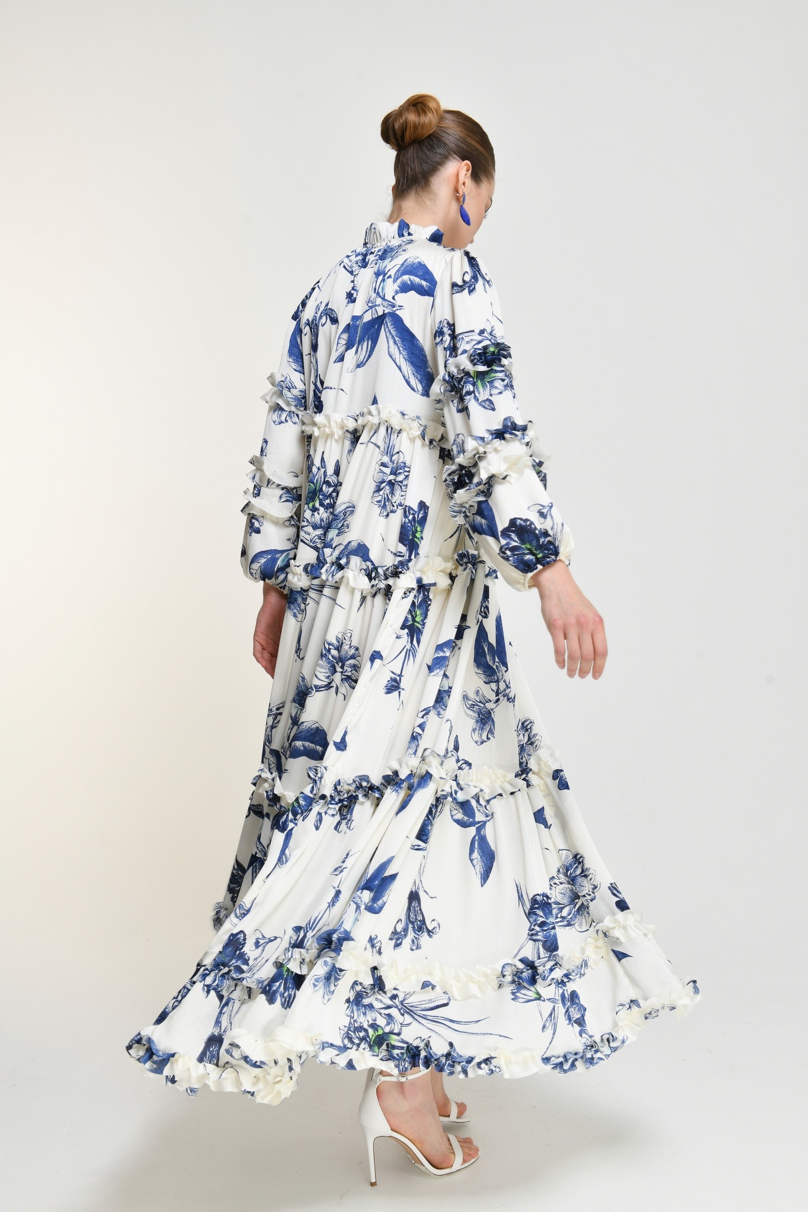 שמלה בגזרת אוברסייז רחבה בשילוב עיטורי וולן עדינים.