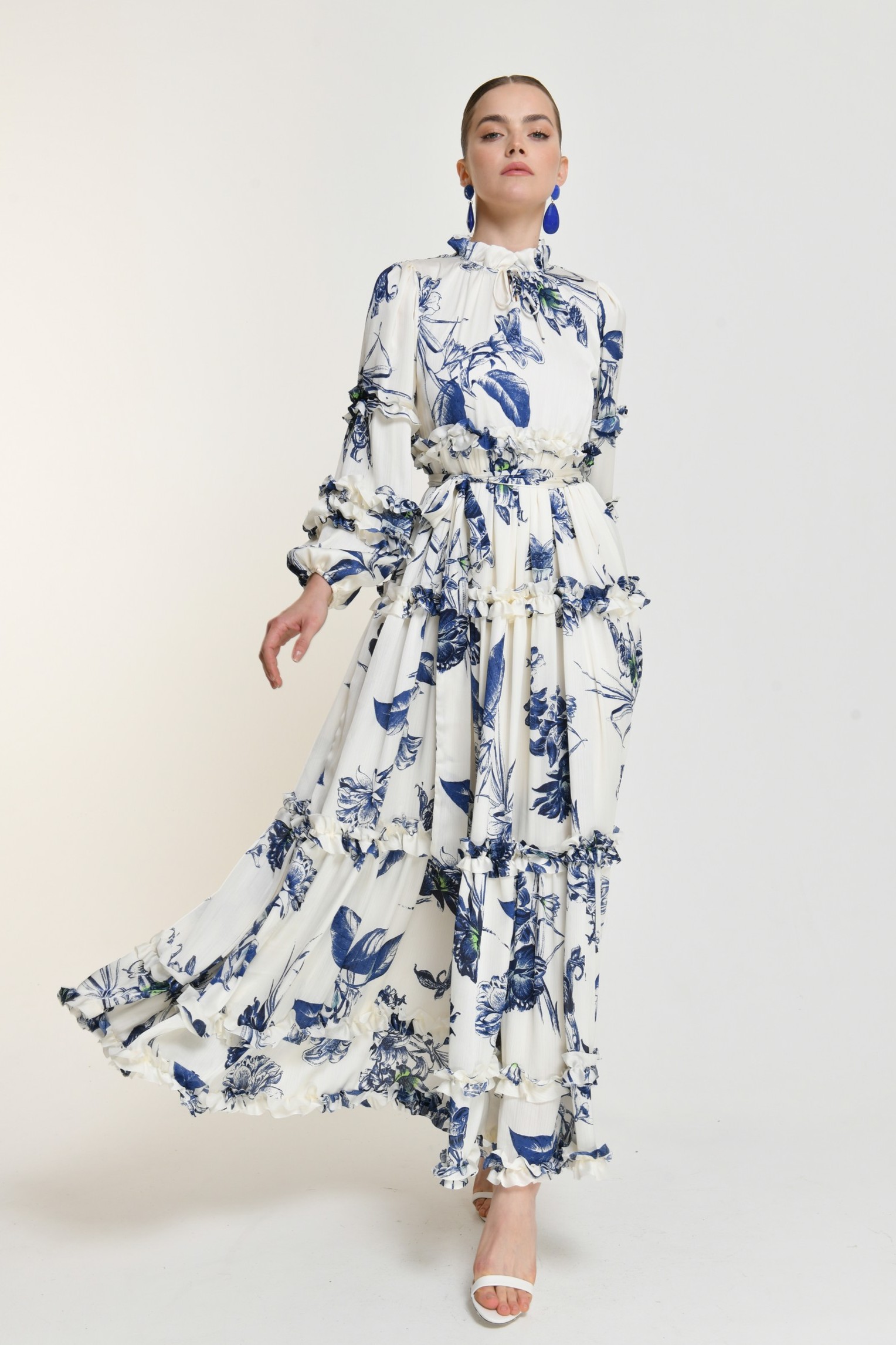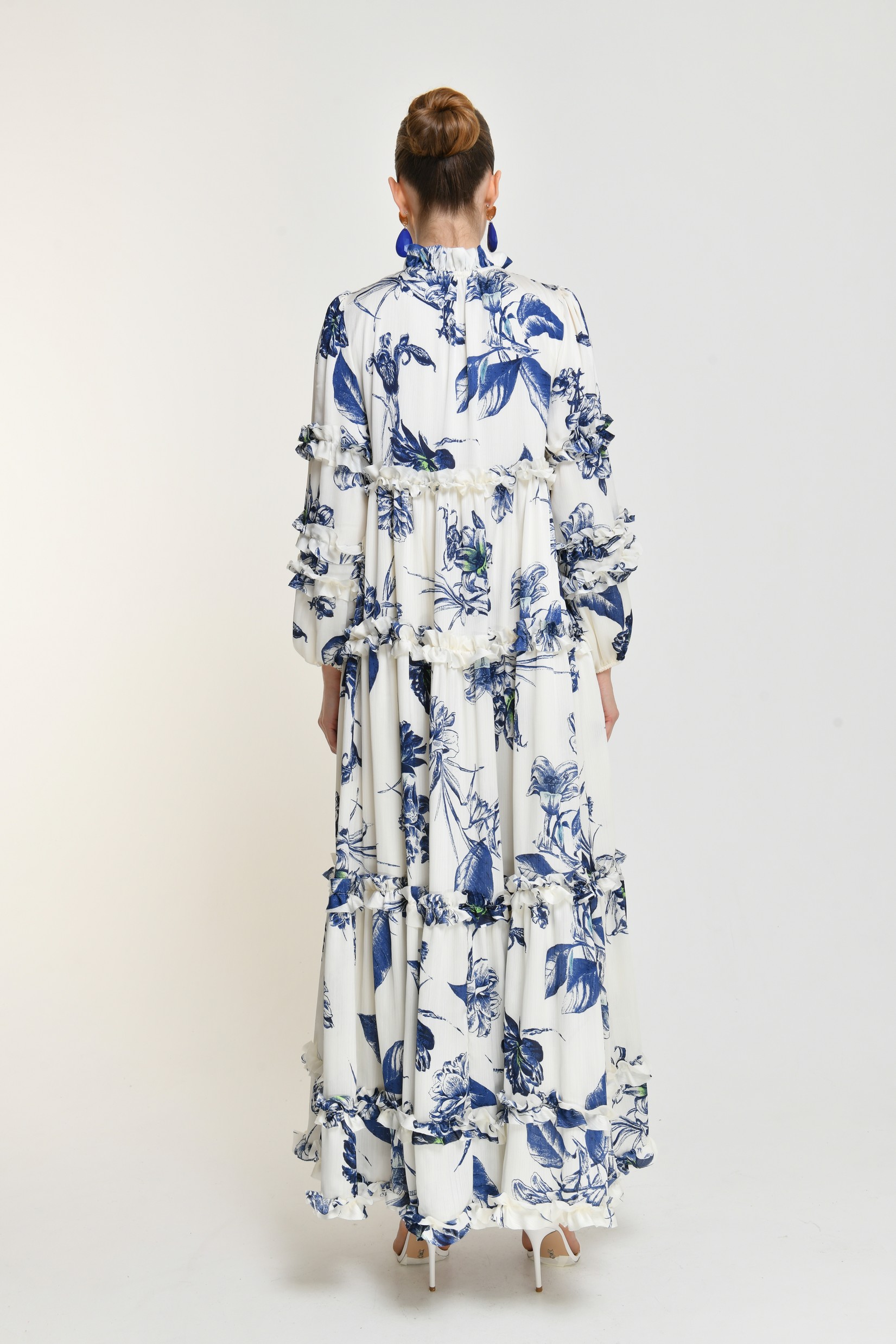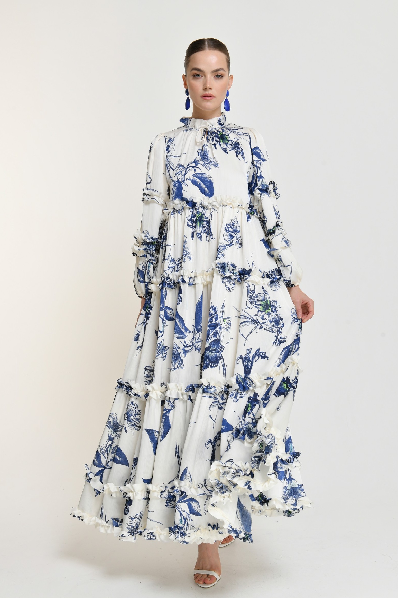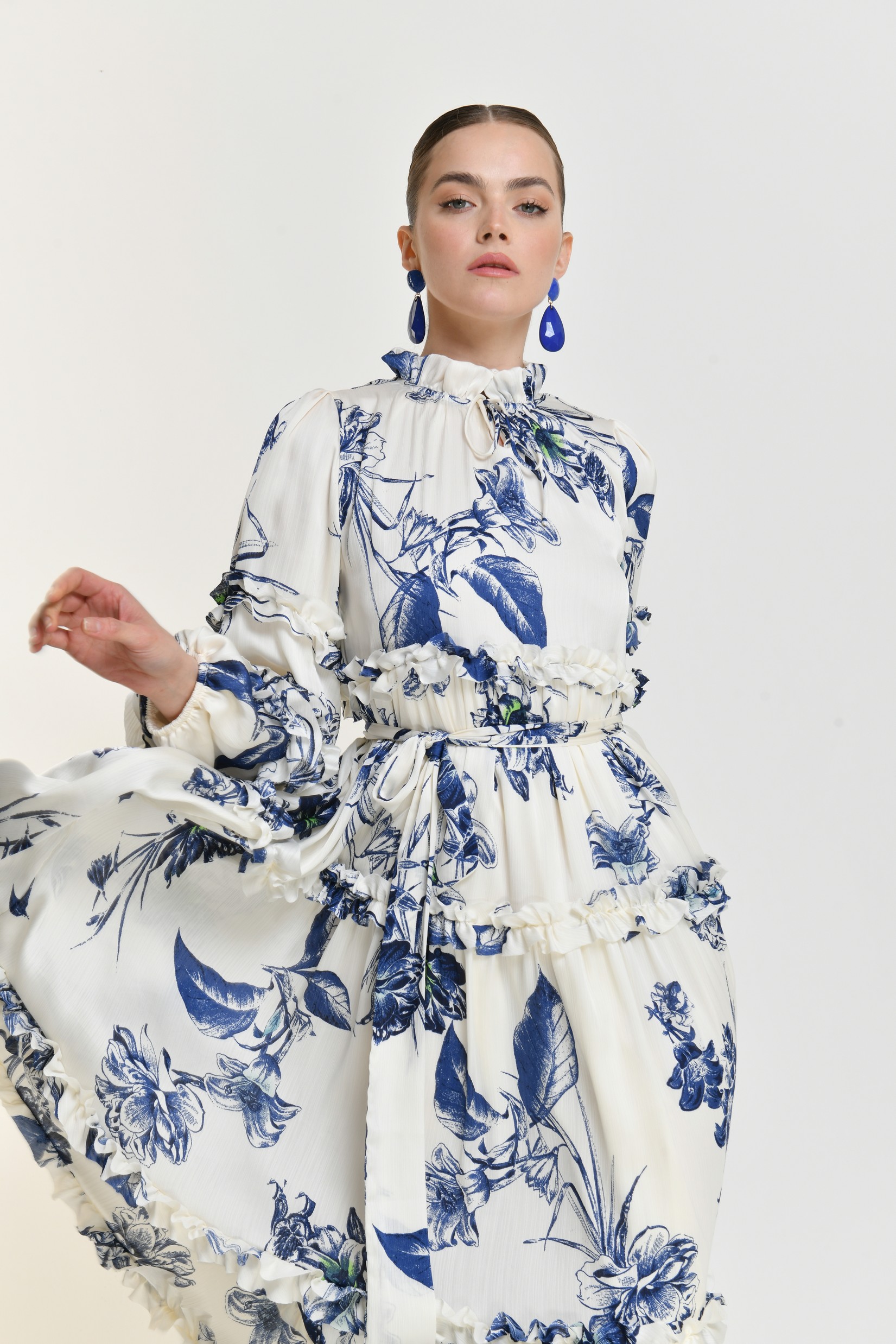 שמלה בגזרת אוברסייז רחבה בשילוב עיטורי וולן עדינים.