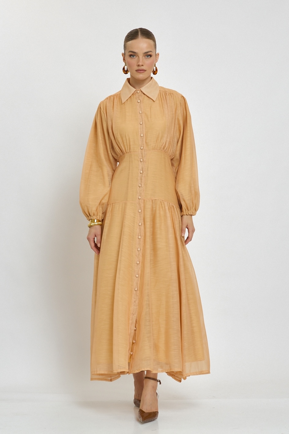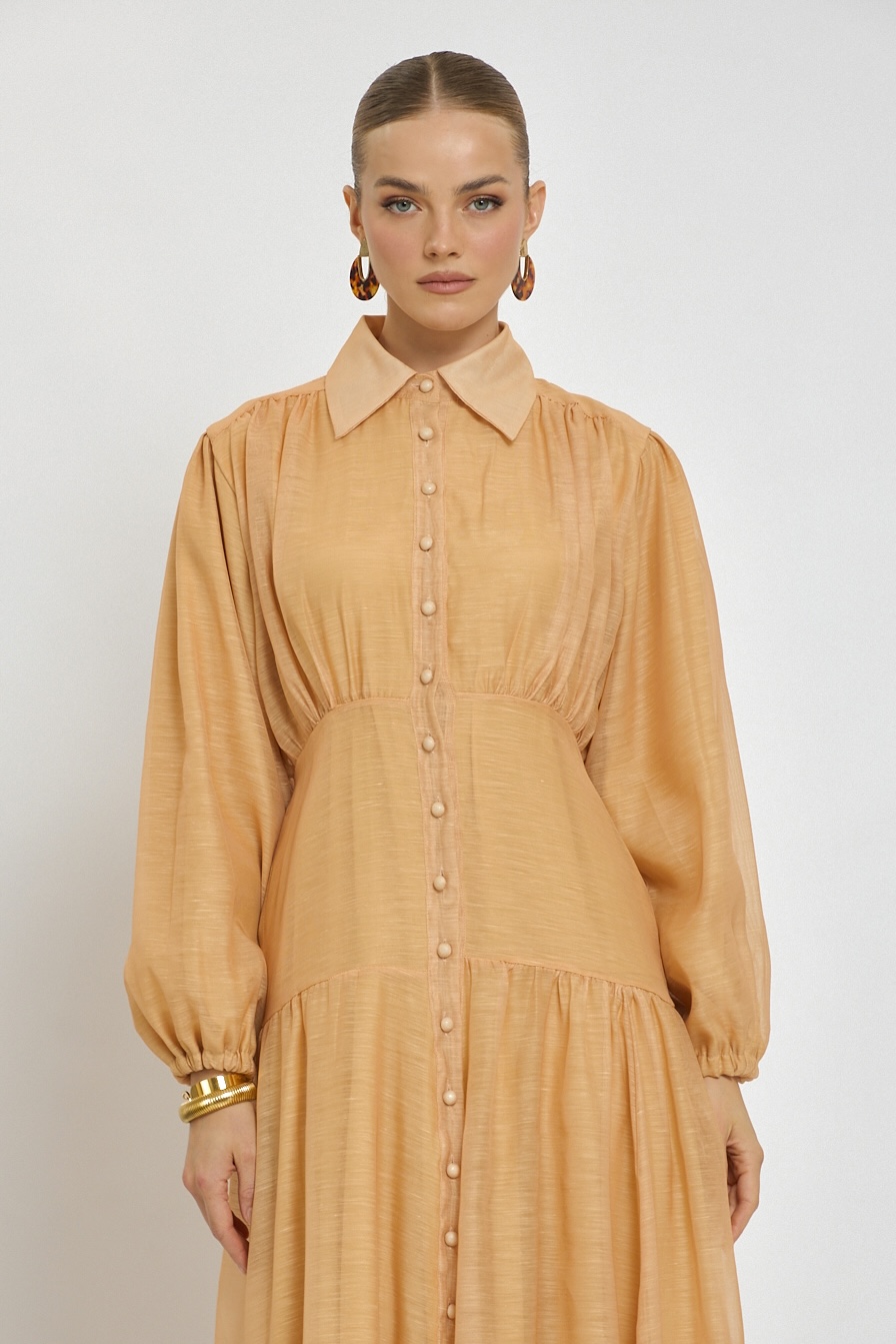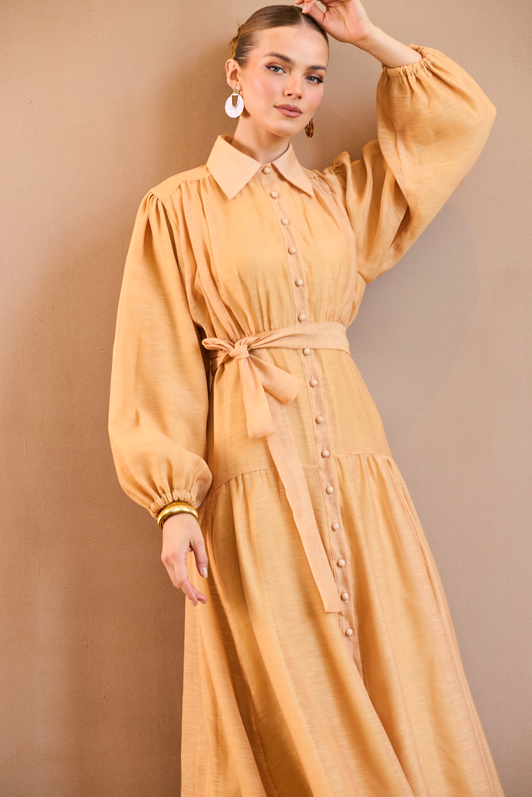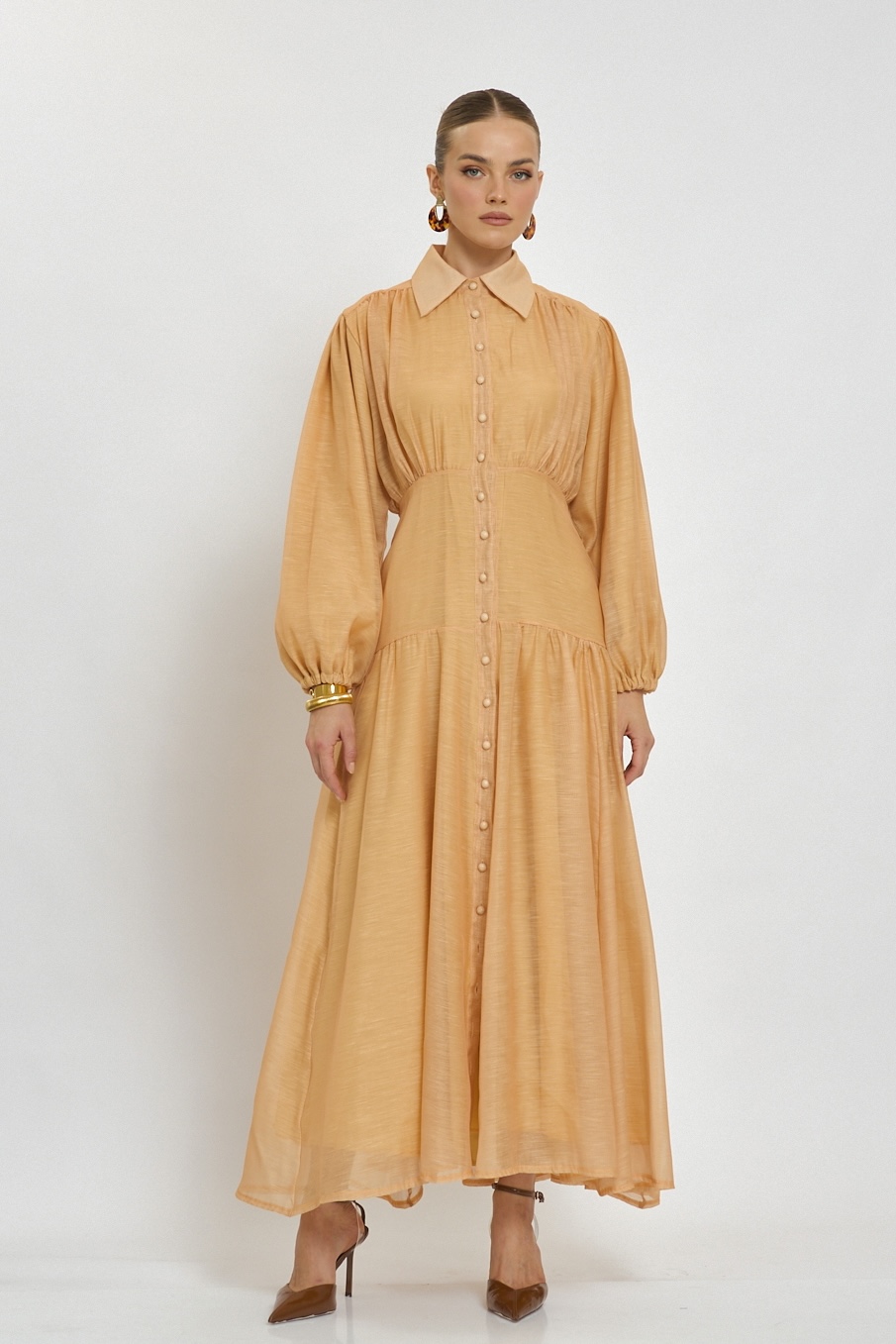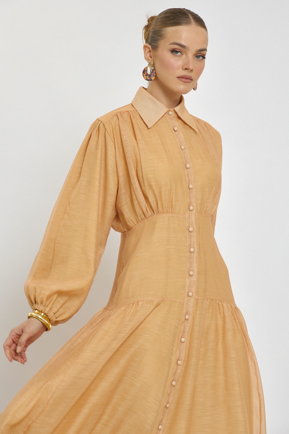 לשמלה כפתורים שנפתחים וצווארון קלאסי.