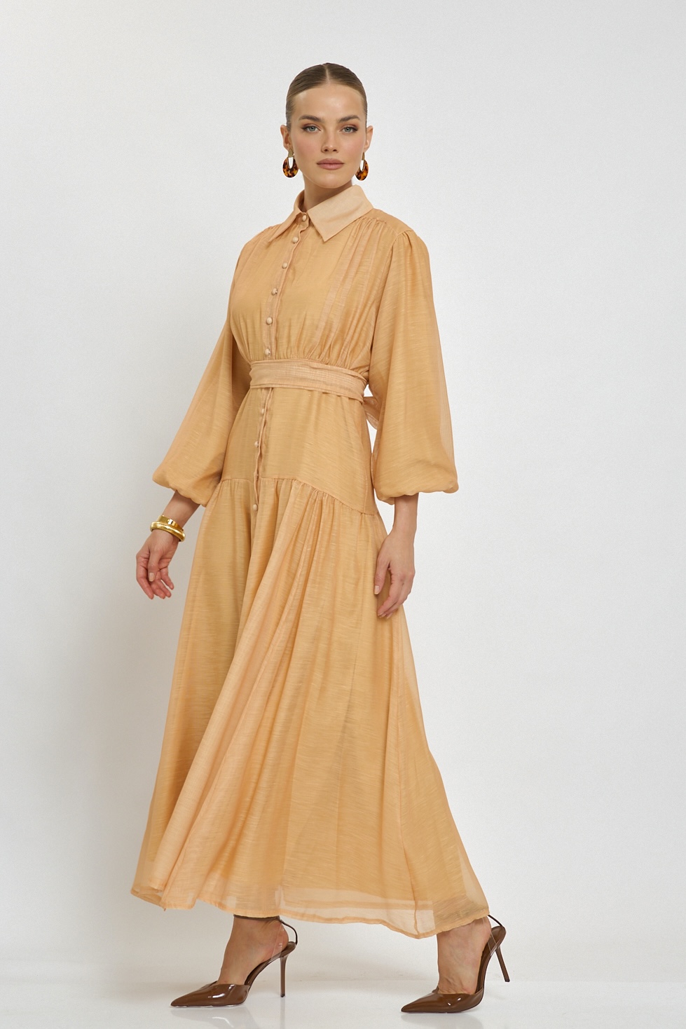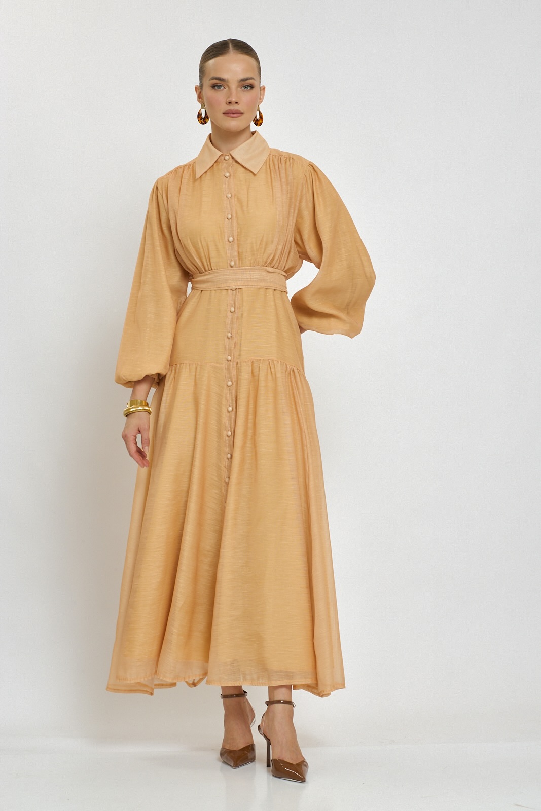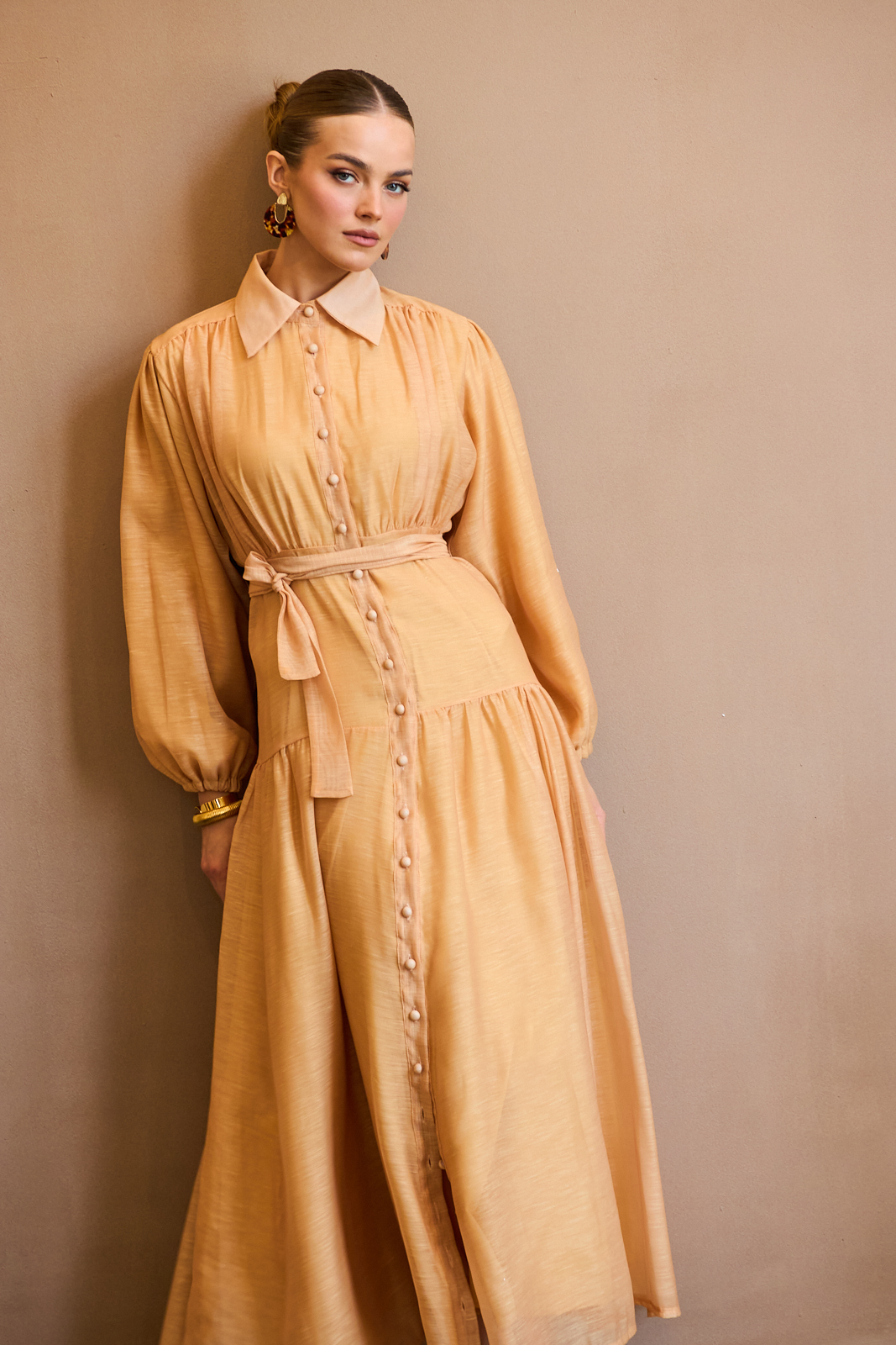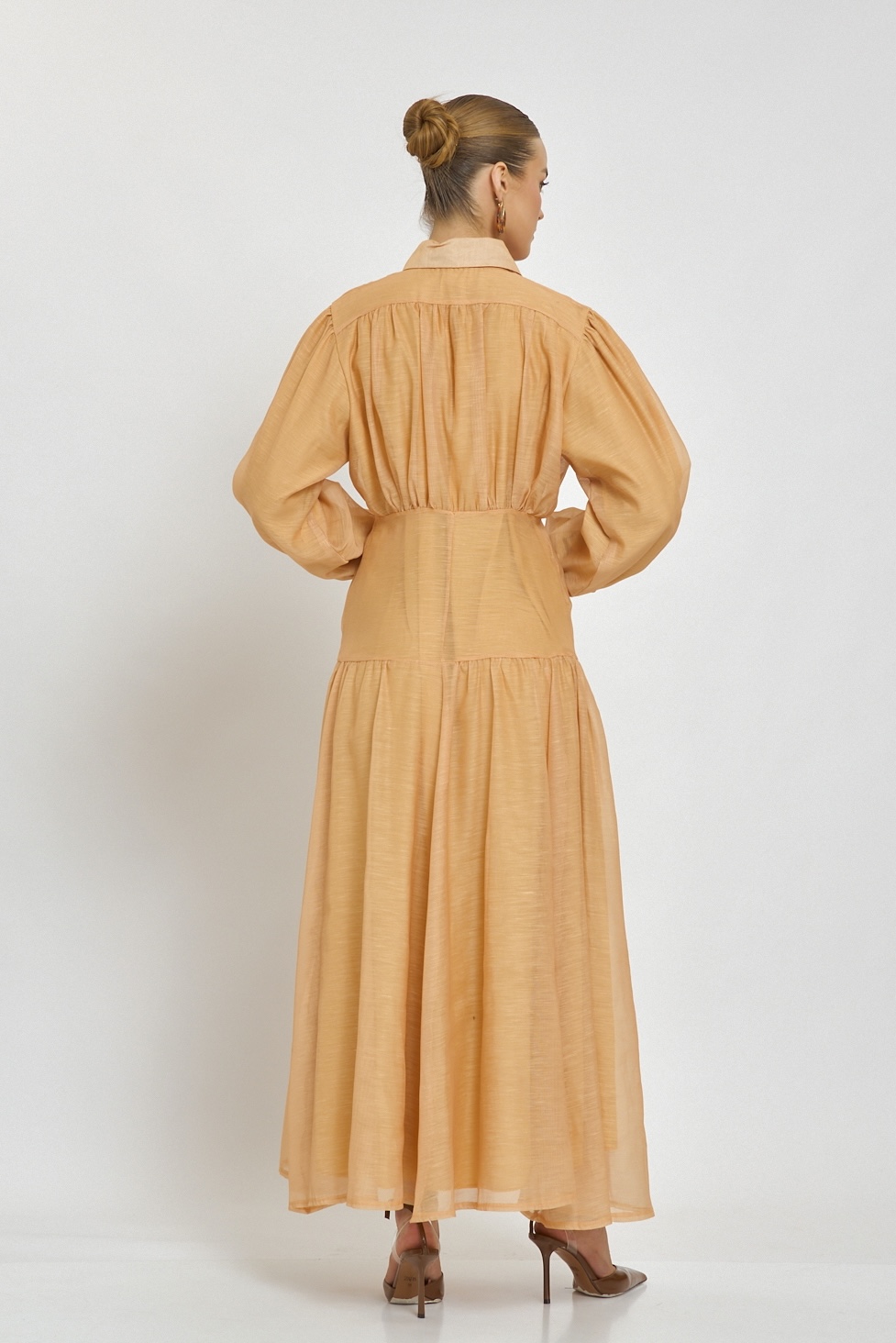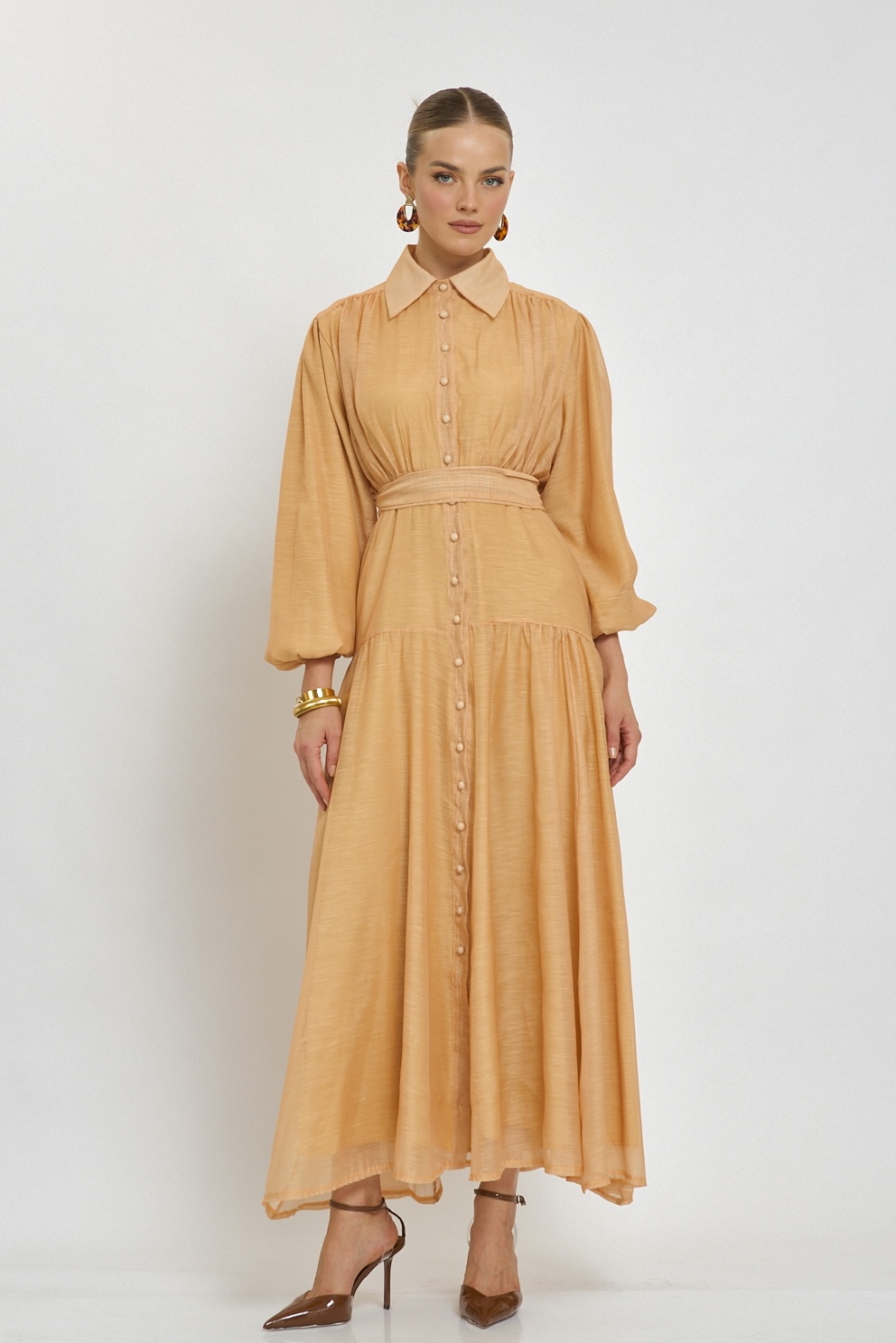 לשמלה כפתורים שנפתחים וצווארון קלאסי.