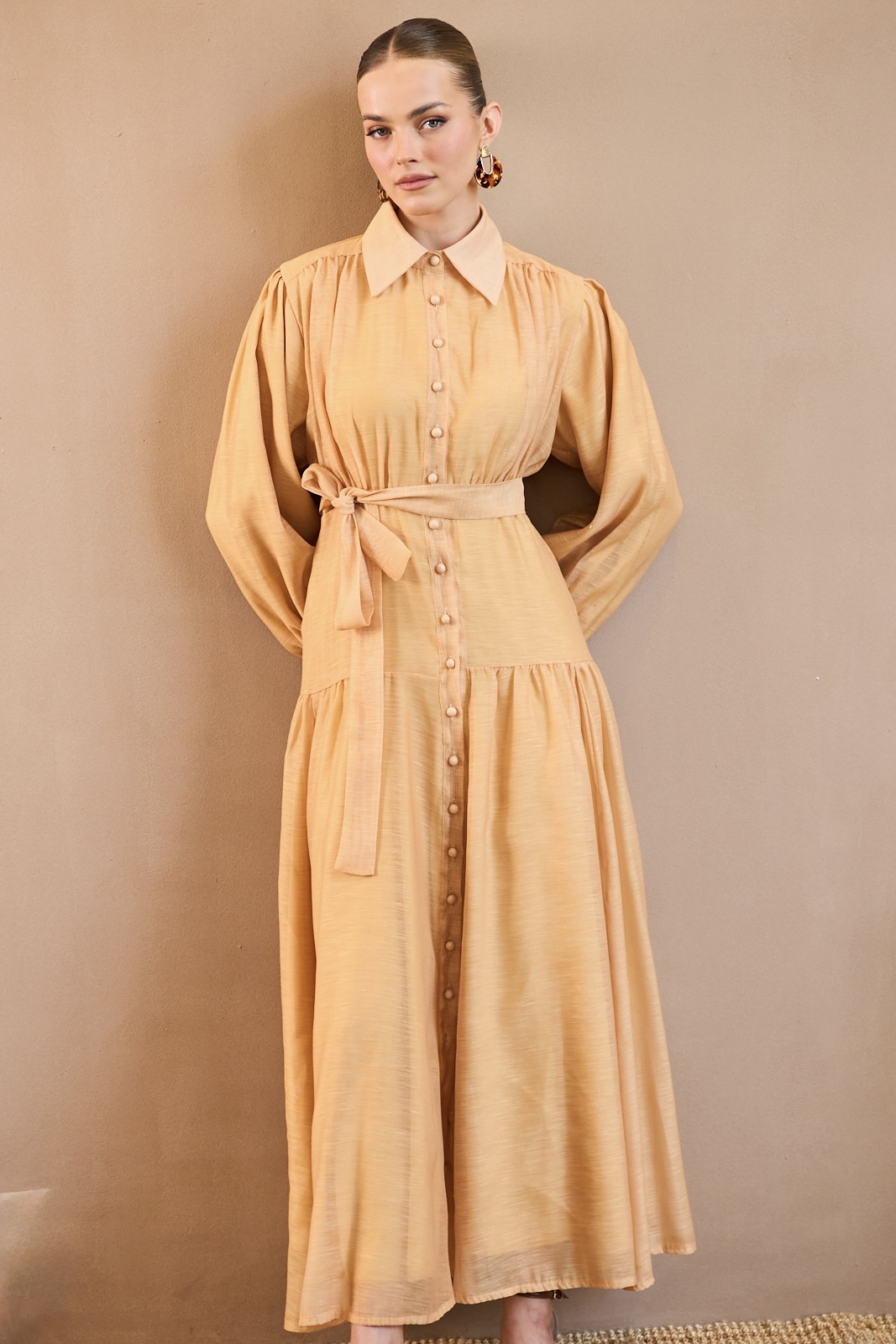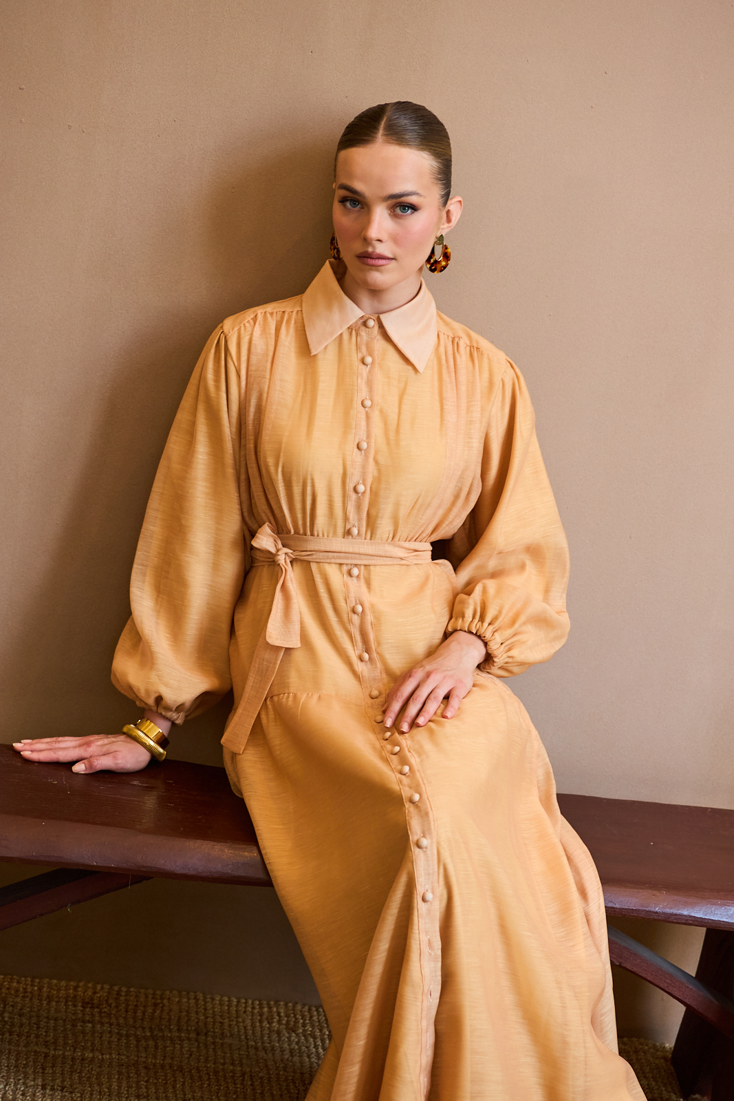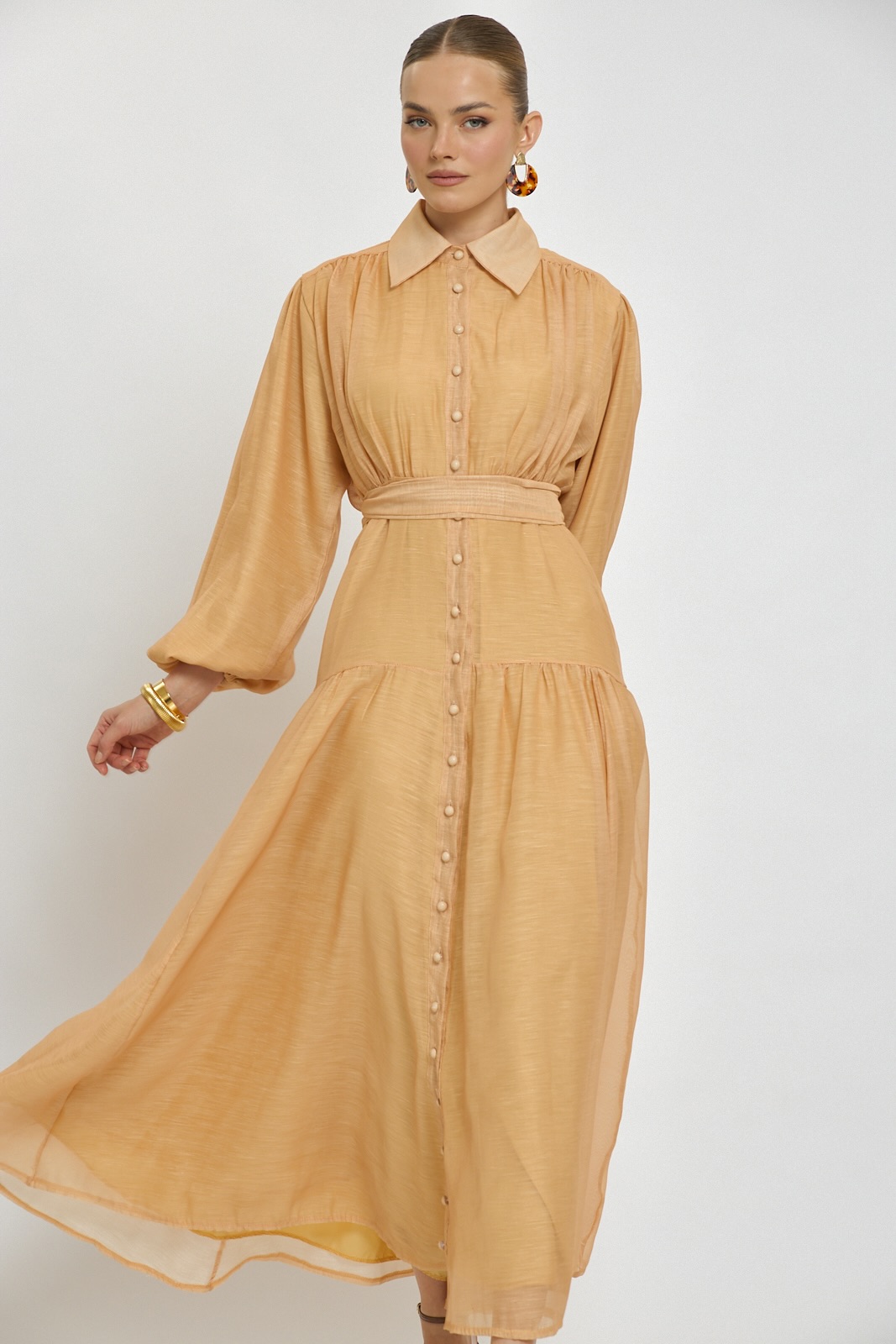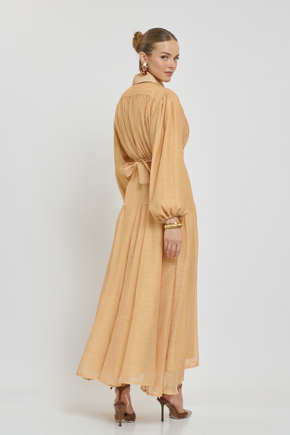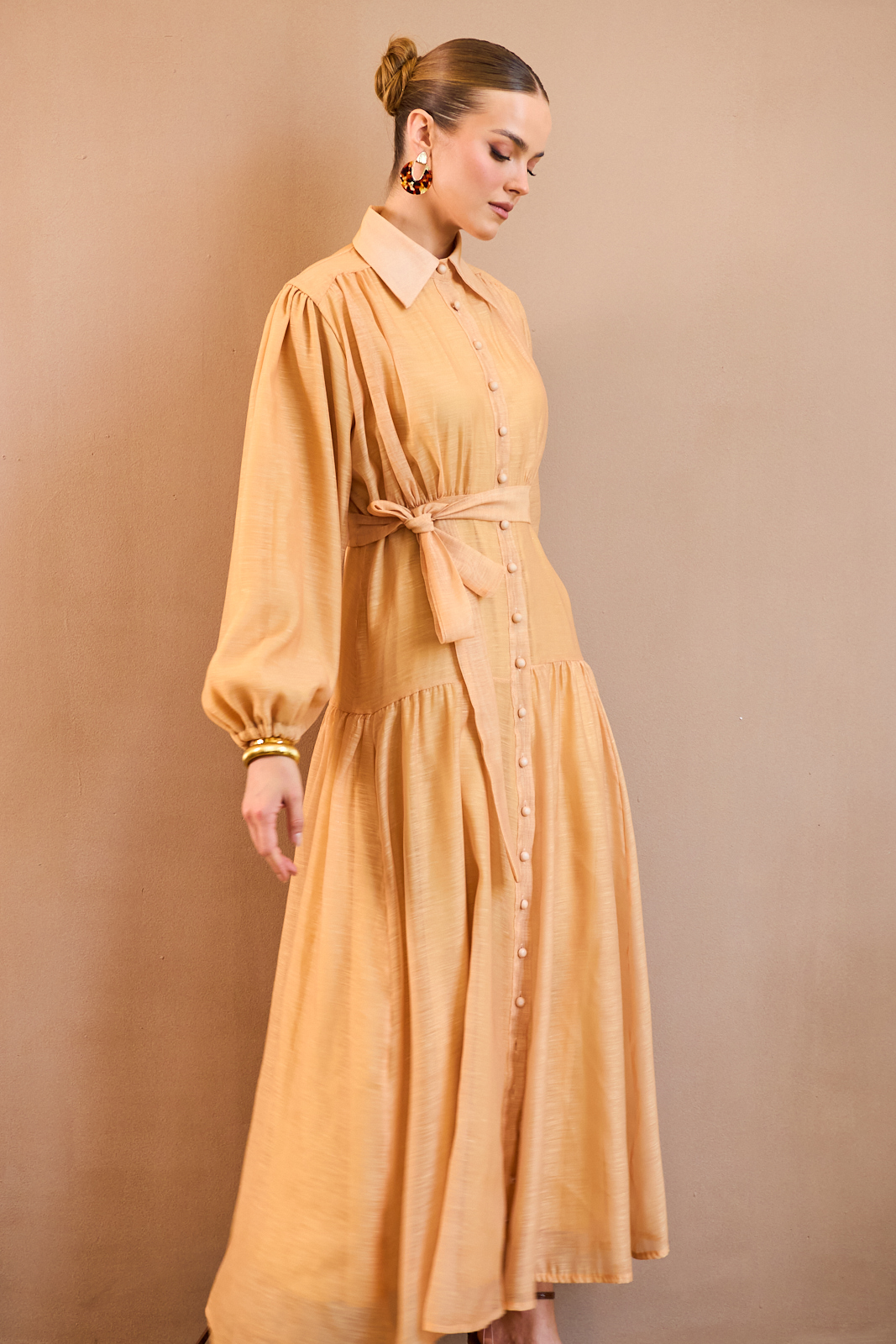 לשמלה כפתורים שנפתחים וצווארון קלאסי.