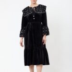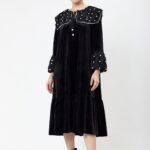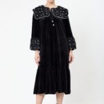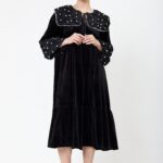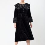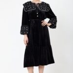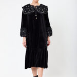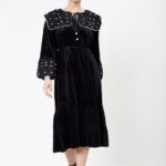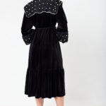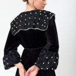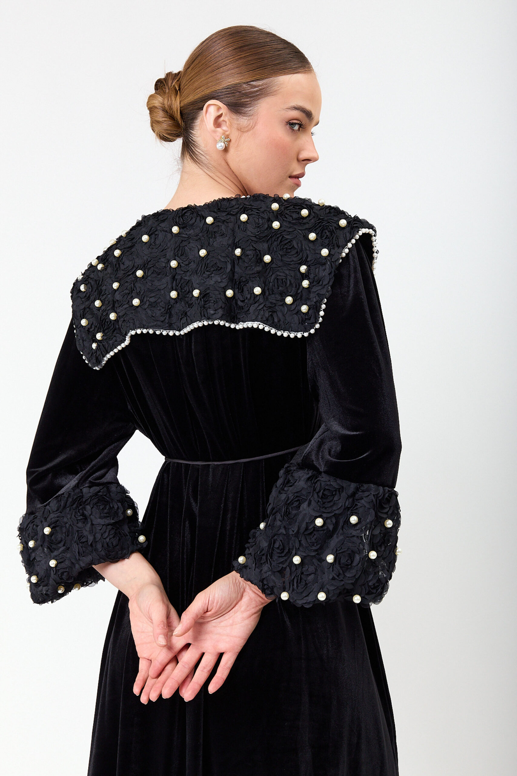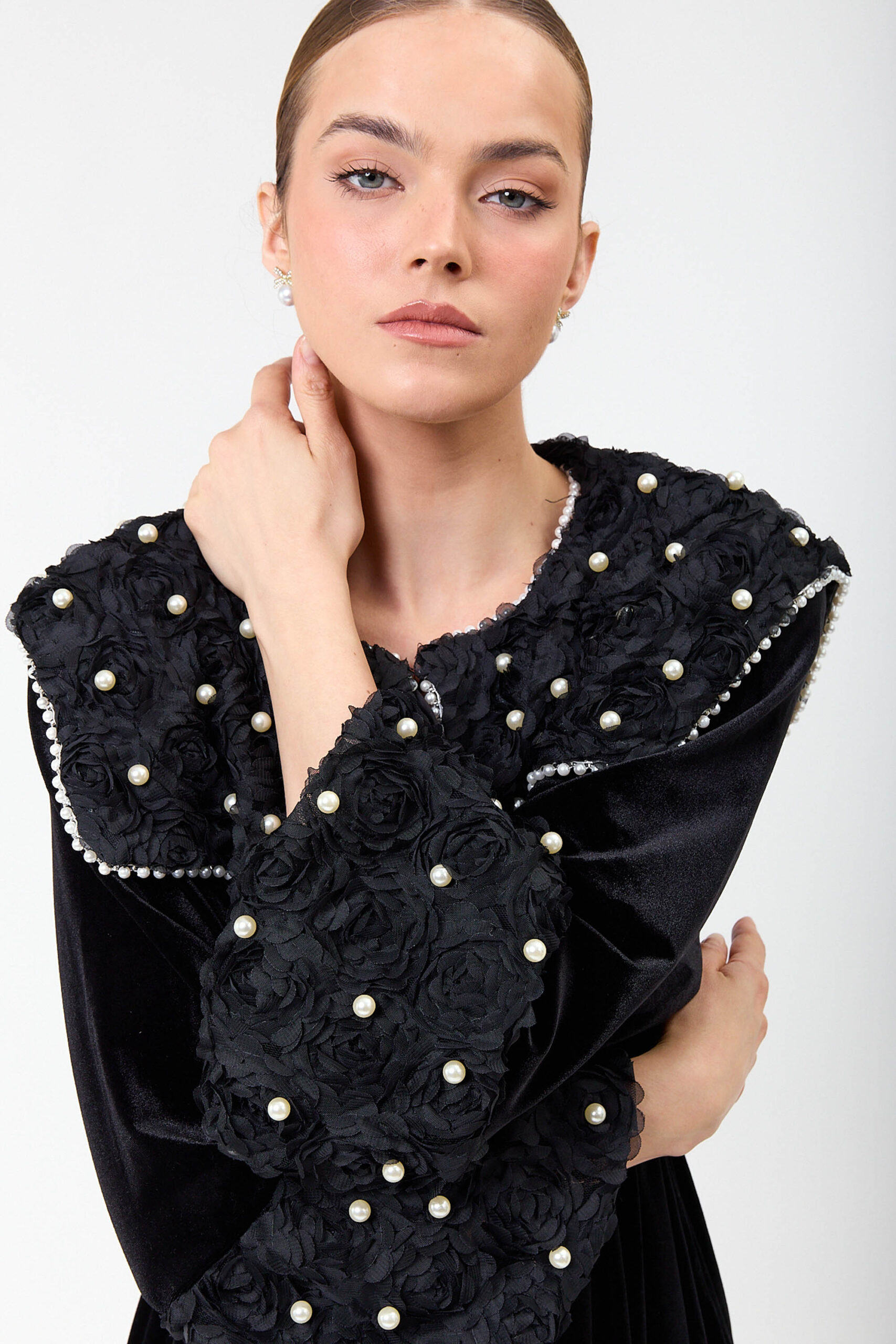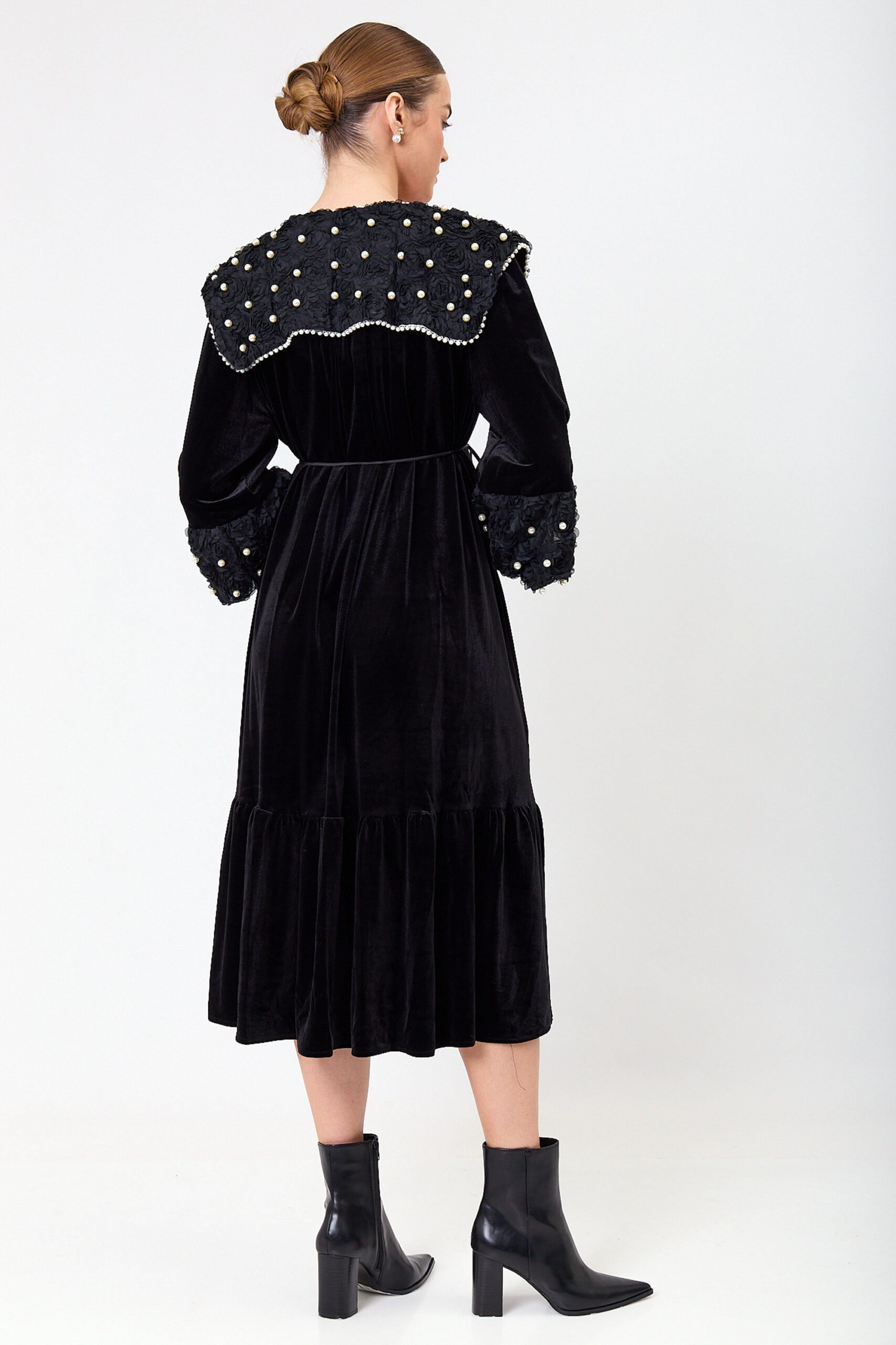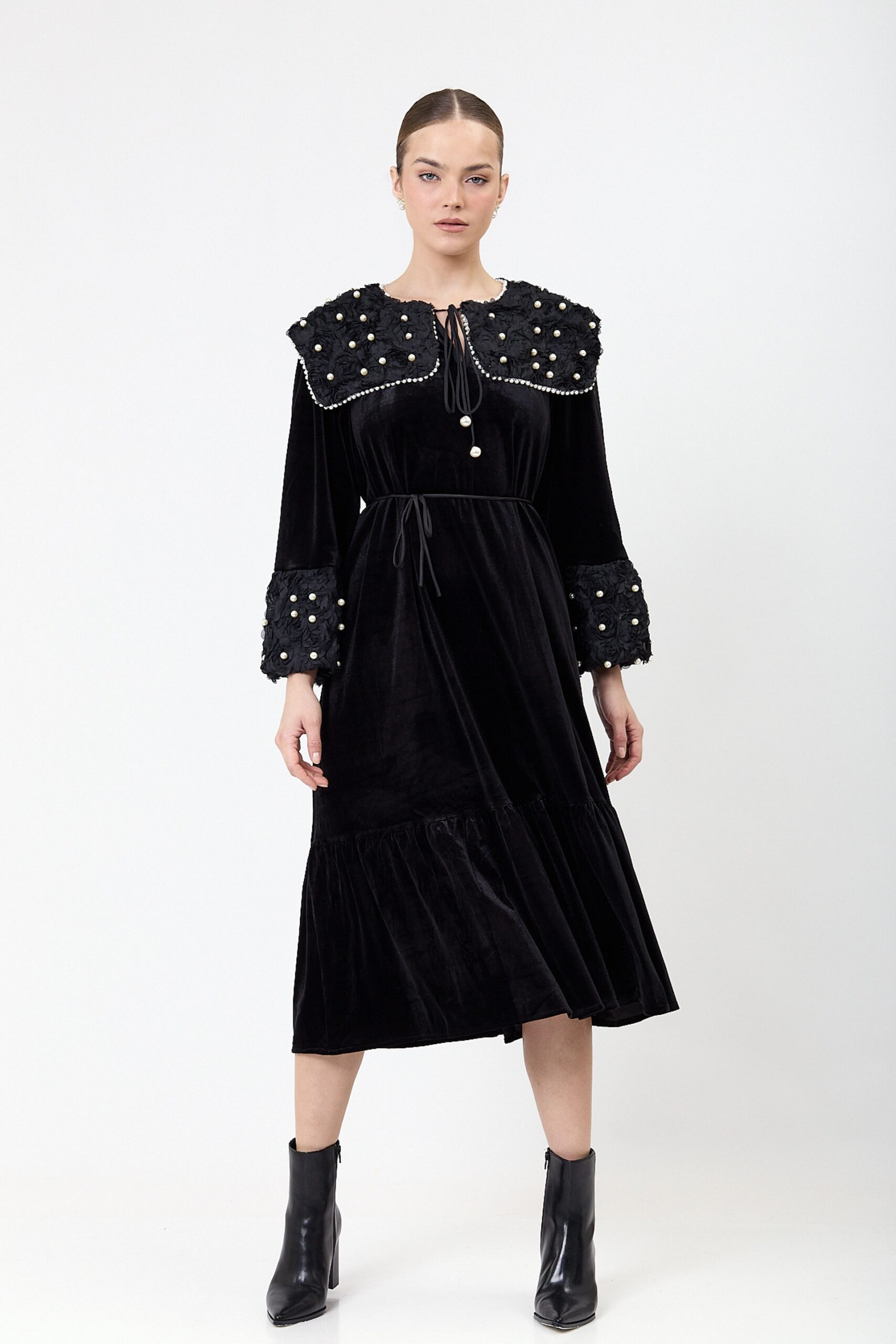 שמלת קטיפה בשילוב צווארון אלמנט פרחים ופנינים