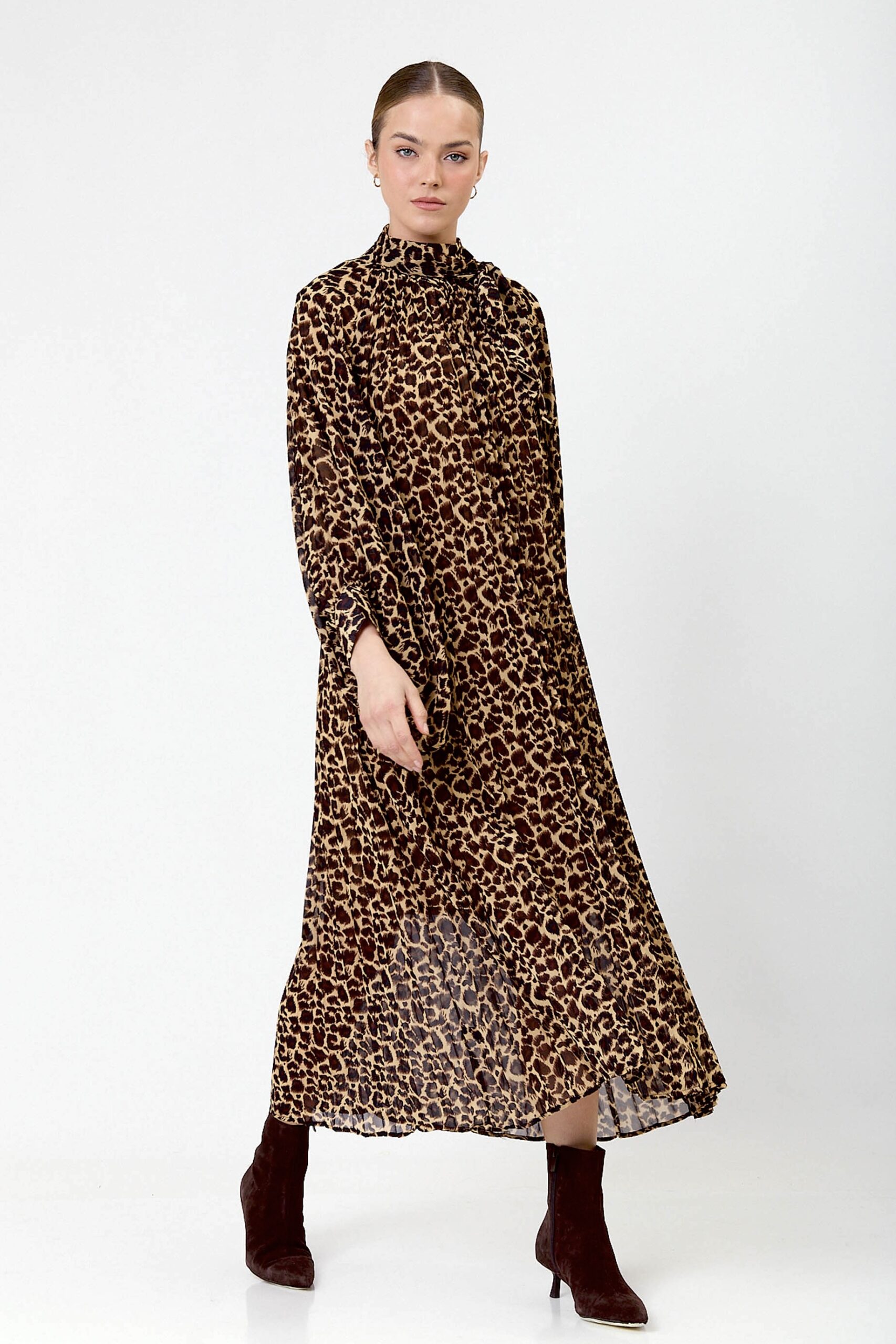 לשמלה צווארון קשירה המוסיף לשמלה אצילות ואלגנטיות.