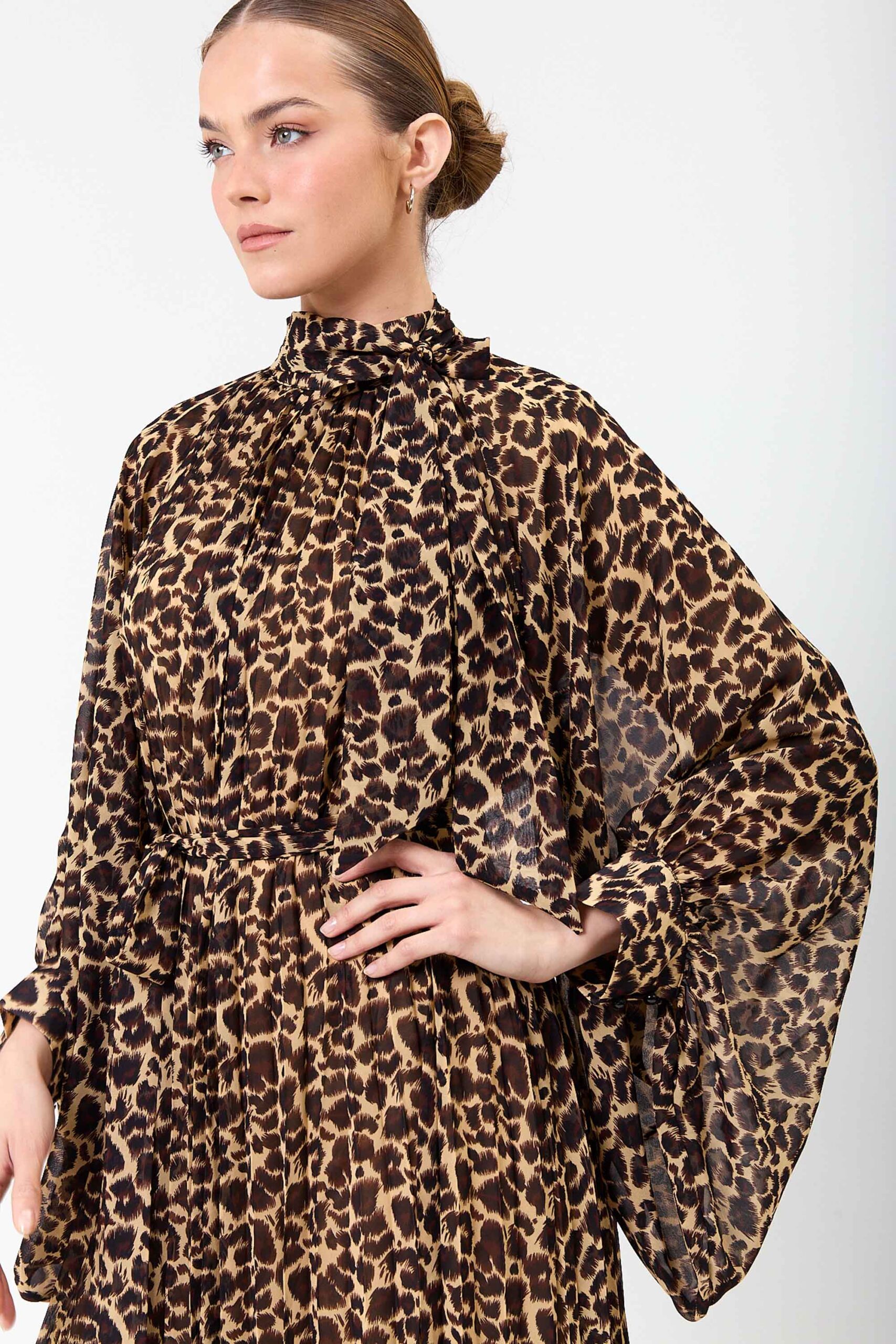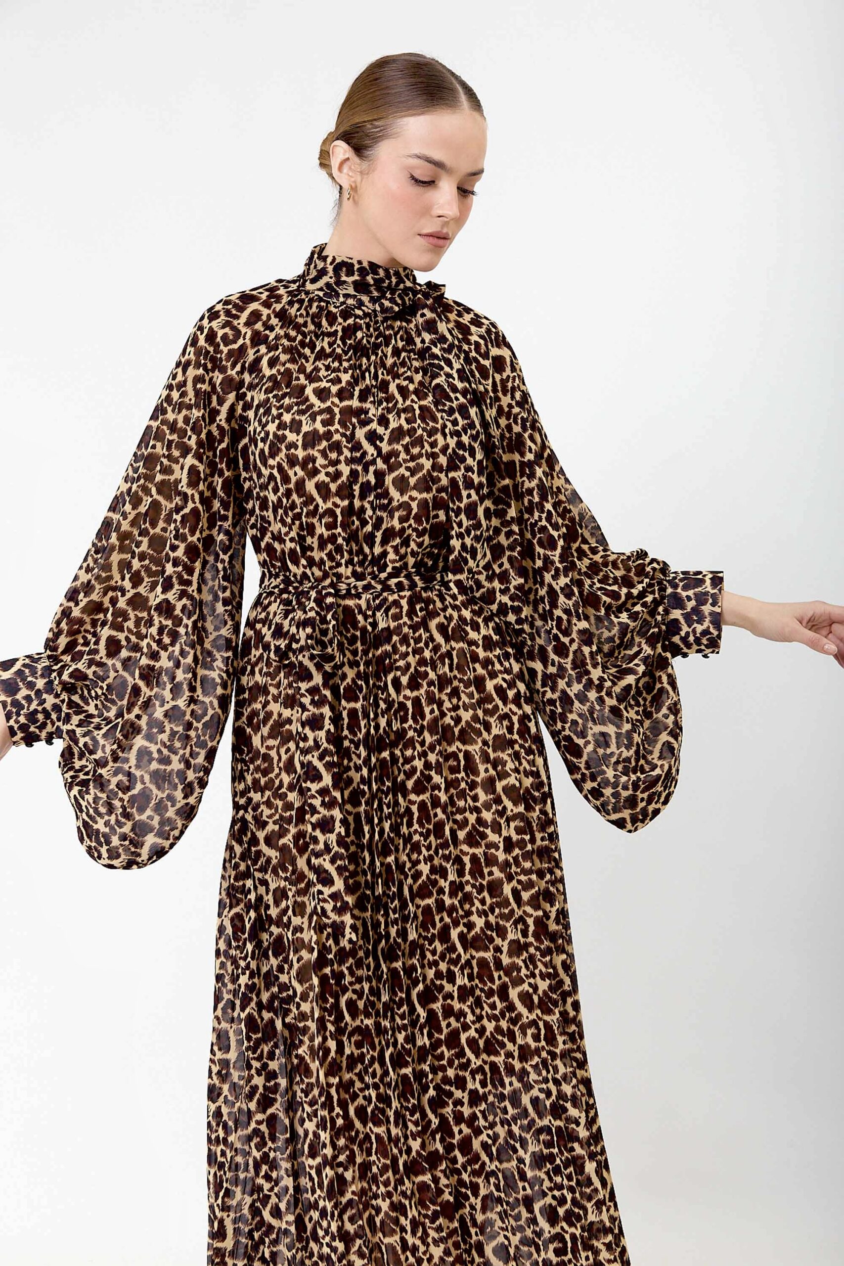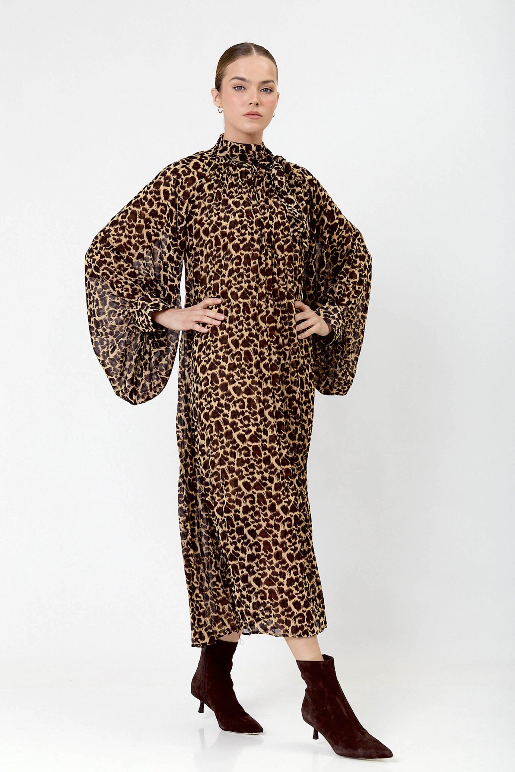 שרוולי השמלה הם וואו אחד גדול- בגזרה מעט עטלפית בעלות נפח. ניתן להרים מעט את השרוול לקבלת נפח שיקי ועדין.
